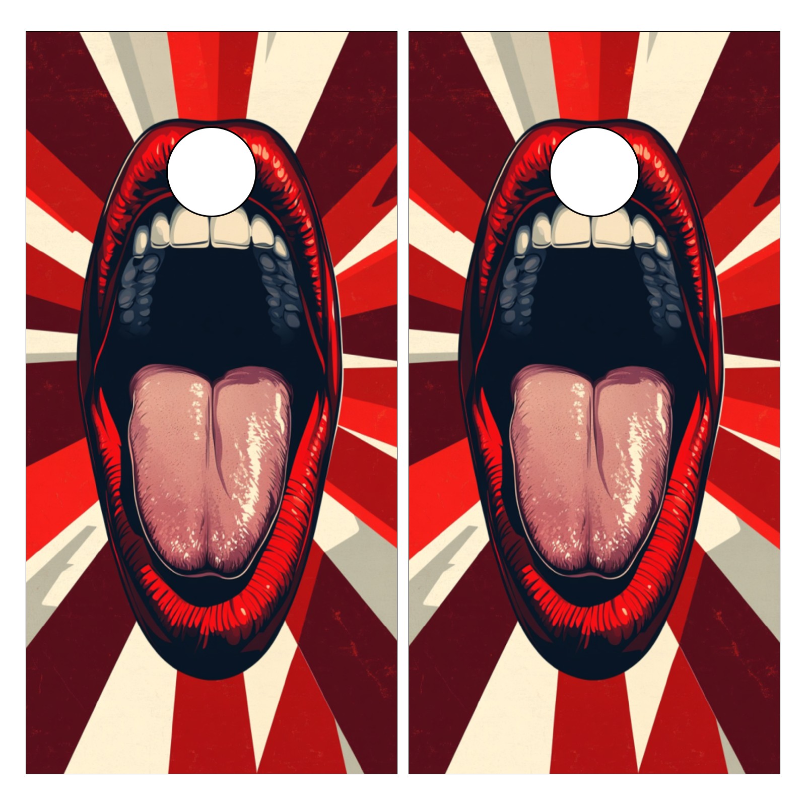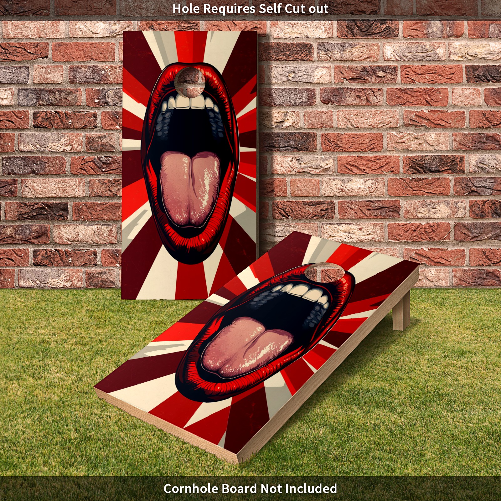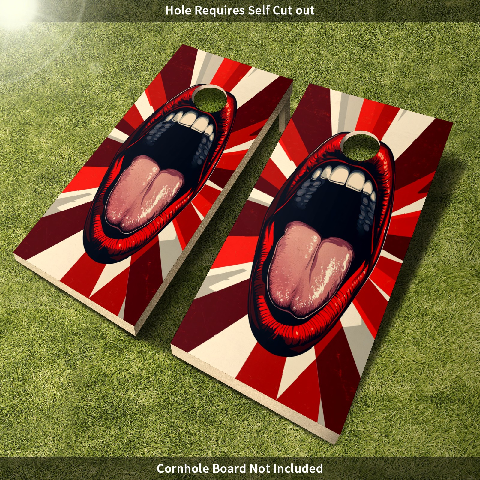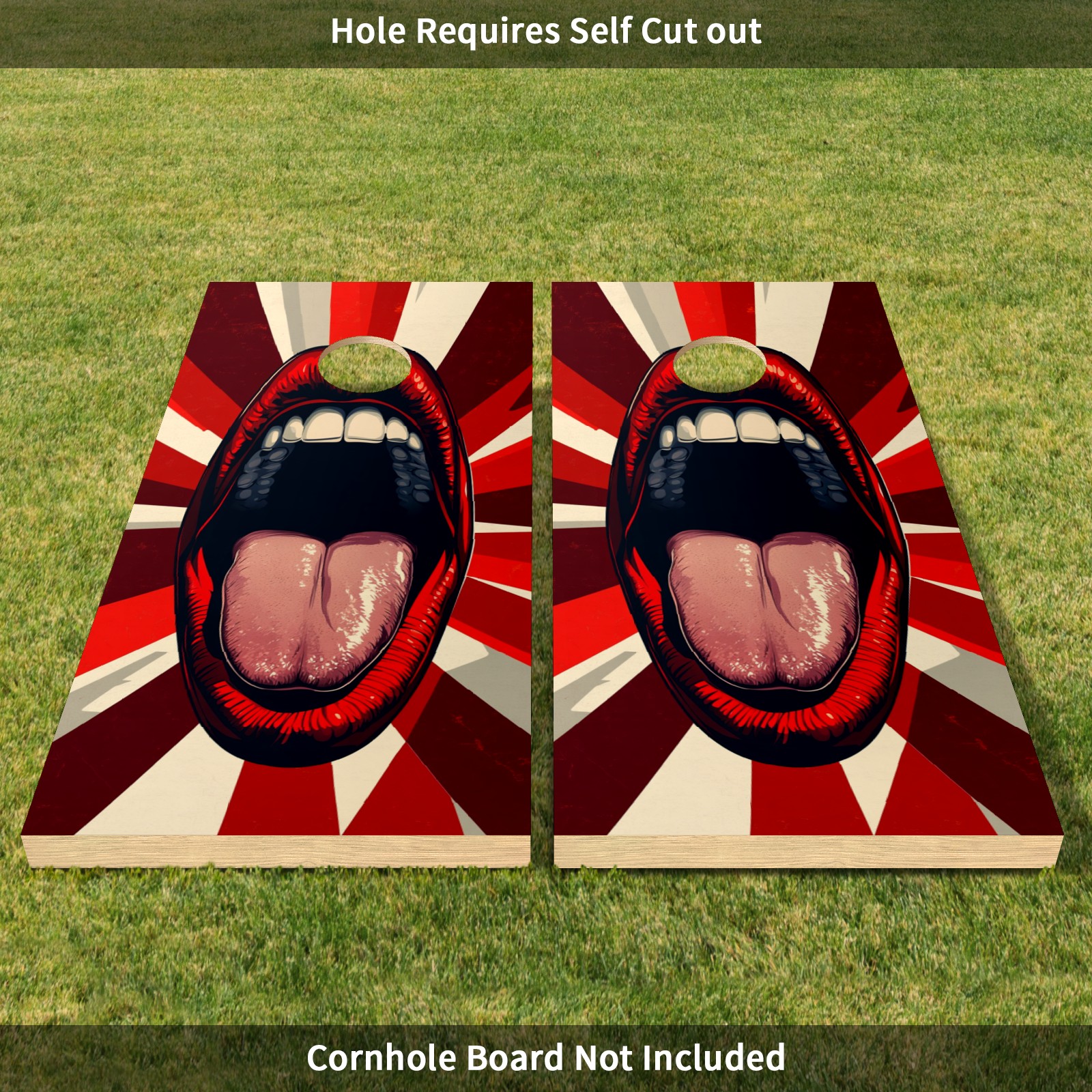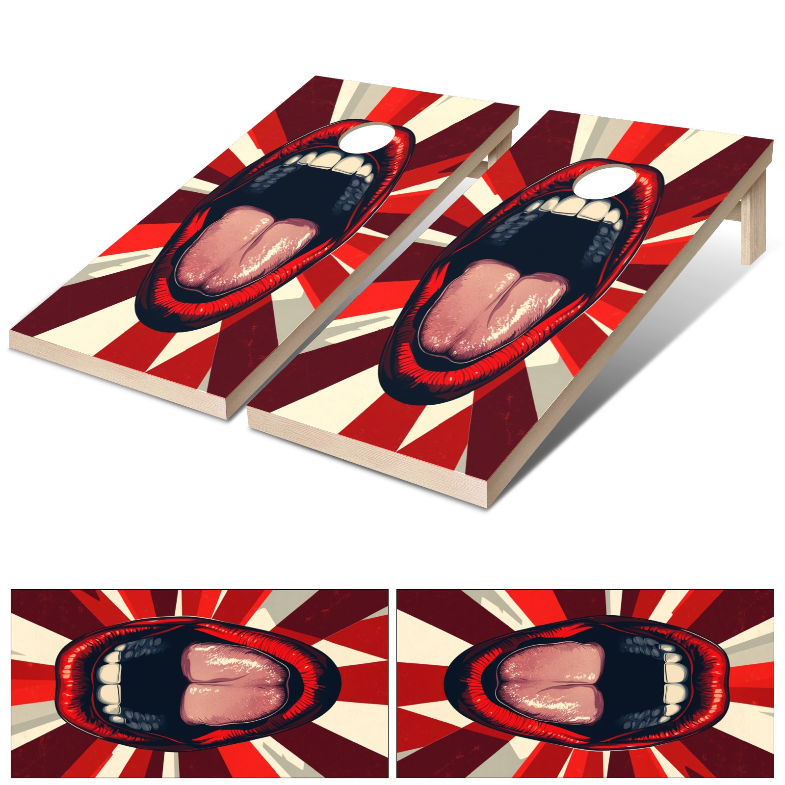 Portable 4x2 Cornhole Set with Two-piece Pack Boards - Cornhole Game Sticker Included - Yard Travel Outdoor Toss Board for Adults Outside Activities Abstract Tongue Pattern2