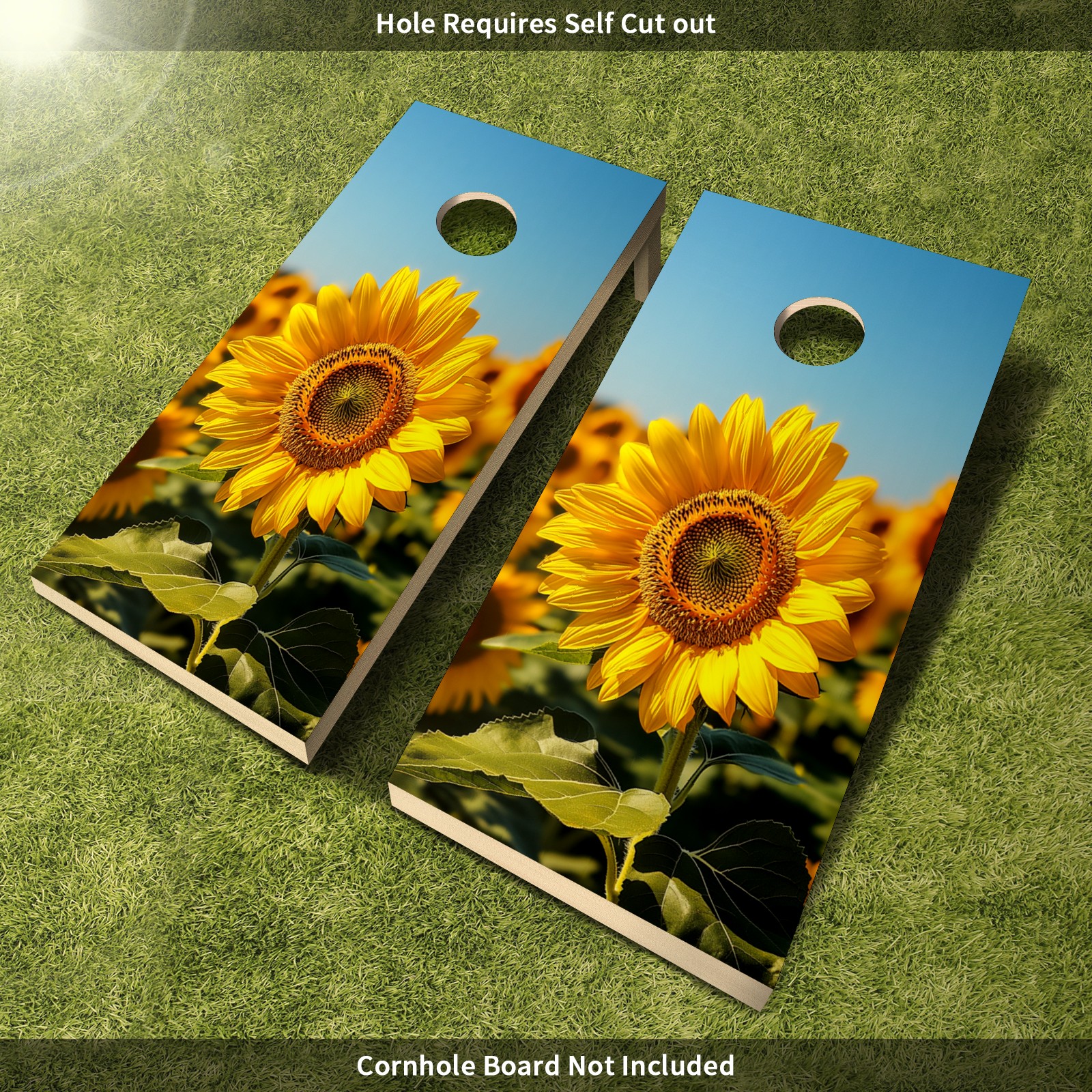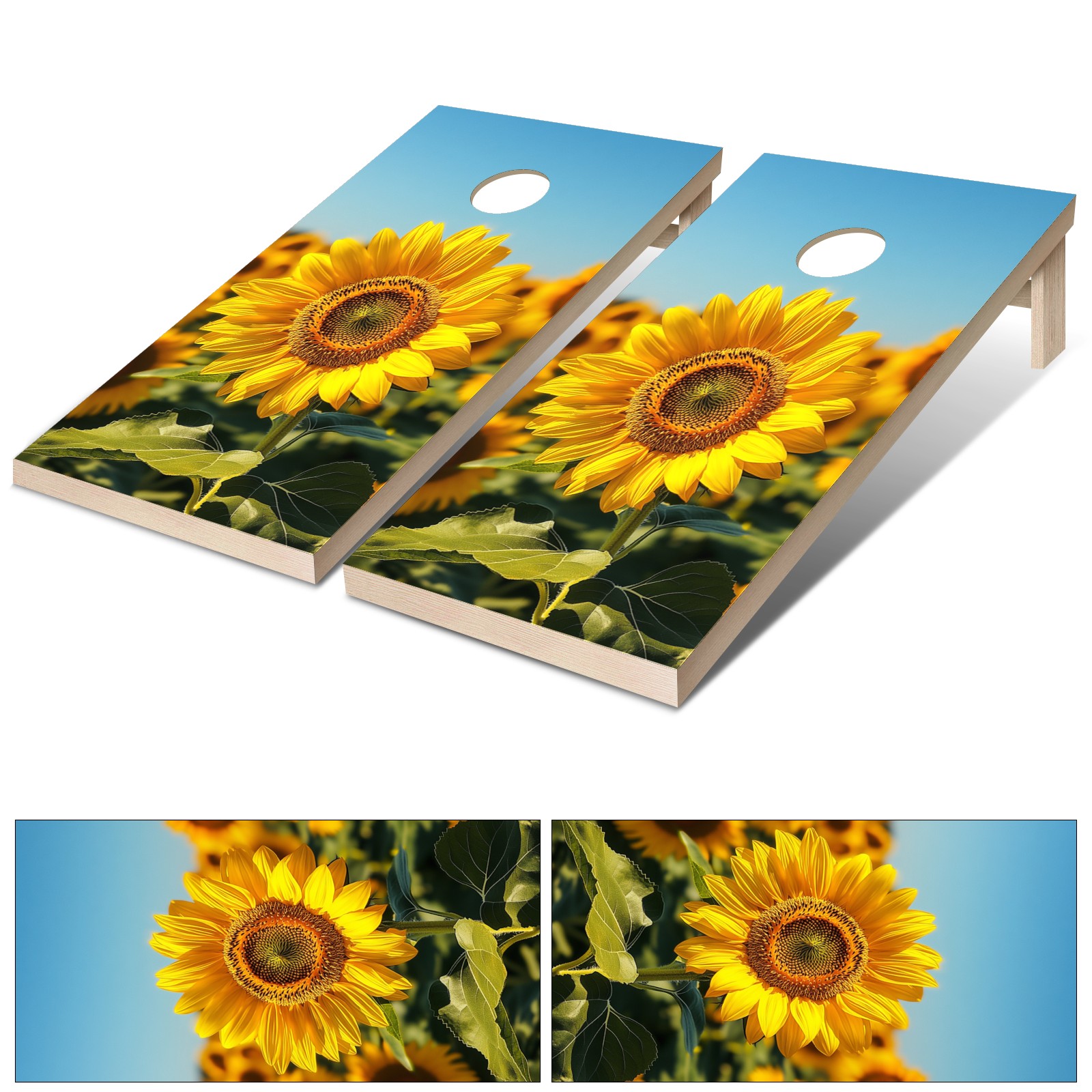 Portable 4x2 Cornhole Set with Two-piece Pack Boards - Cornhole Game Sticker Included - Yard Travel Outdoor Toss Board for Adults Outside Activities Sunflower Pattern2