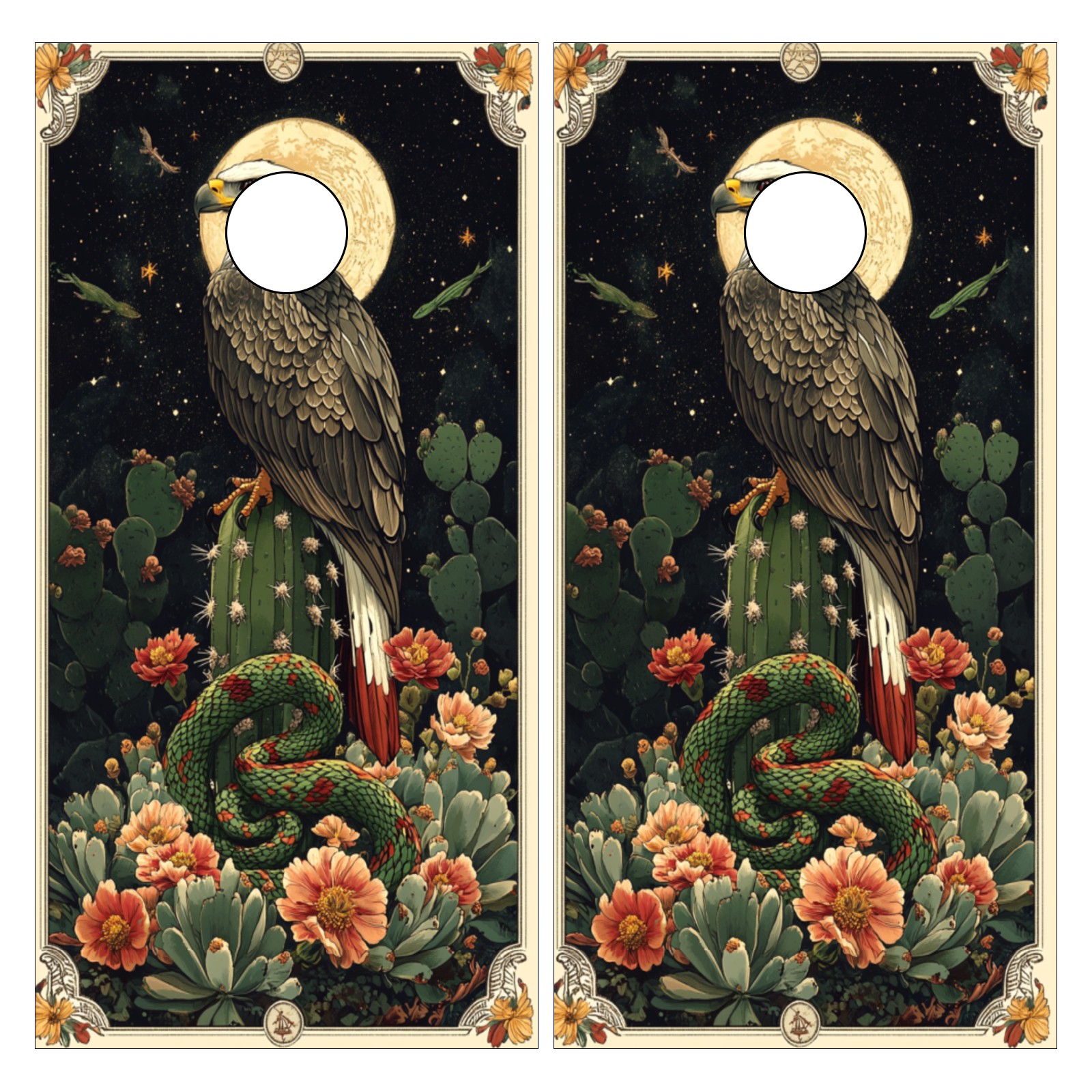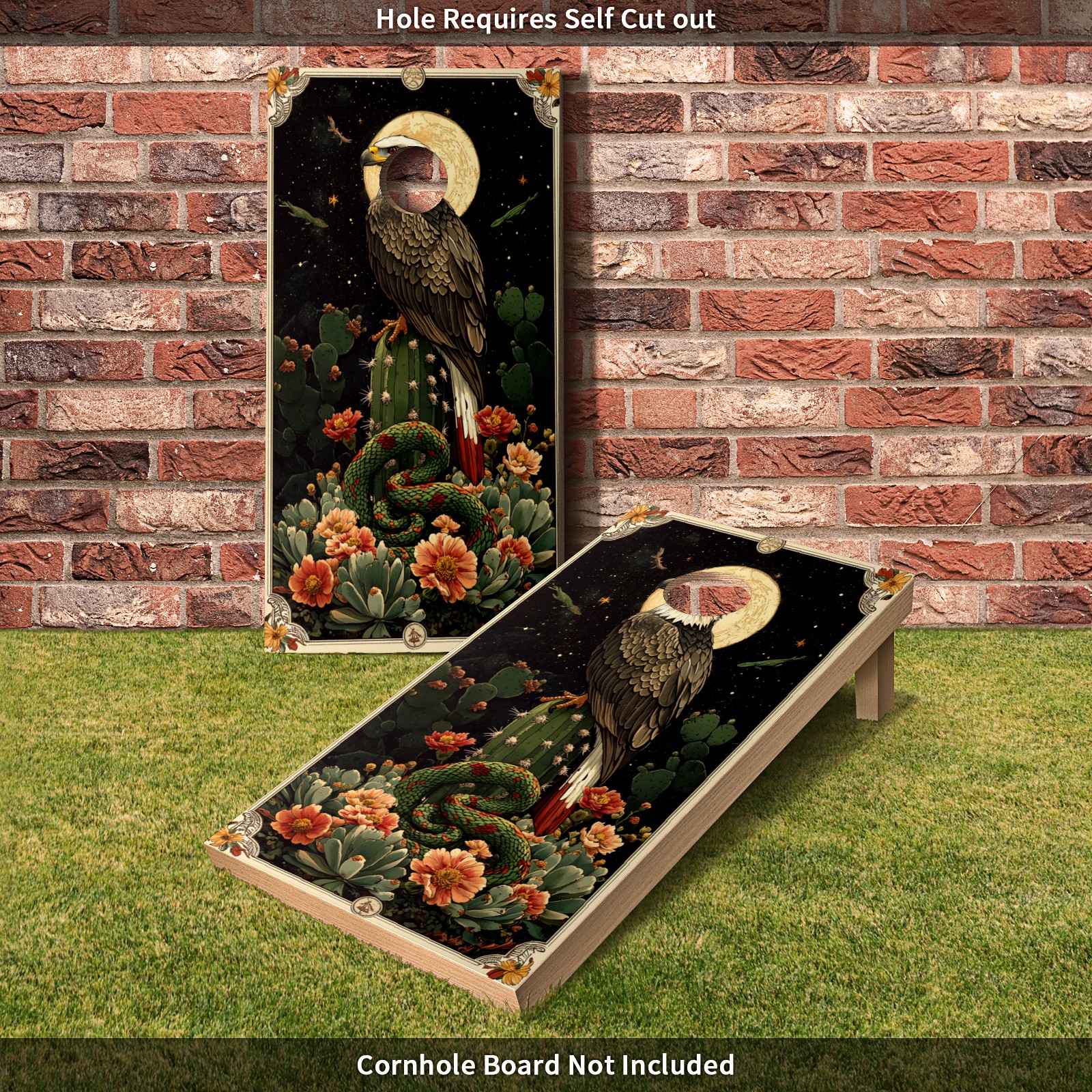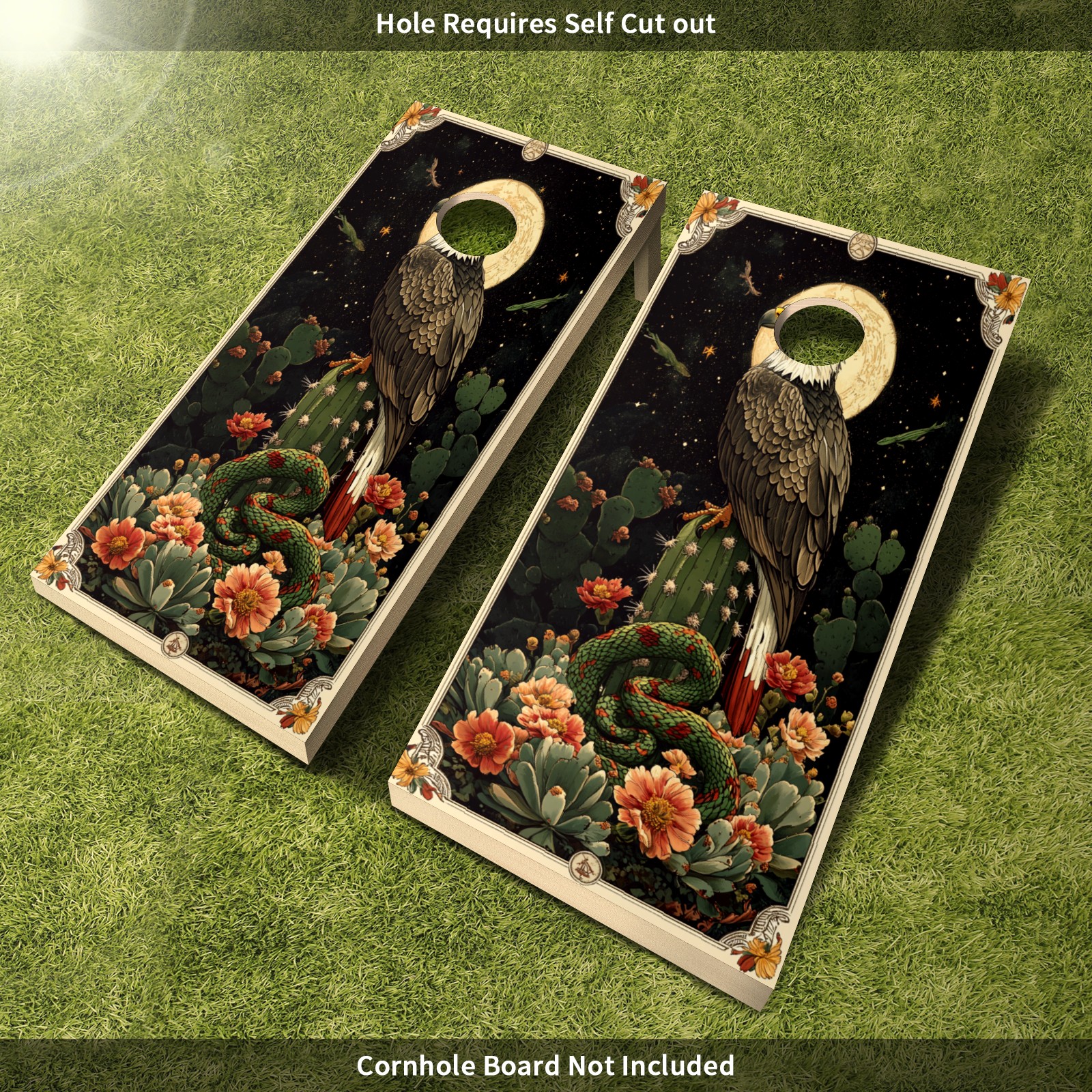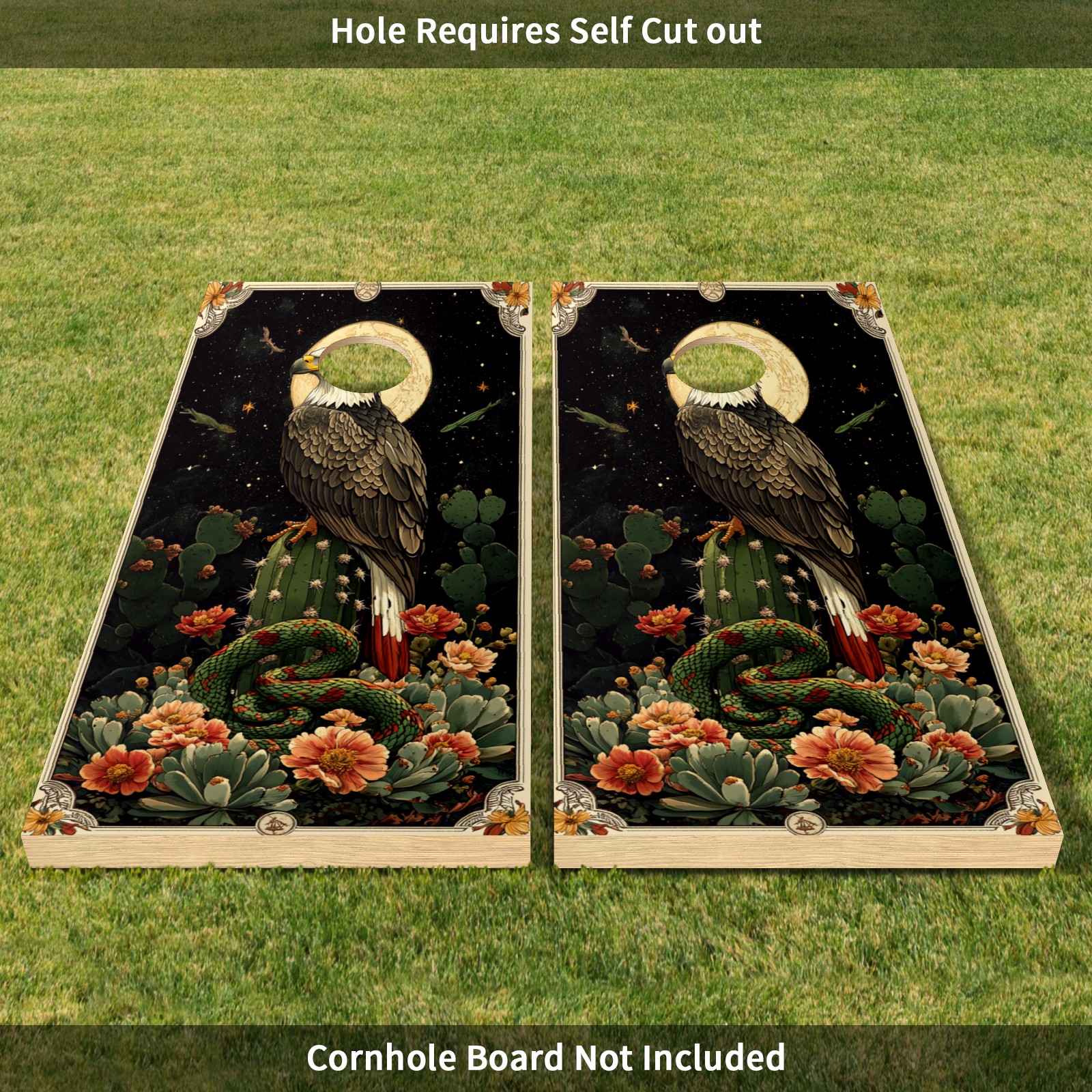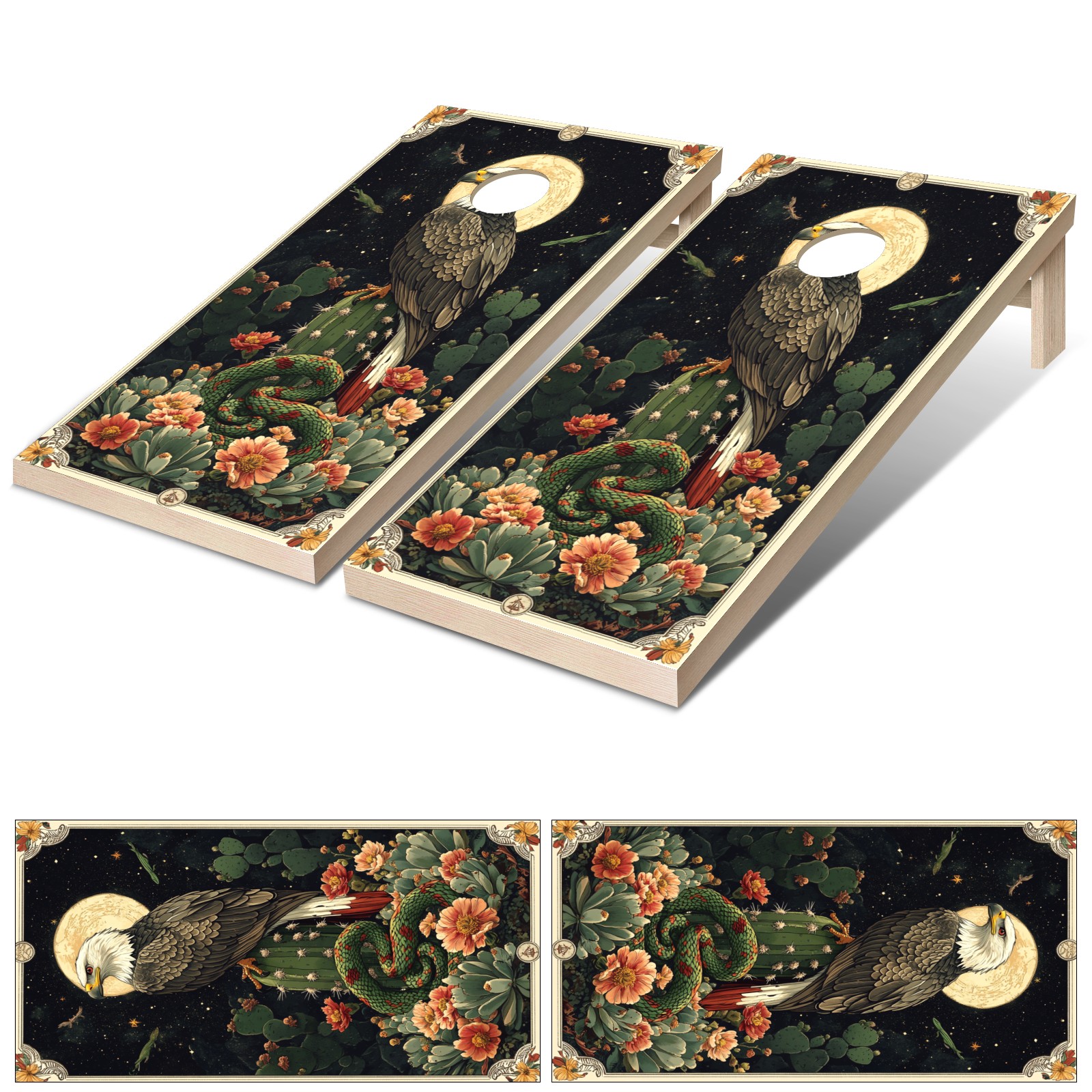 Portable 4x2 Cornhole Set with Two-piece Pack Boards - Cornhole Game Sticker Included - Yard Travel Outdoor Toss Board for Adults Outside Activities Green Eagle Snake Pattern
