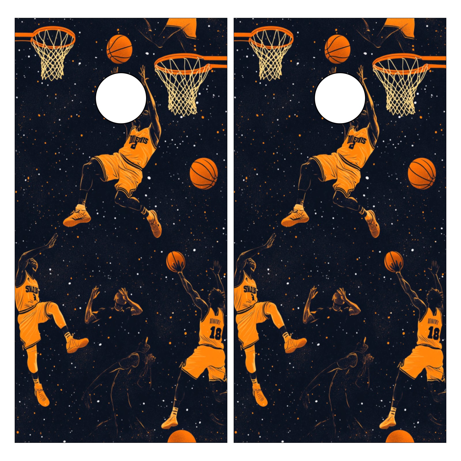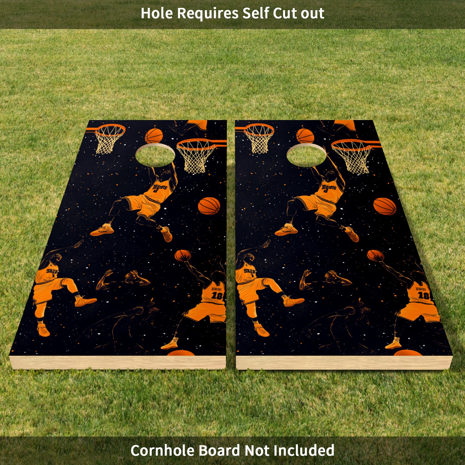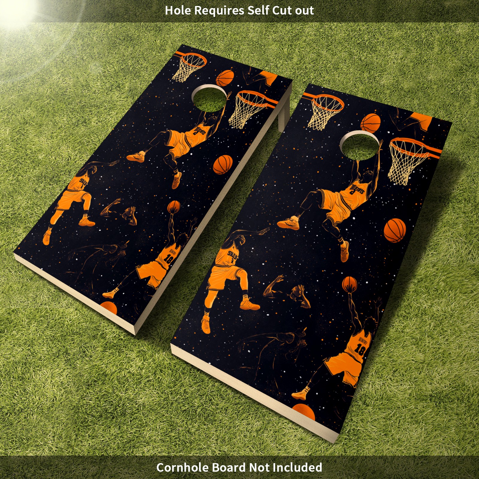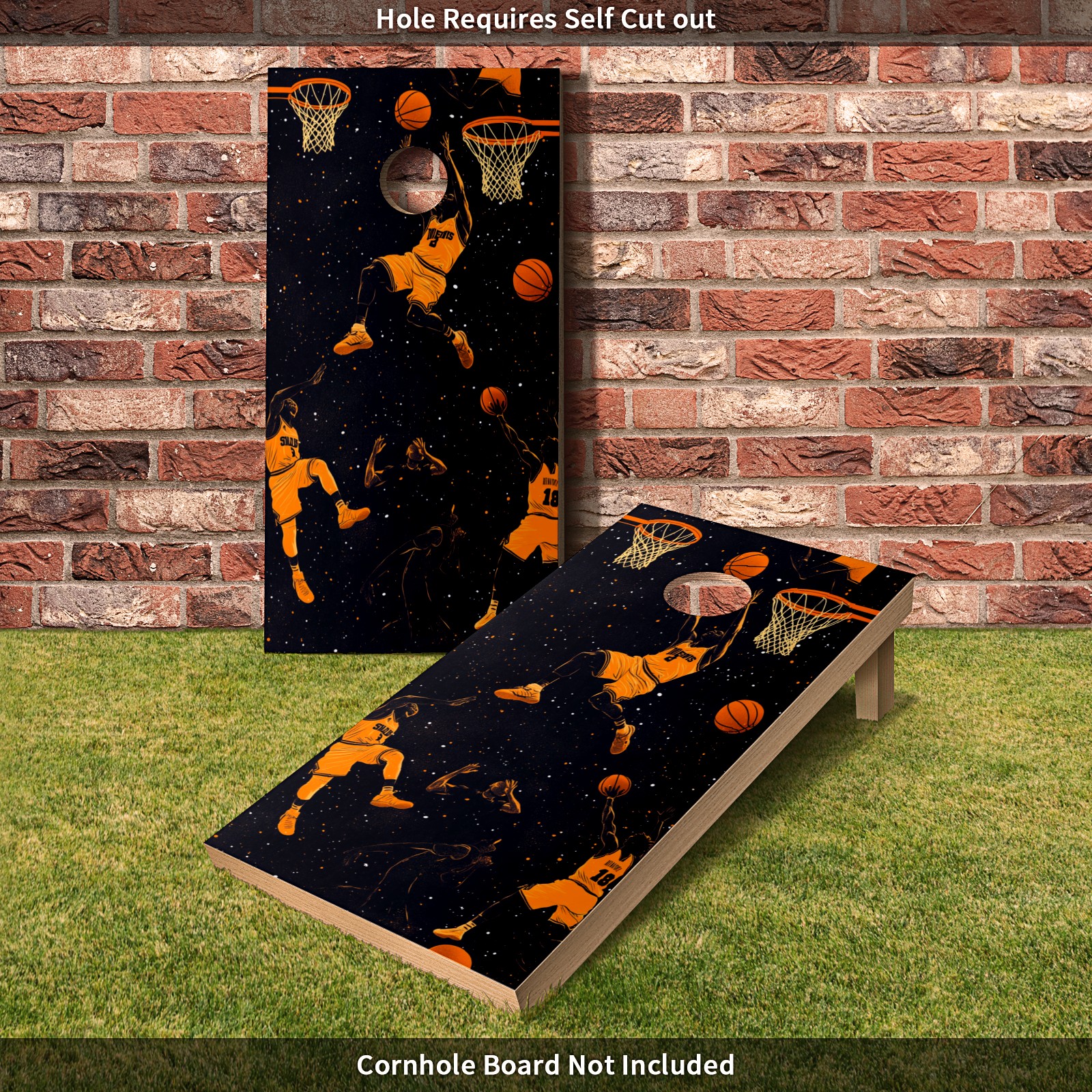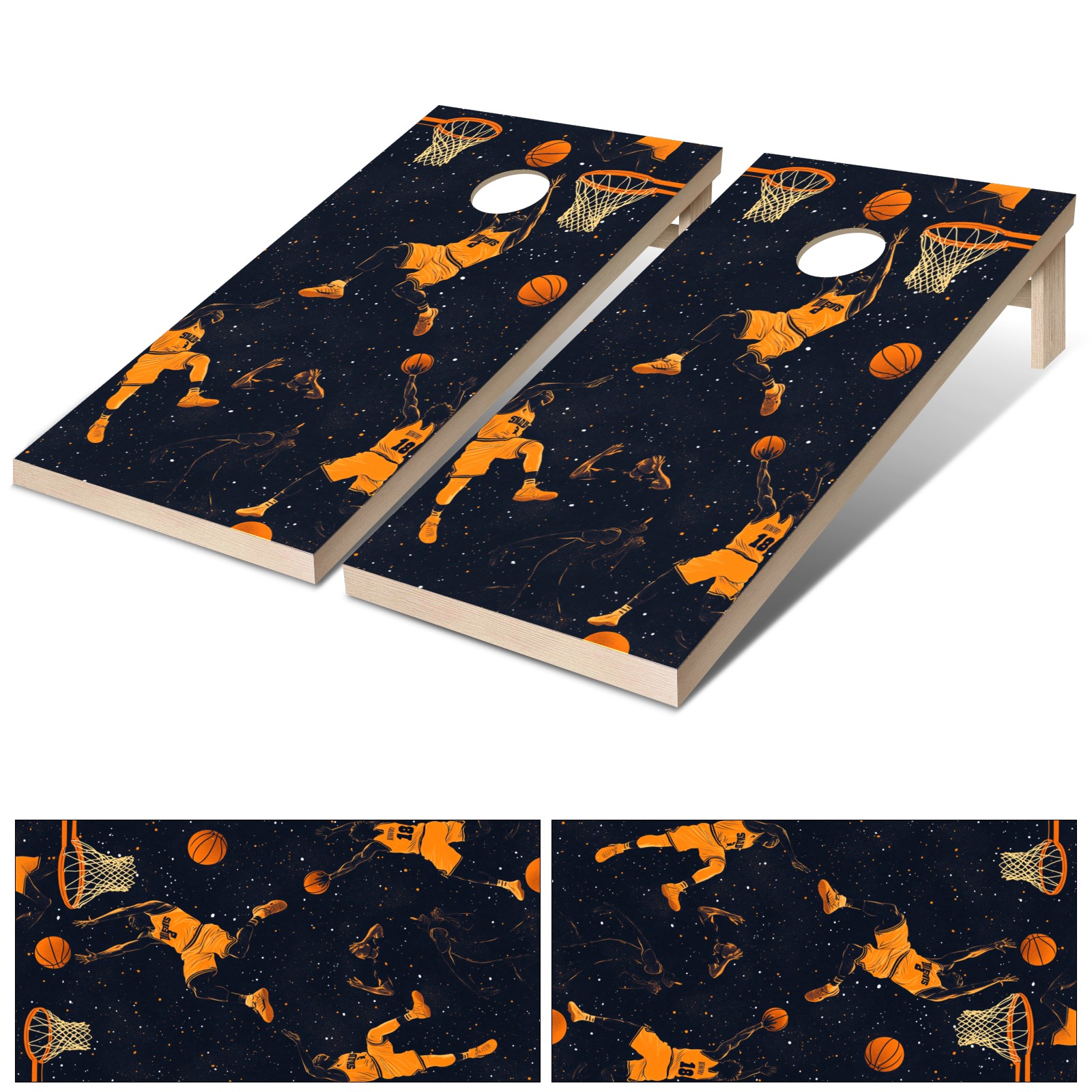 Portable 4x2 Cornhole Set with Two-piece Pack Boards - Cornhole Game Sticker Included - Yard Travel Outdoor Toss Board for Adults Outside Activities Basketball Element Pattern2