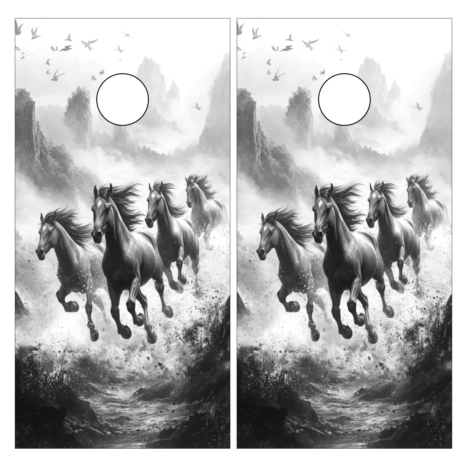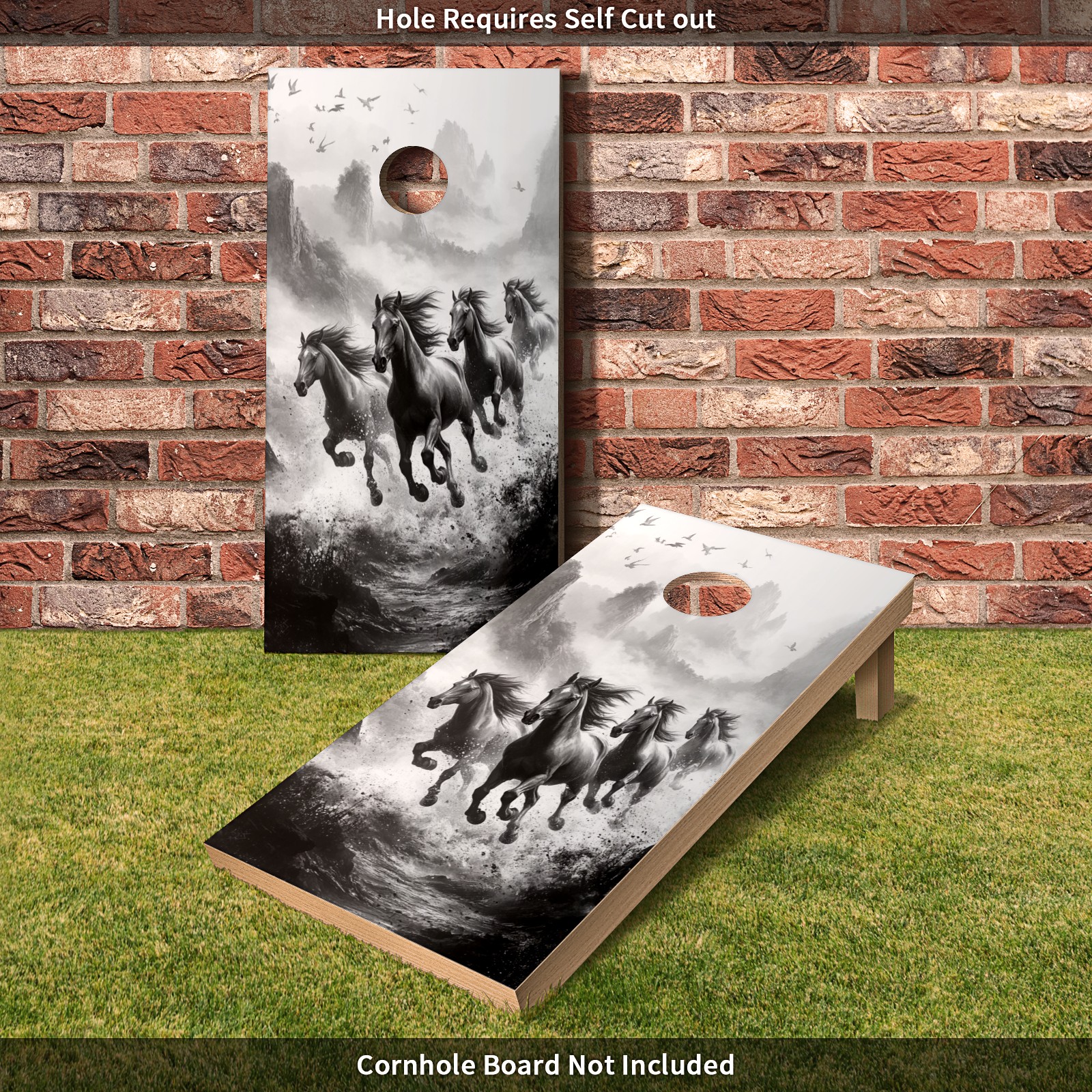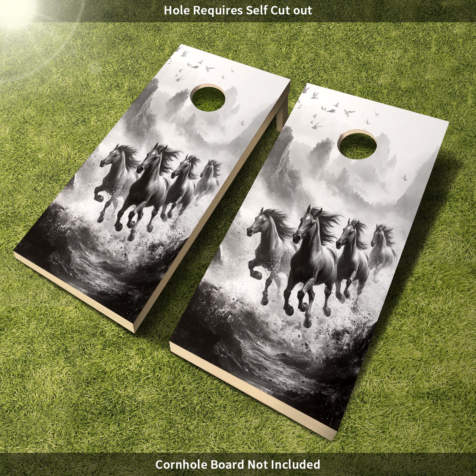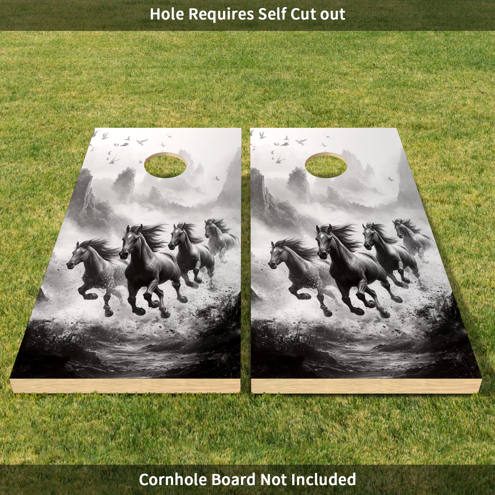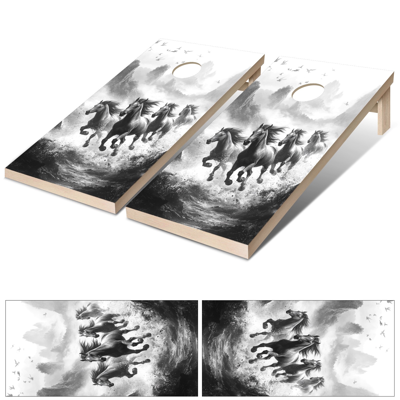 Portable 4x2 Cornhole Set with Two-piece Pack Boards - Cornhole Game Sticker Included - Yard Travel Outdoor Toss Board for Adults Outside Activities Ink Horse Pattern