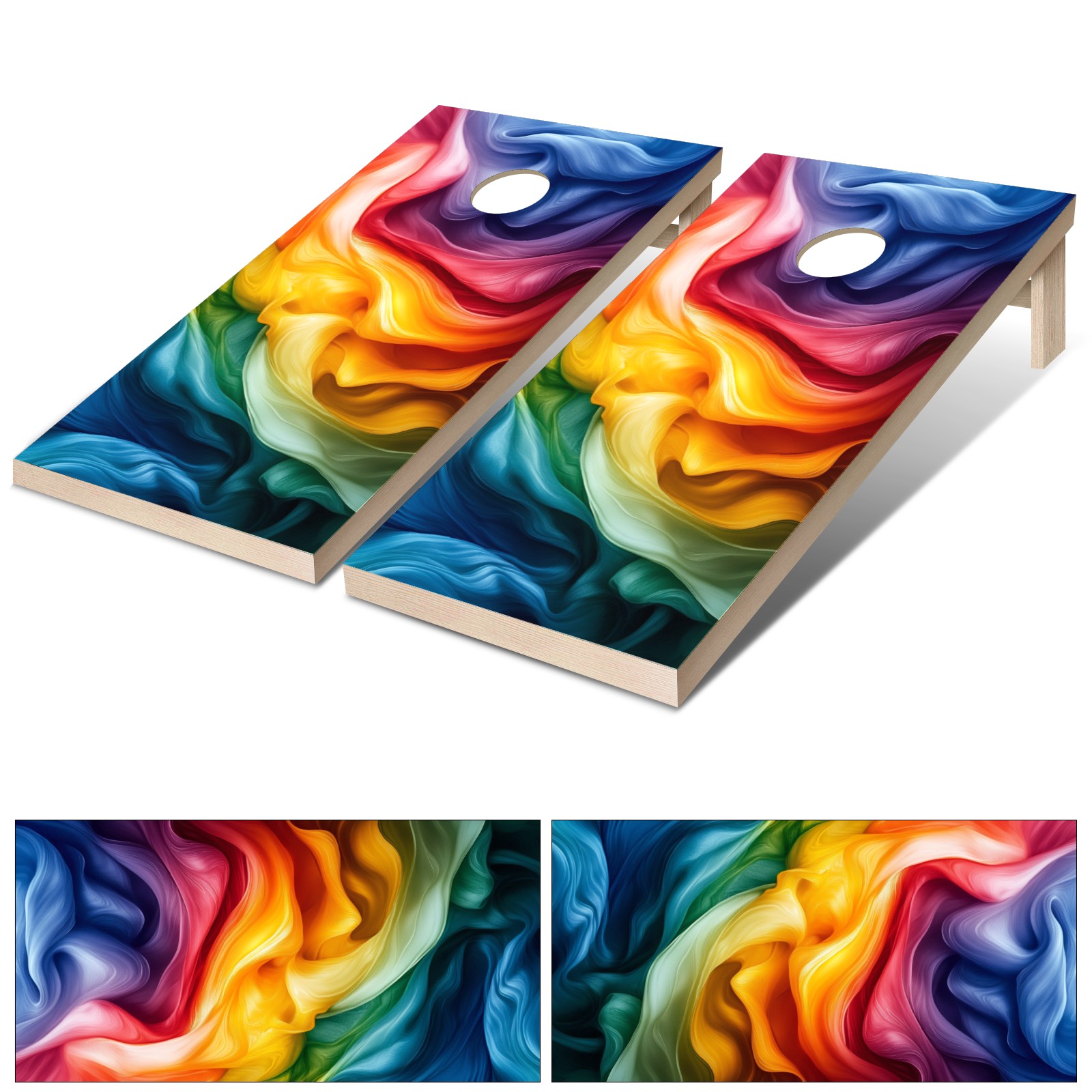 Portable 4x2 Cornhole Set with Two-piece Pack Boards - Cornhole Game Sticker Included - Yard Travel Outdoor Toss Board for Adults Outside Activities Swirling Colors Pattern1