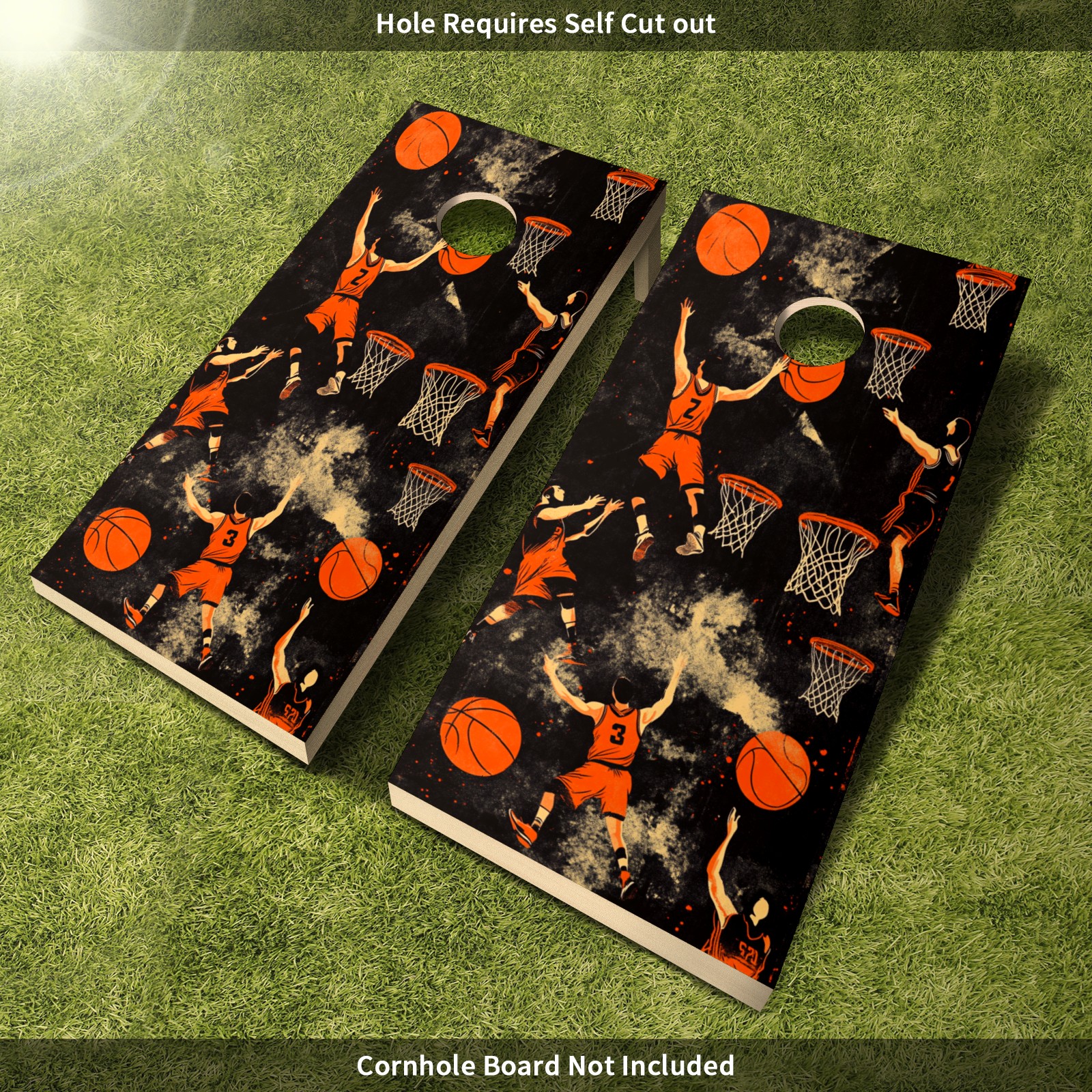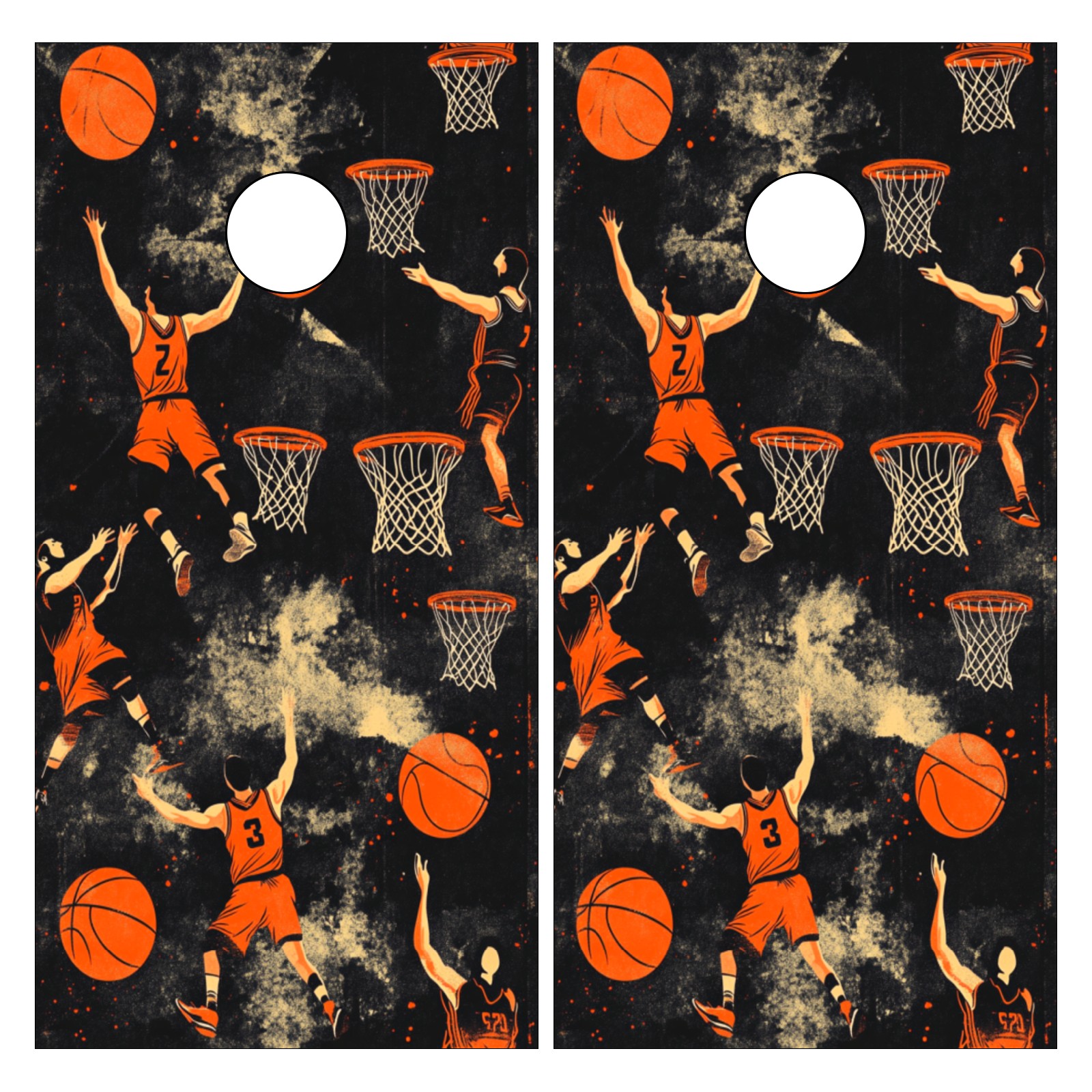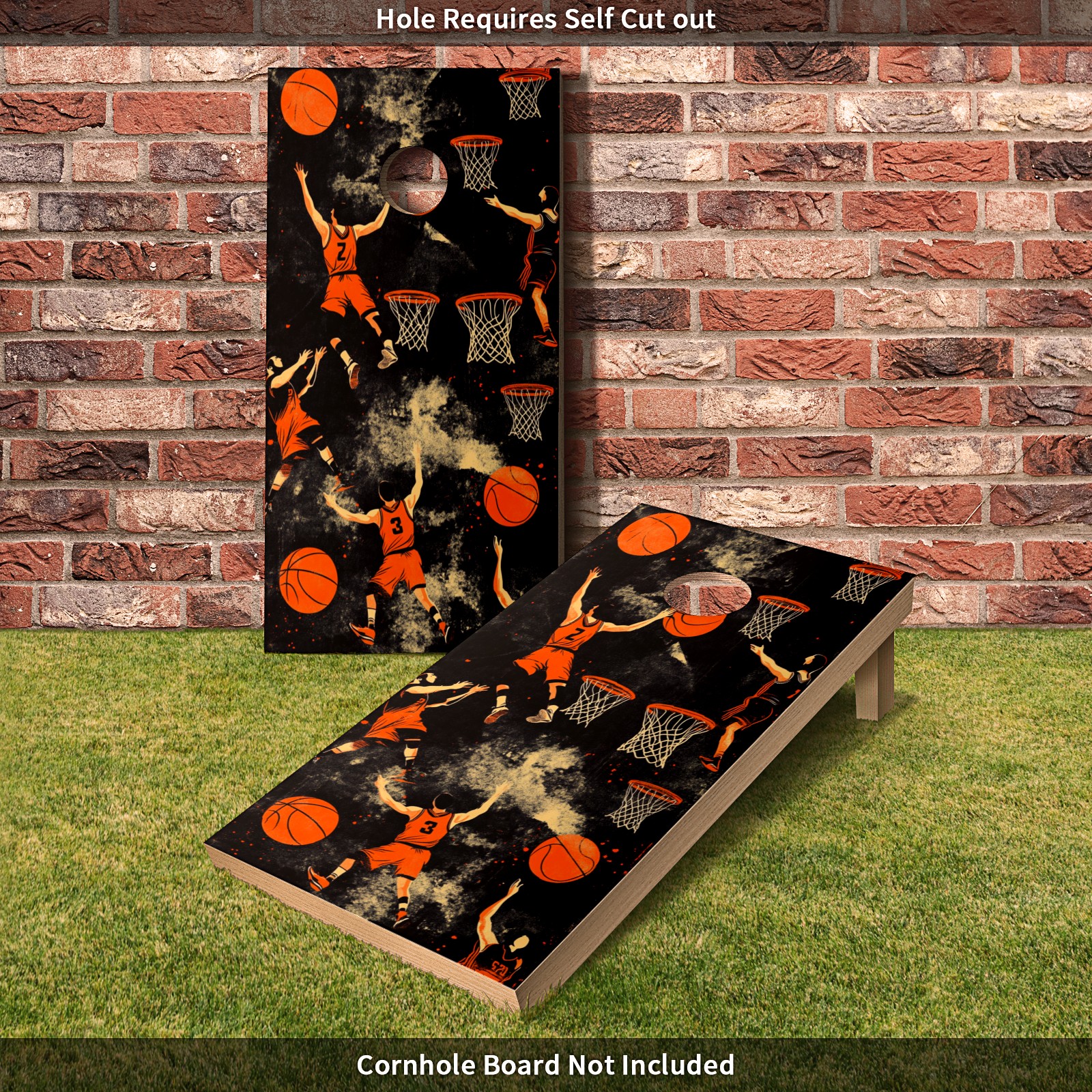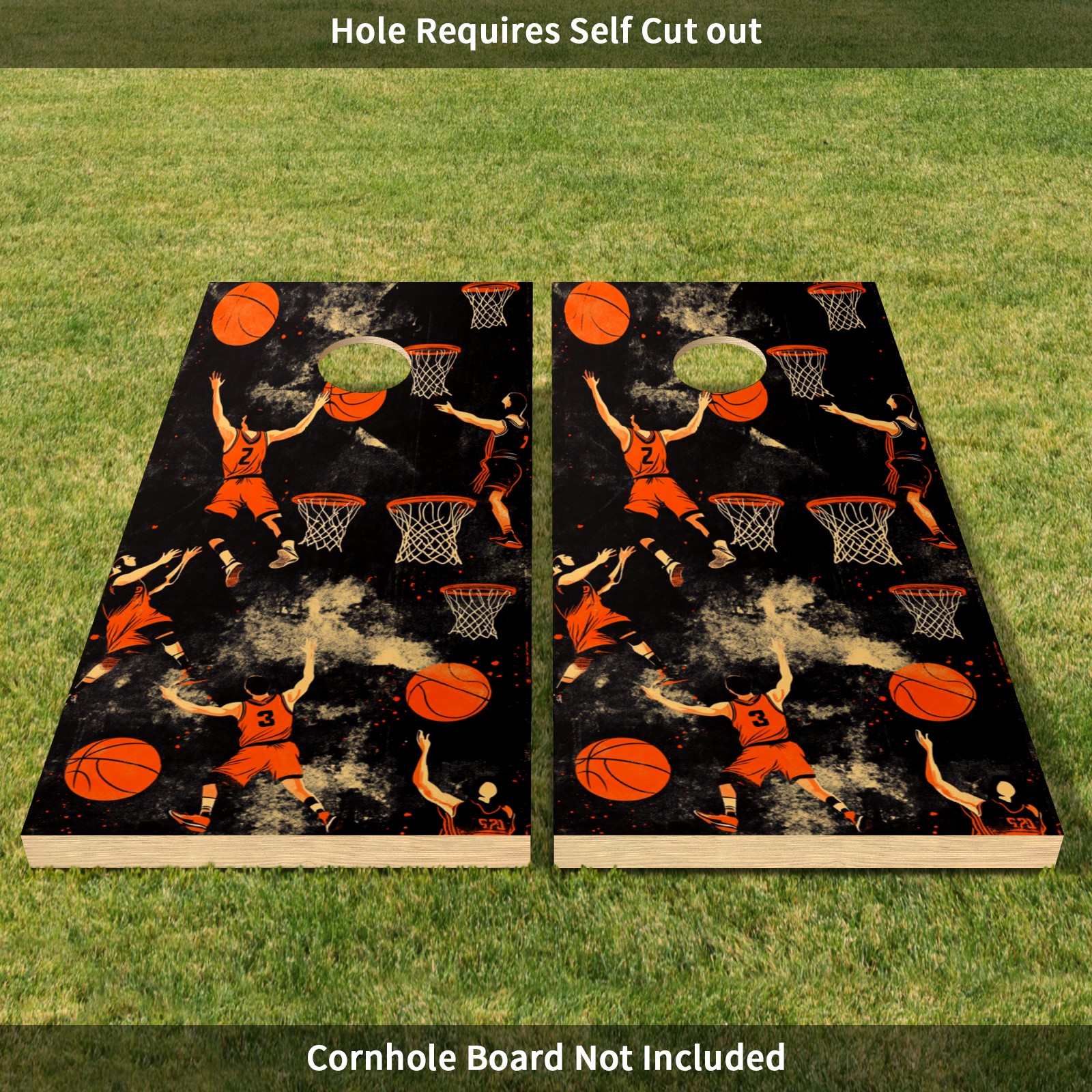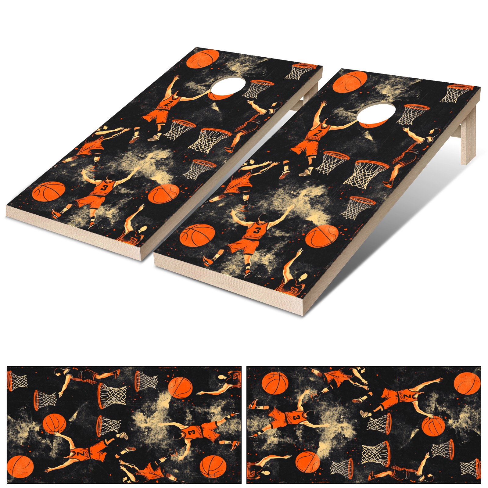 Portable 4x2 Cornhole Set with Two-piece Pack Boards - Cornhole Game Sticker Included - Yard Travel Outdoor Toss Board for Adults Outside Activities Basketball Element Pattern3