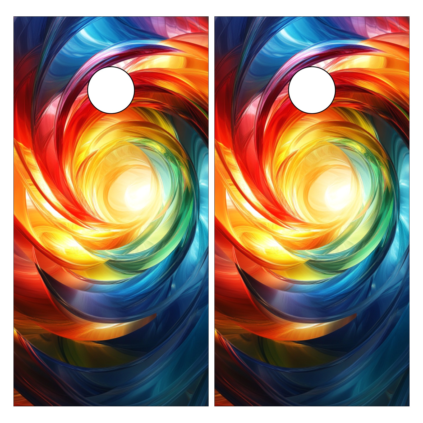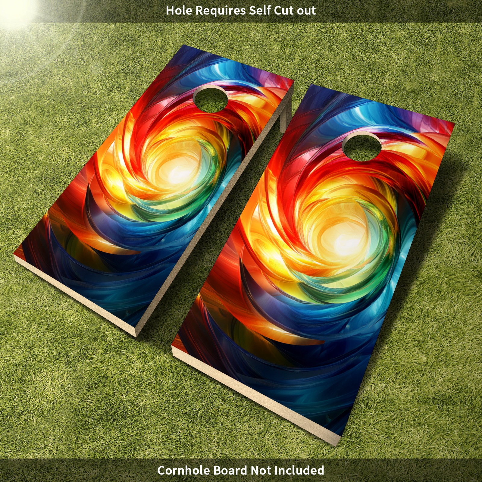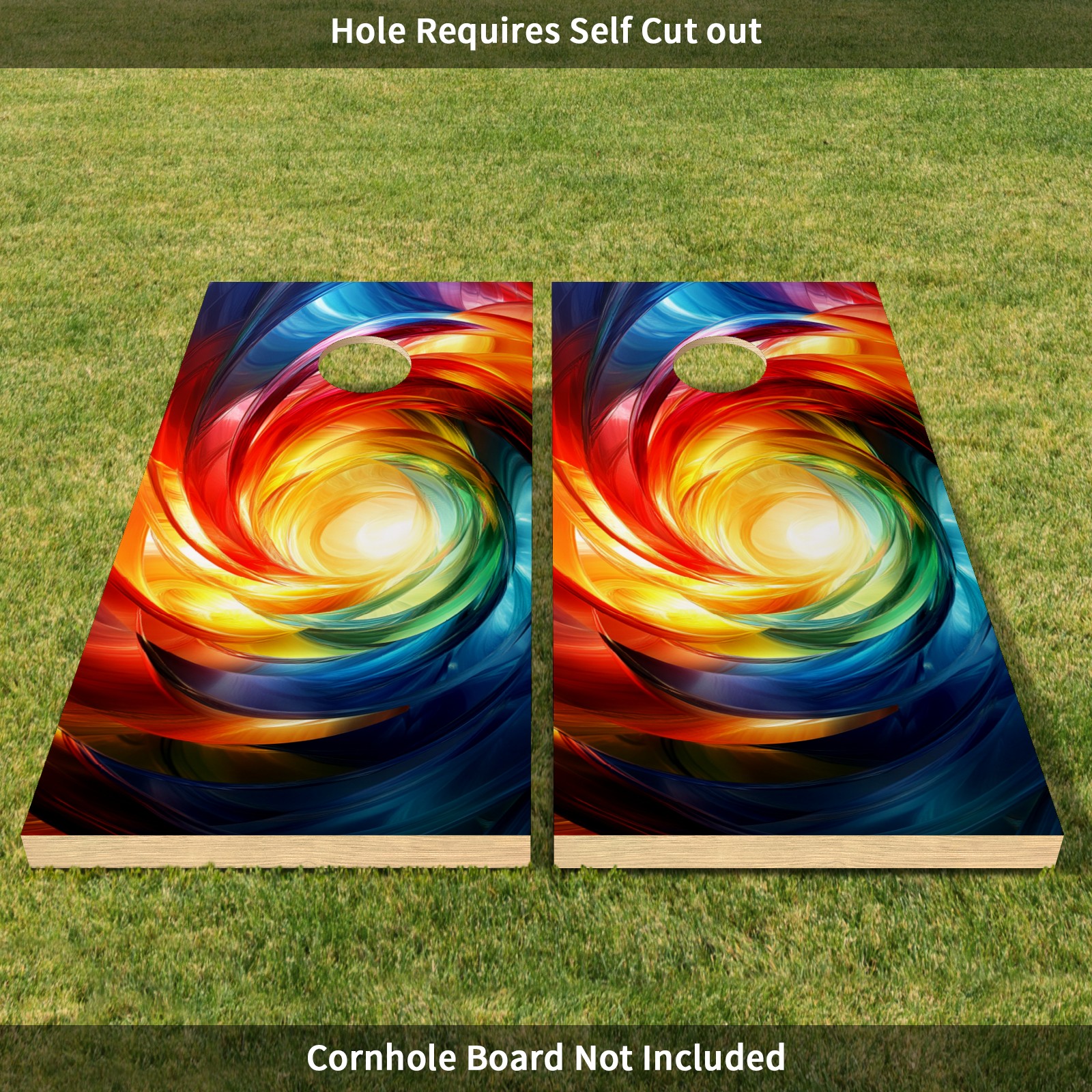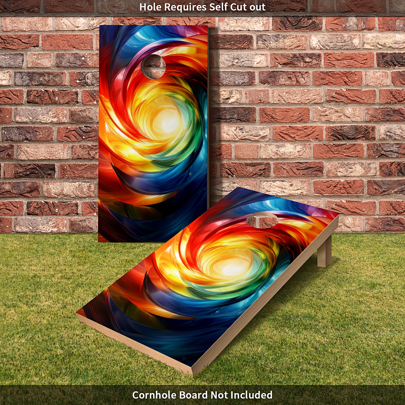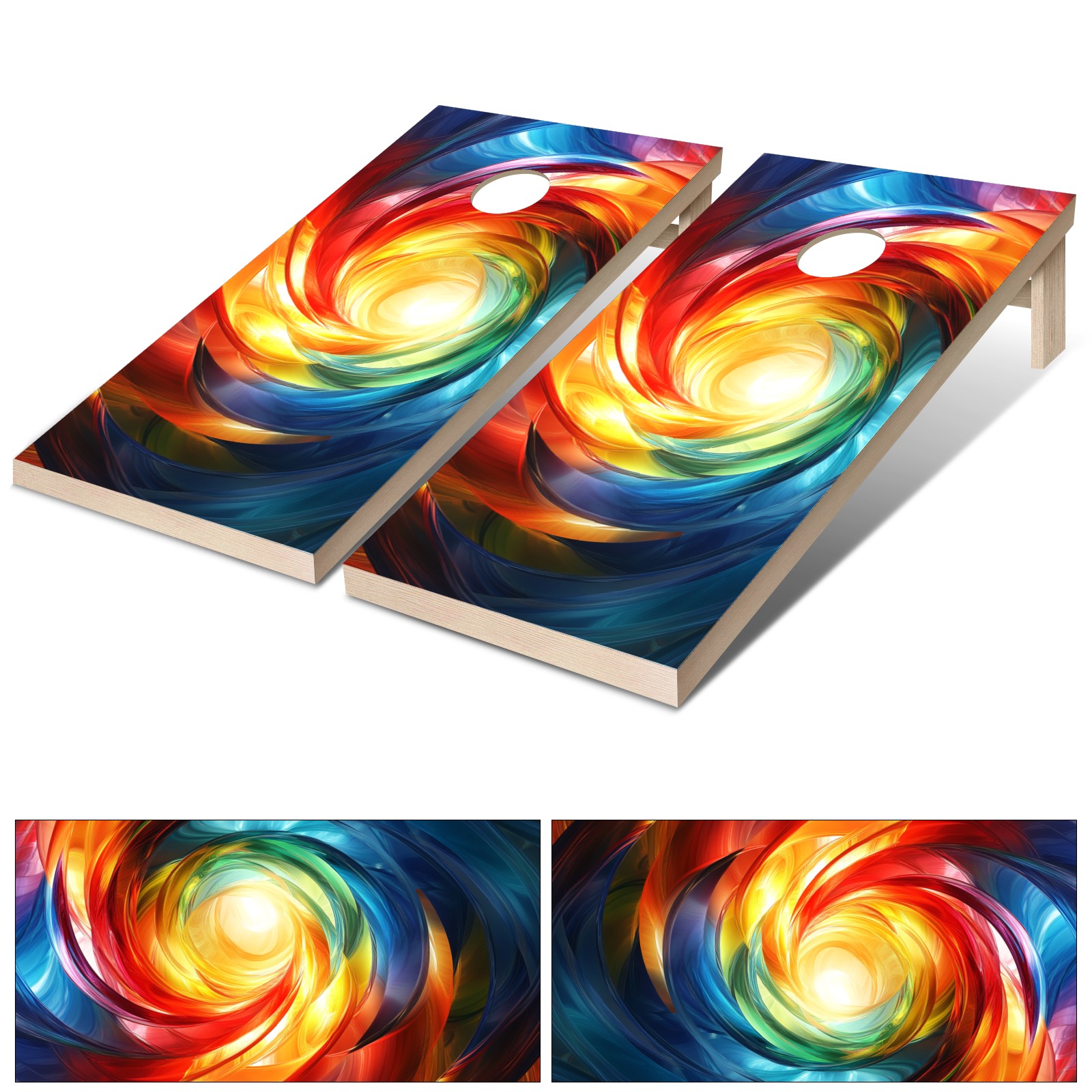 Portable 4x2 Cornhole Set with Two-piece Pack Boards - Cornhole Game Sticker Included - Yard Travel Outdoor Toss Board for Adults Outside Activities Swirling Colors Pattern