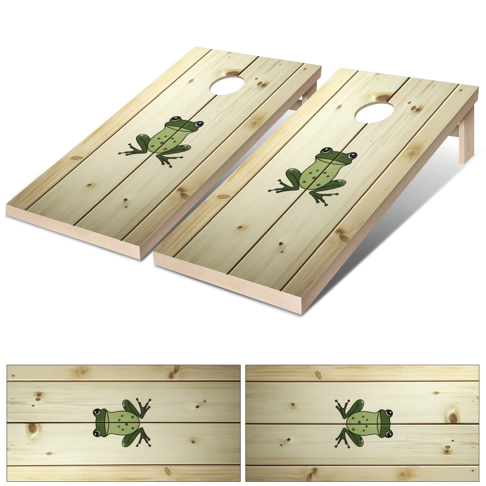 Portable 4x2 Cornhole Set with Two-piece Pack Boards - Cornhole Game Sticker Included - Yard Travel Outdoor Toss Board for Adults Outside Activities Striped Frog Pattern3