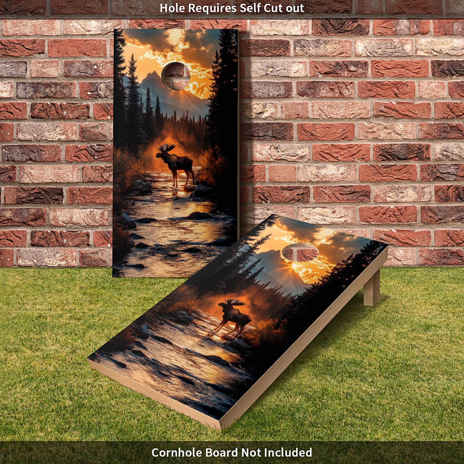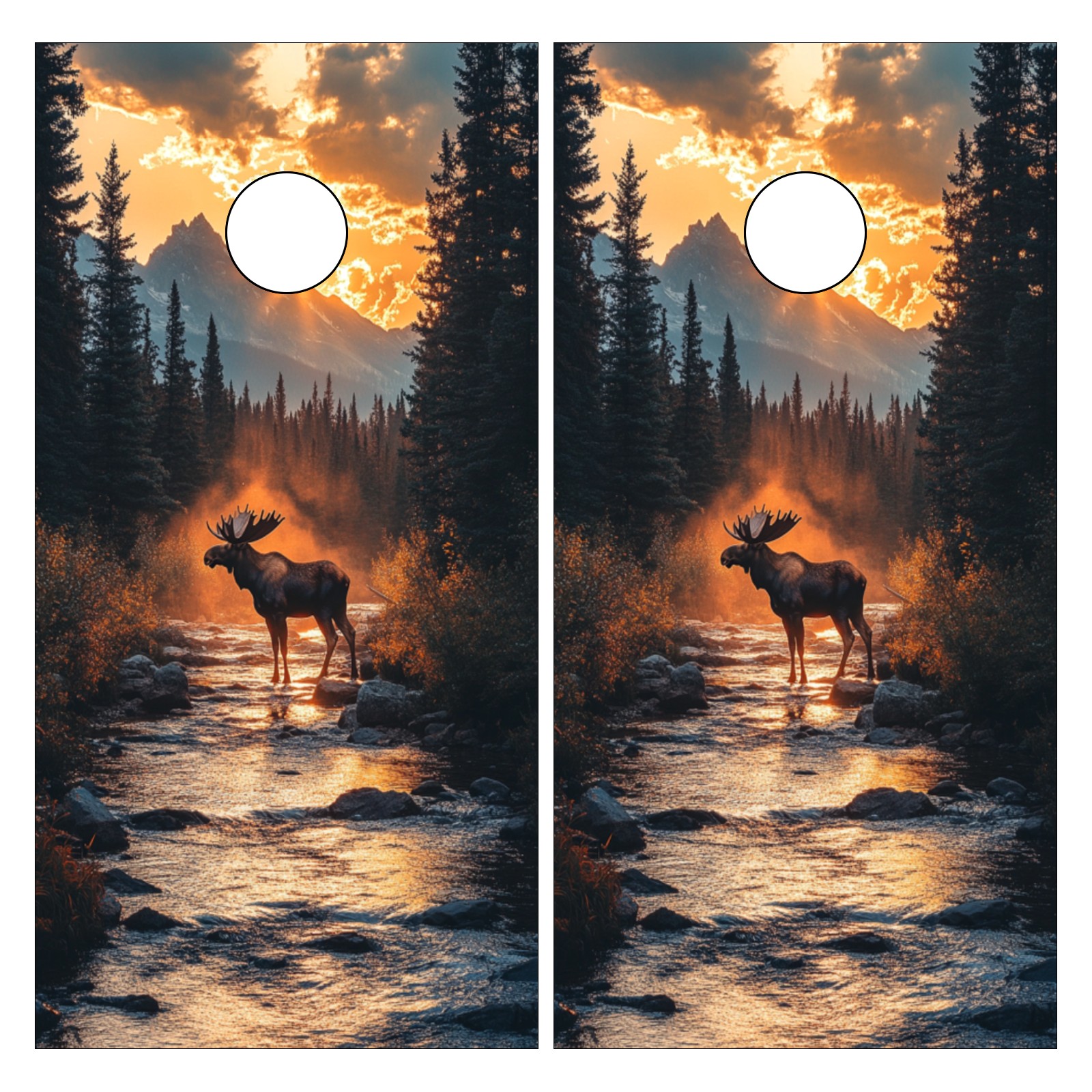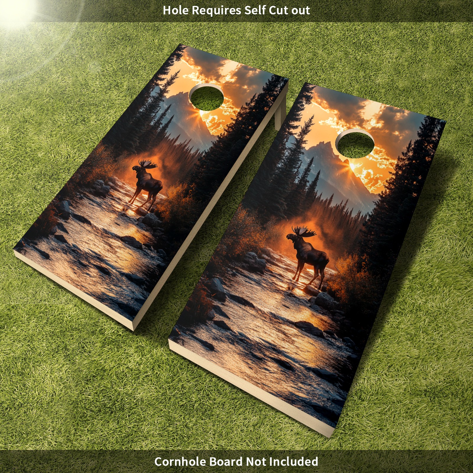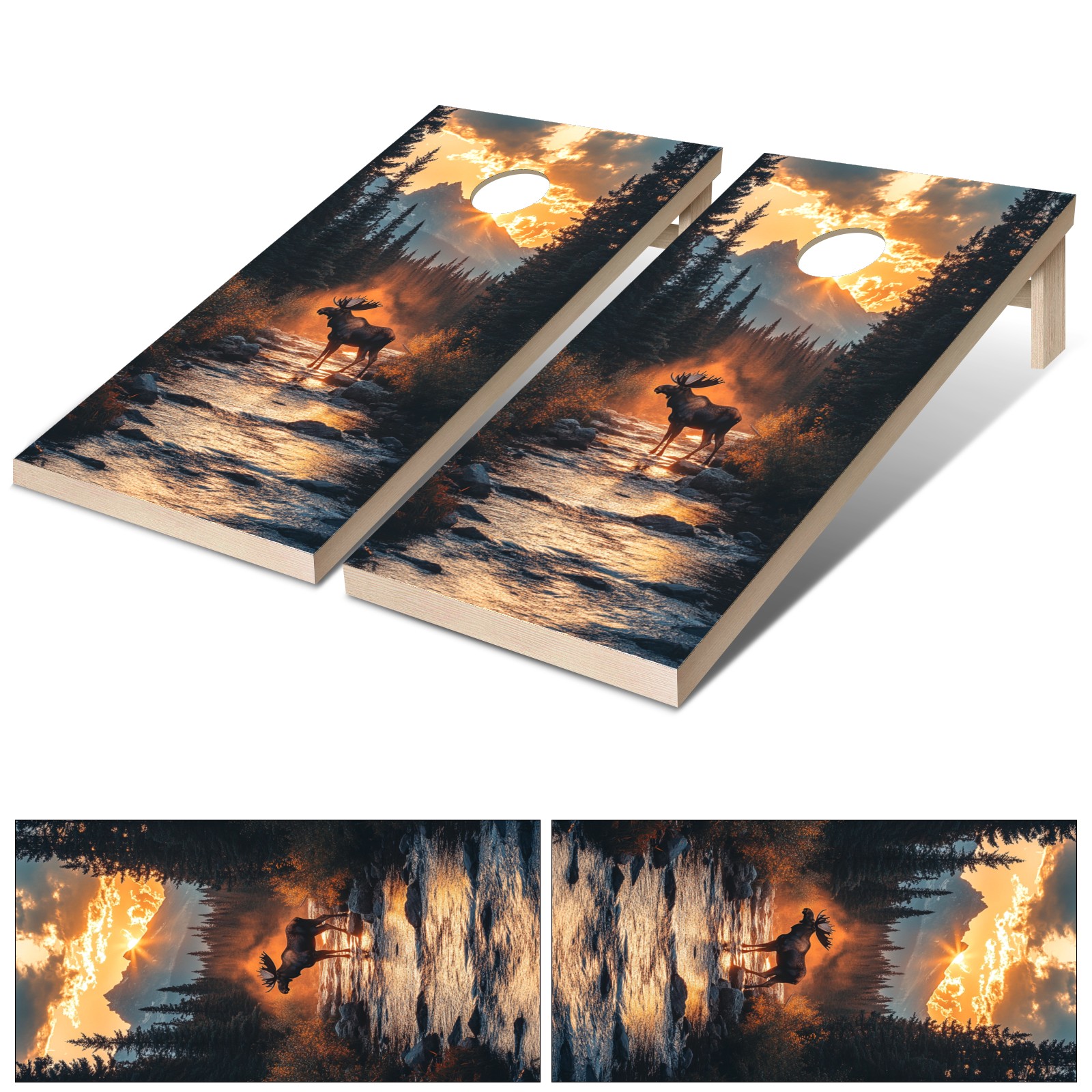 Portable 4x2 Cornhole Set with Two-piece Pack Boards - Cornhole Game Sticker Included - Yard Travel Outdoor Toss Board for Adults Outside Activities Moose Reflection Pattern2