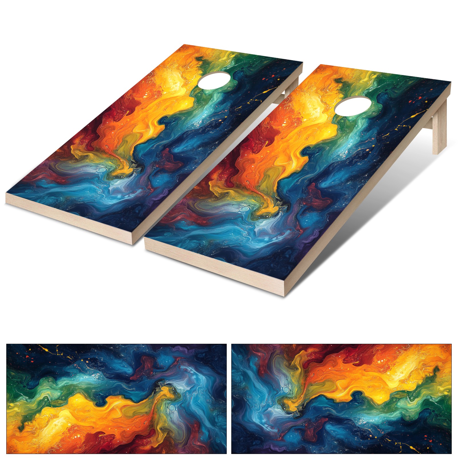Portable 4x2 Cornhole Set with Two-piece Pack Boards - Cornhole Game Sticker Included - Yard Travel Outdoor Toss Board for Adults Outside Activities Cloud Wave Pattern2