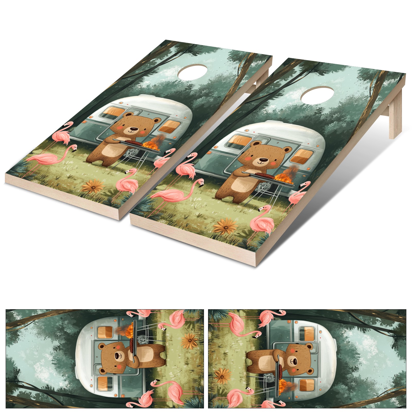 Portable 4x2 Cornhole Set with Two-piece Pack Boards - Cornhole Game Sticker Included - Yard Travel Outdoor Toss Board for Adults Outside Activities Party Pattern2