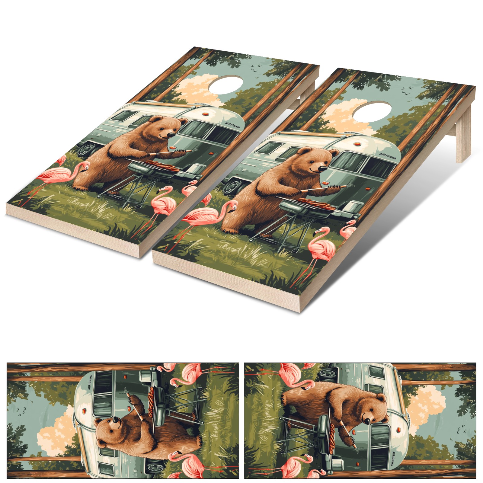 Portable 4x2 Cornhole Set with Two-piece Pack Boards - Cornhole Game Sticker Included - Yard Travel Outdoor Toss Board for Adults Outside Activities Party Pattern1