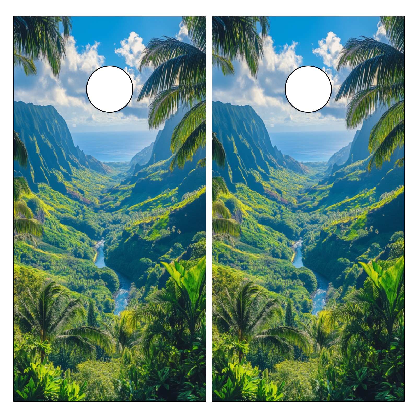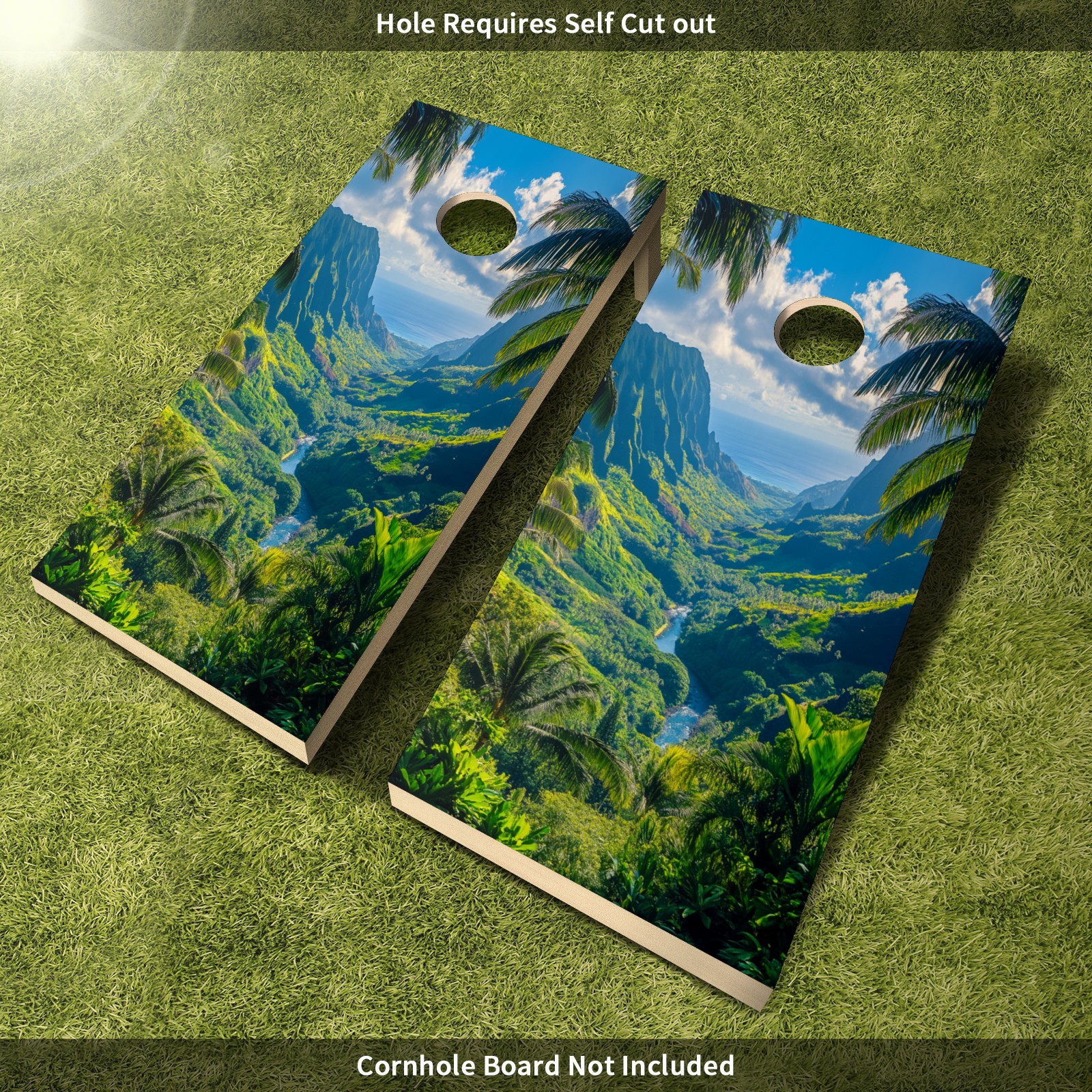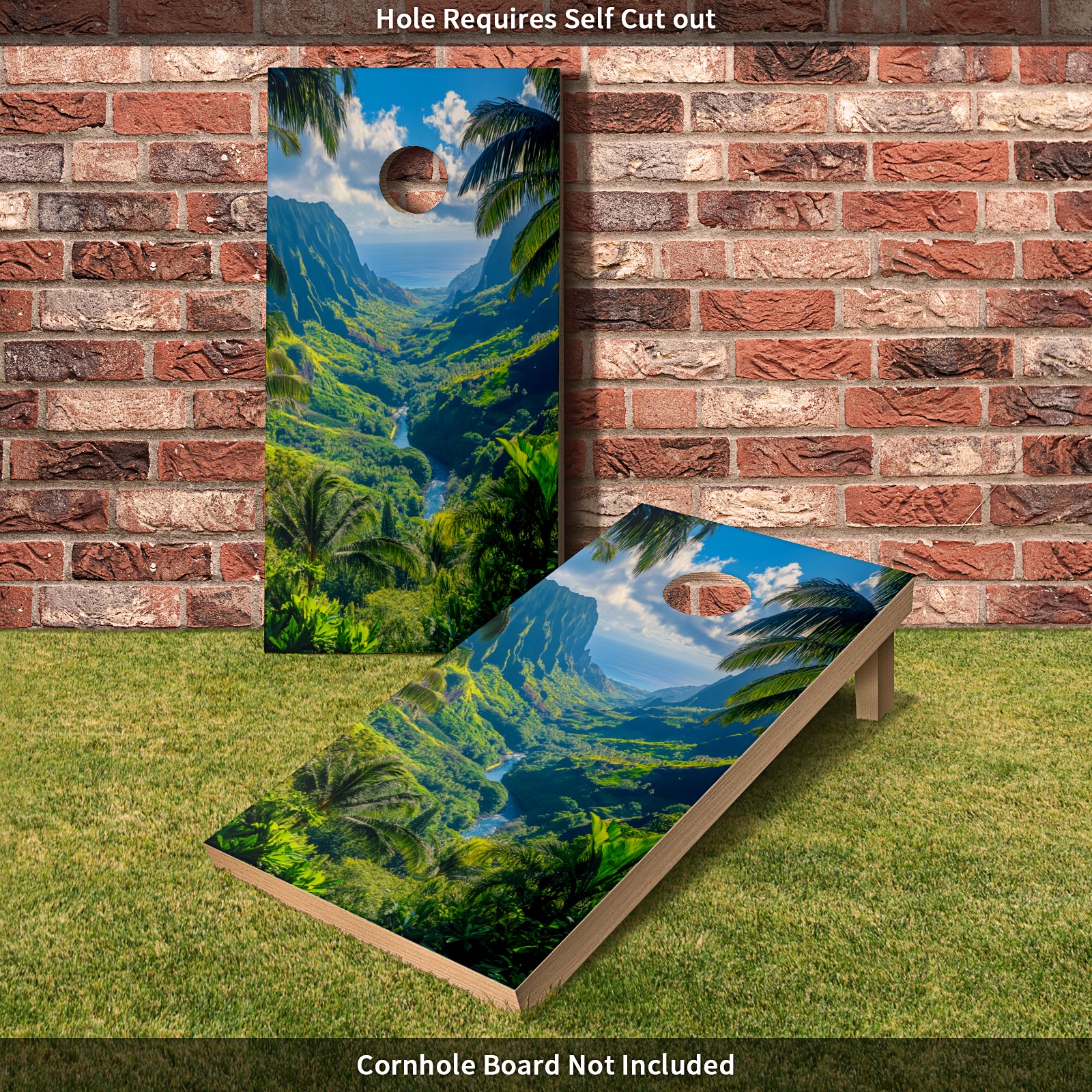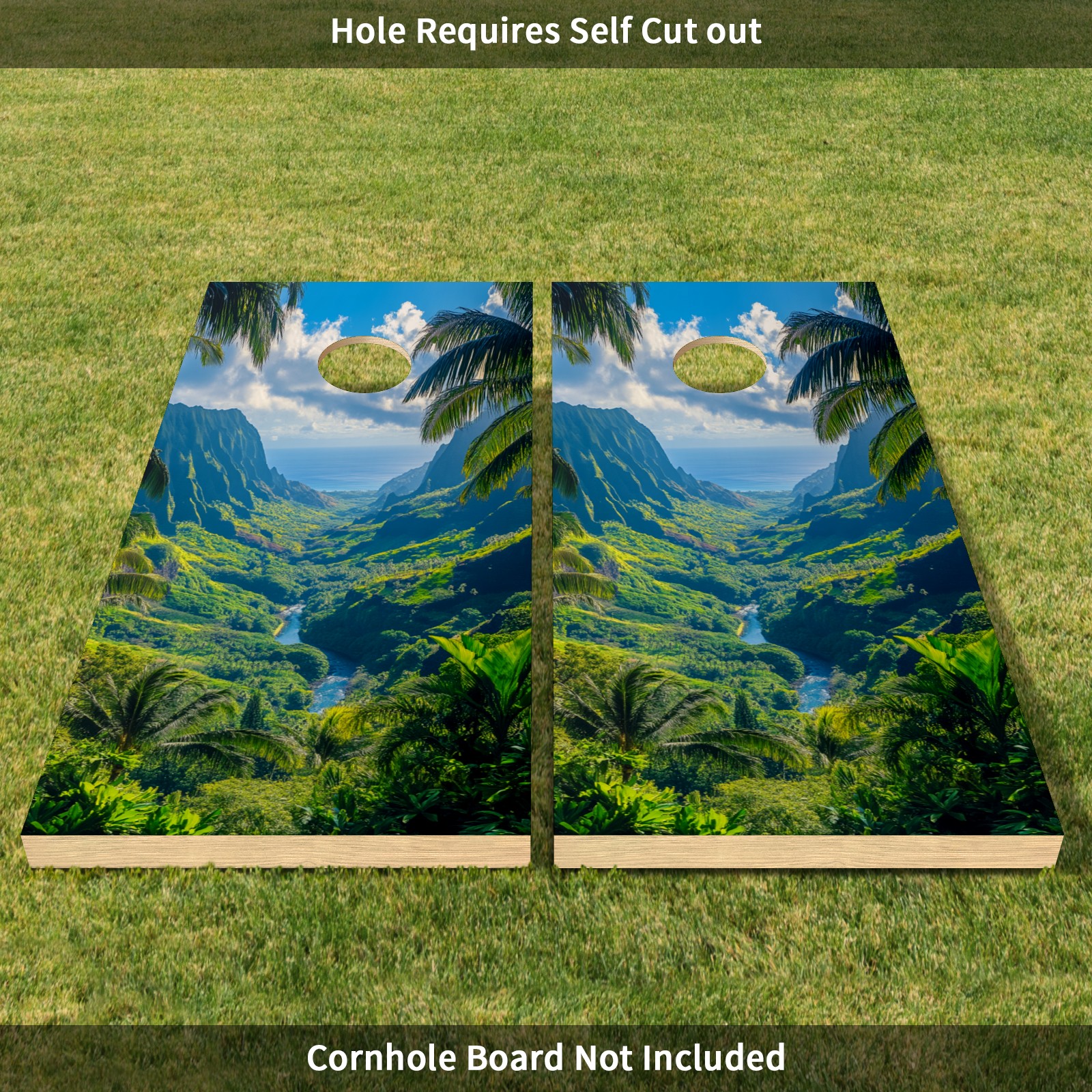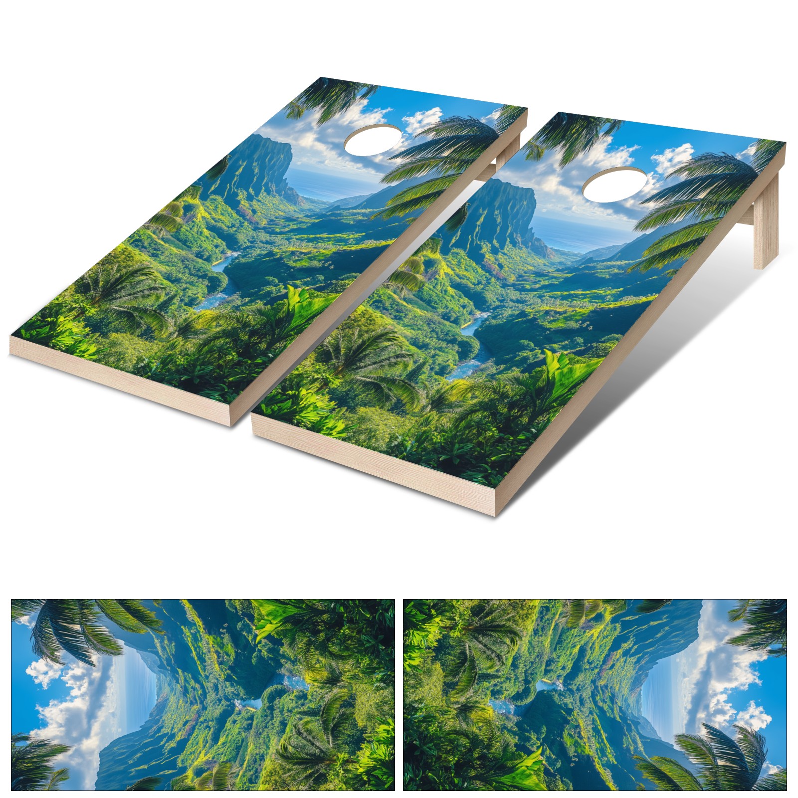 Portable 4x2 Cornhole Set with Two-piece Pack Boards - Cornhole Game Sticker Included - Yard Travel Outdoor Toss Board for Adults Outside Activities Valley Panoramic Pattern2