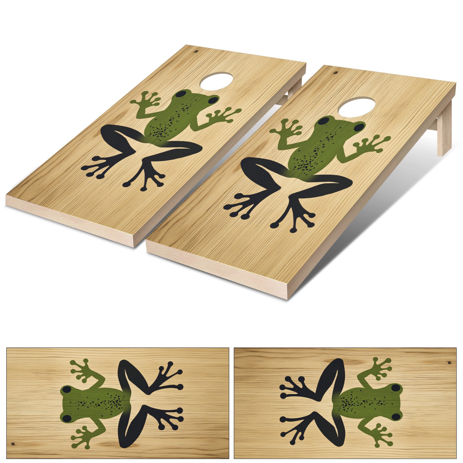 Portable 4x2 Cornhole Set with Two-piece Pack Boards - Cornhole Game Sticker Included - Yard Travel Outdoor Toss Board for Adults Outside Activities Striped Frog Pattern5