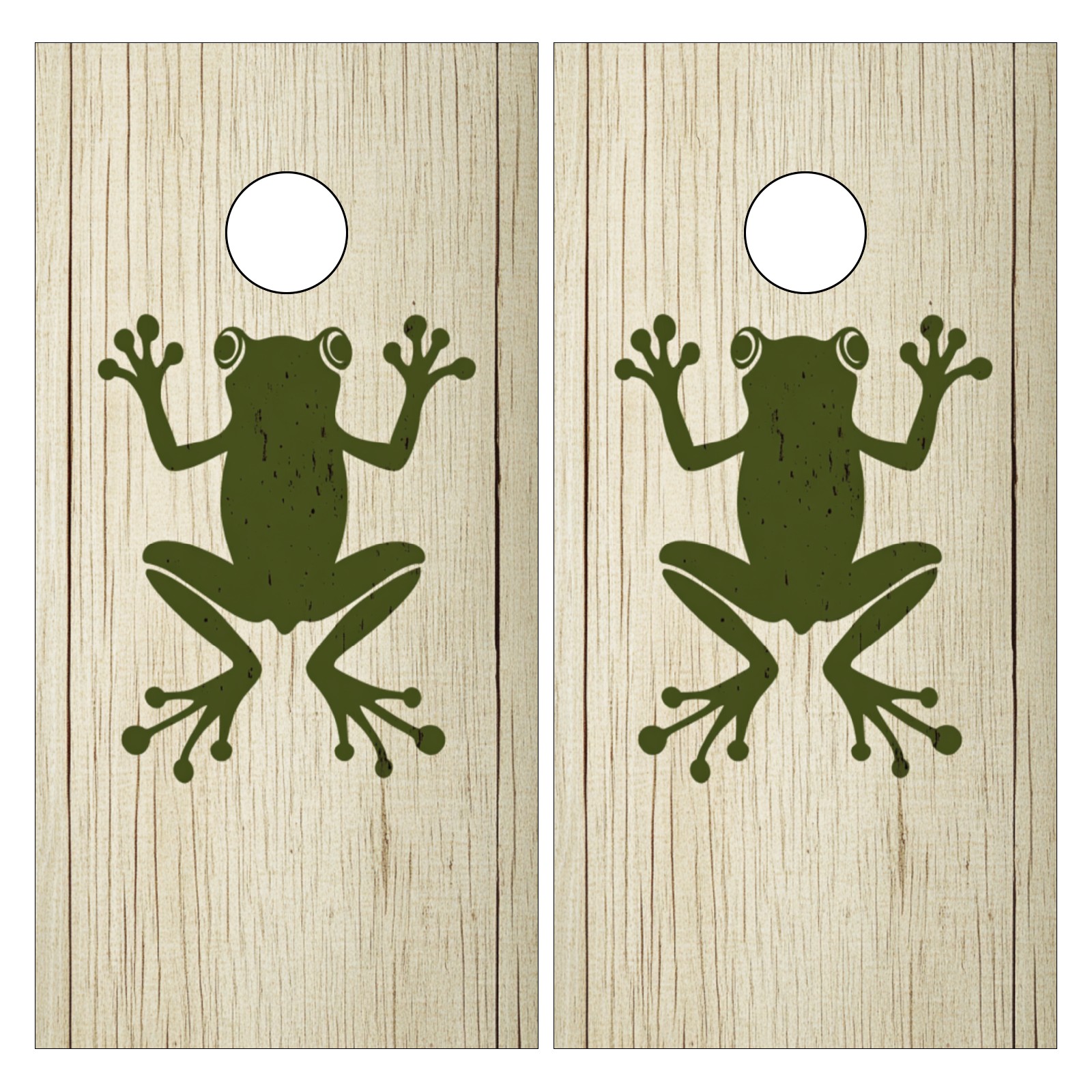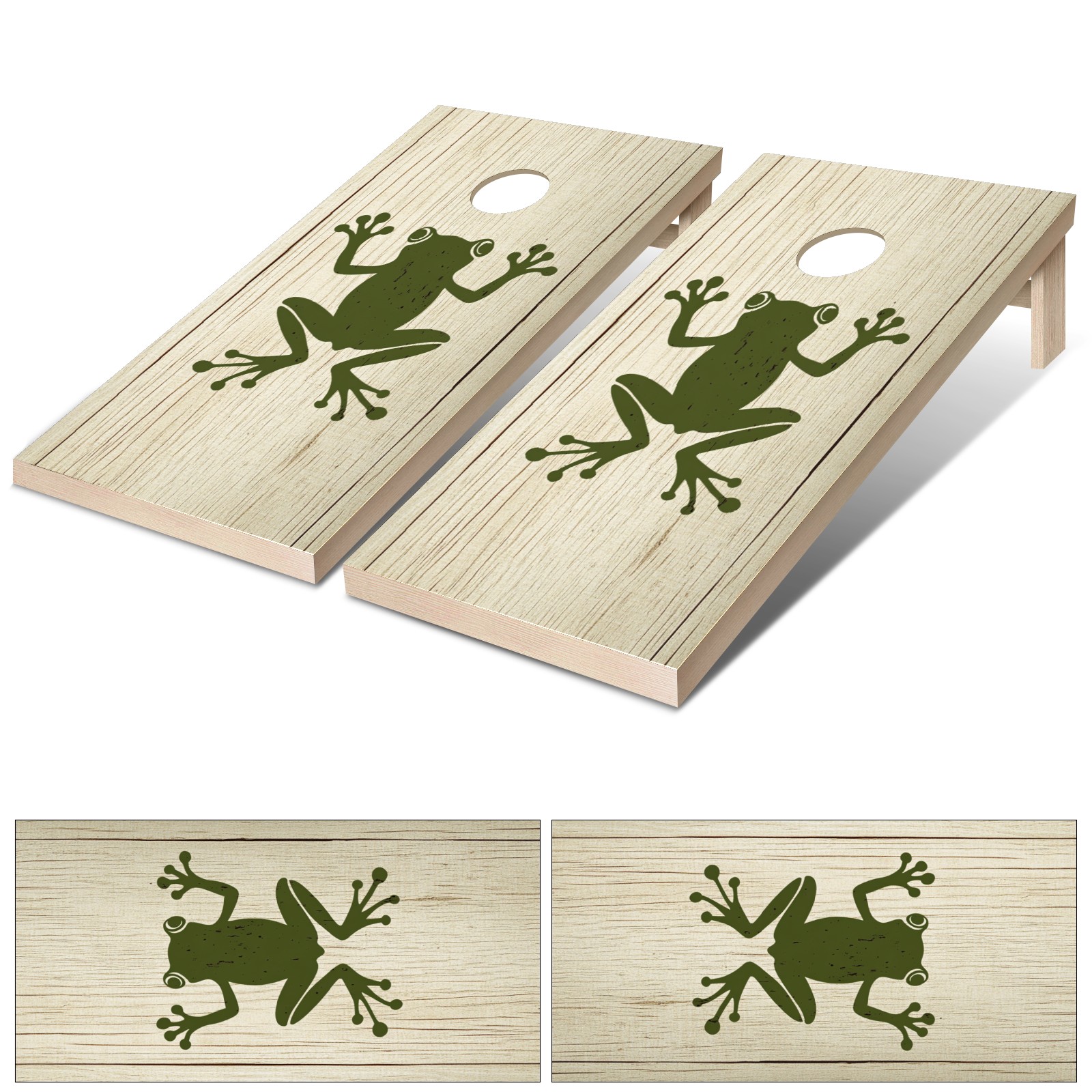Portable 4x2 Cornhole Set with Two-piece Pack Boards - Cornhole Game Sticker Included - Yard Travel Outdoor Toss Board for Adults Outside Activities Striped Frog Pattern4