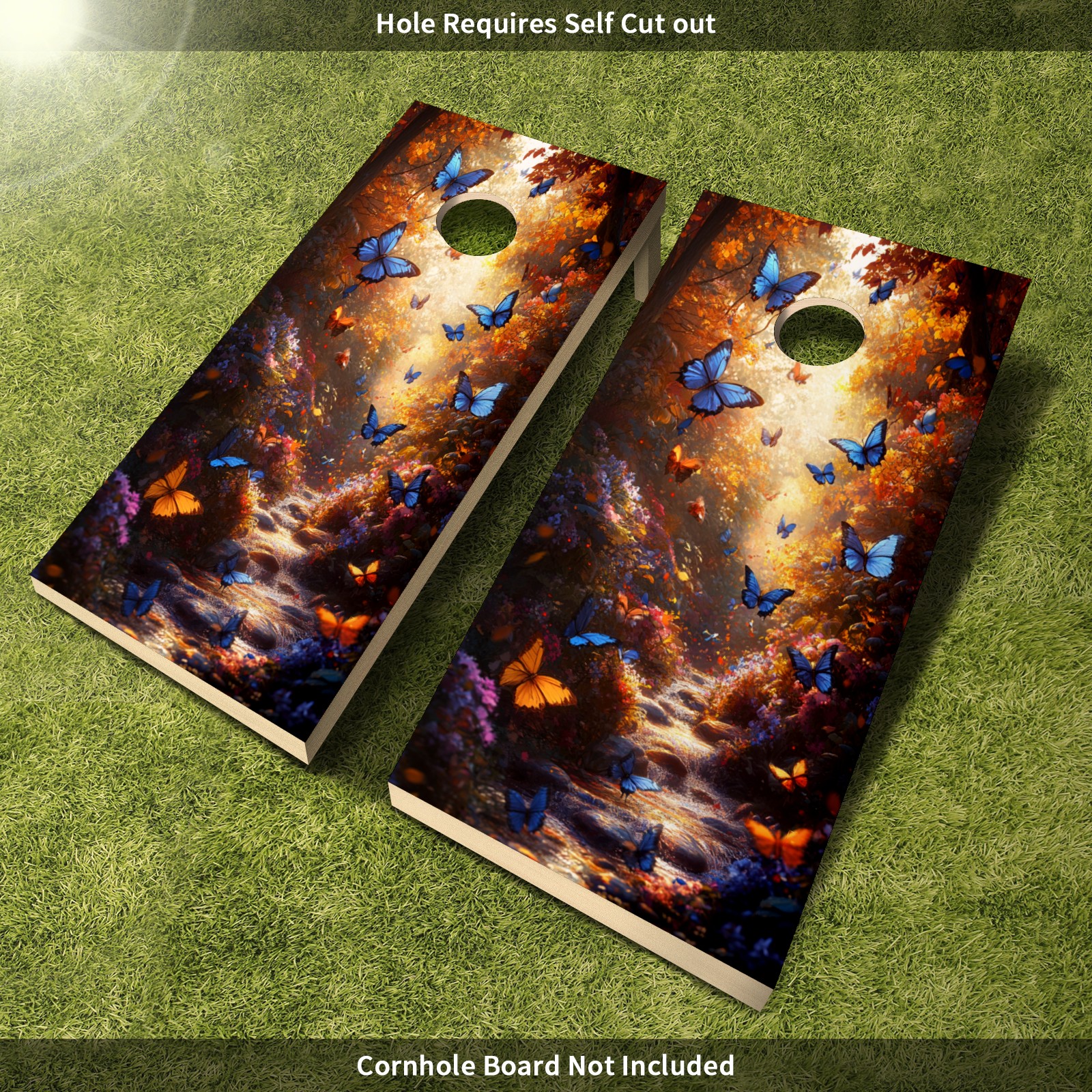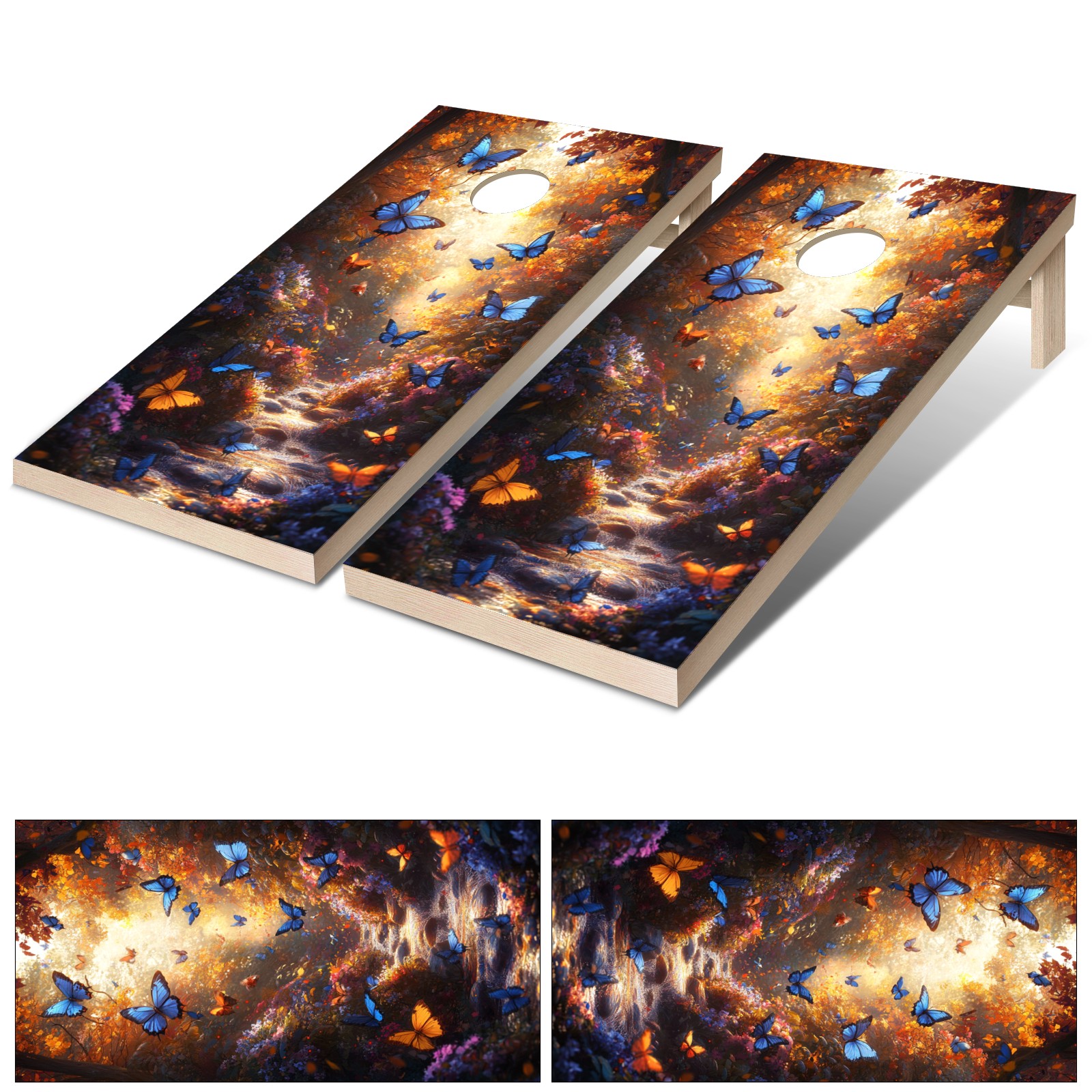 Portable 4x2 Cornhole Set with Two-piece Pack Boards - Cornhole Game Sticker Included - Yard Travel Outdoor Toss Board for Adults Outside Activities Butterfly Valley