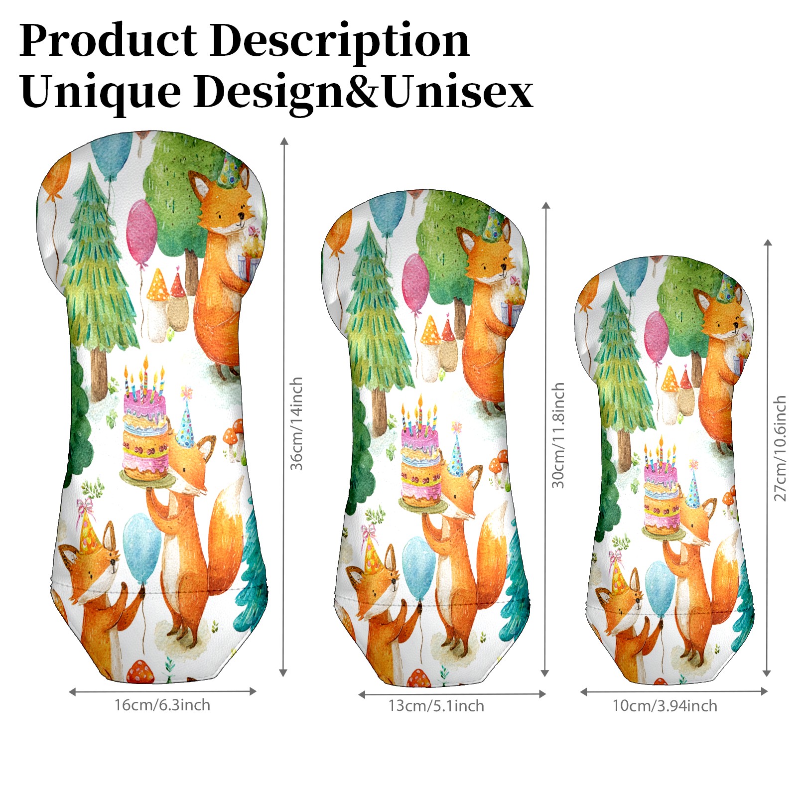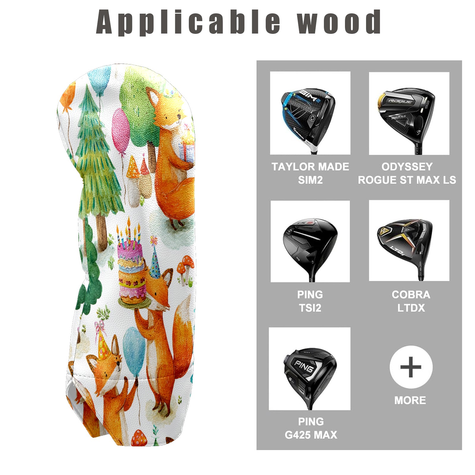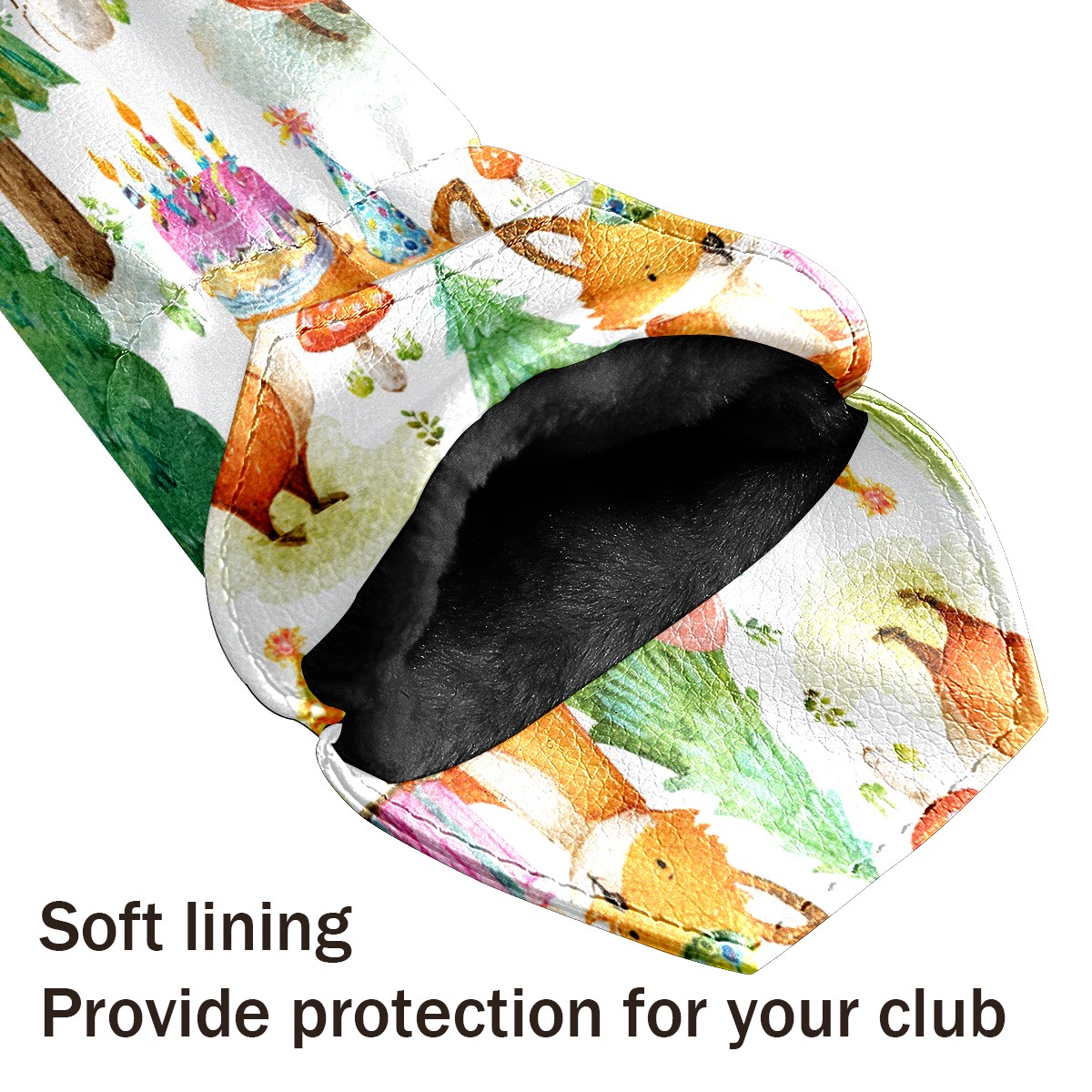 Counullo Golf Club Covers Beige Fox Forest - Driver/Fairway/Hybrid/3 Wood Headcover, Premium PU Leather Soft Velvet Lining, Waterproof Golf Gift for Enthusiasts