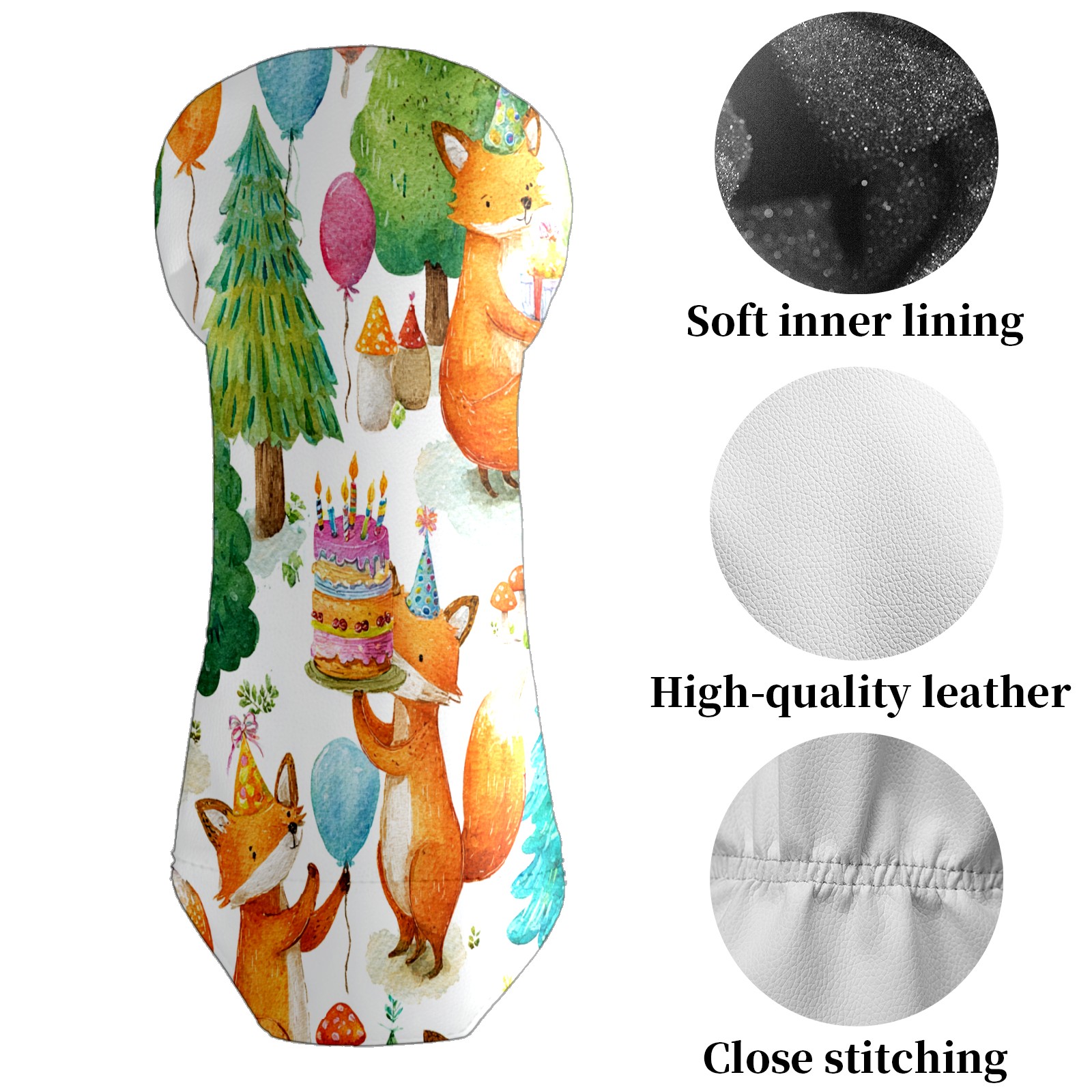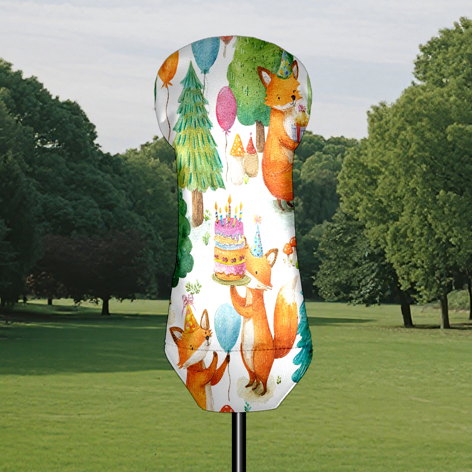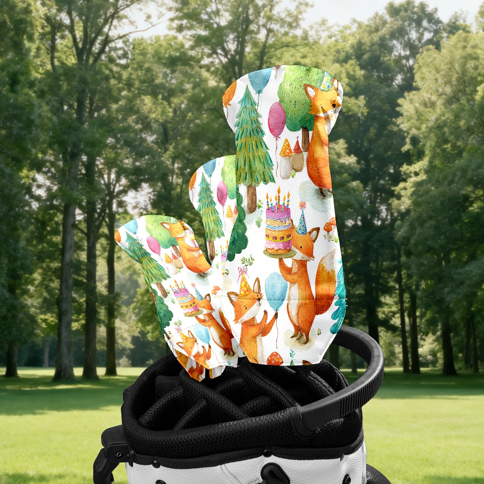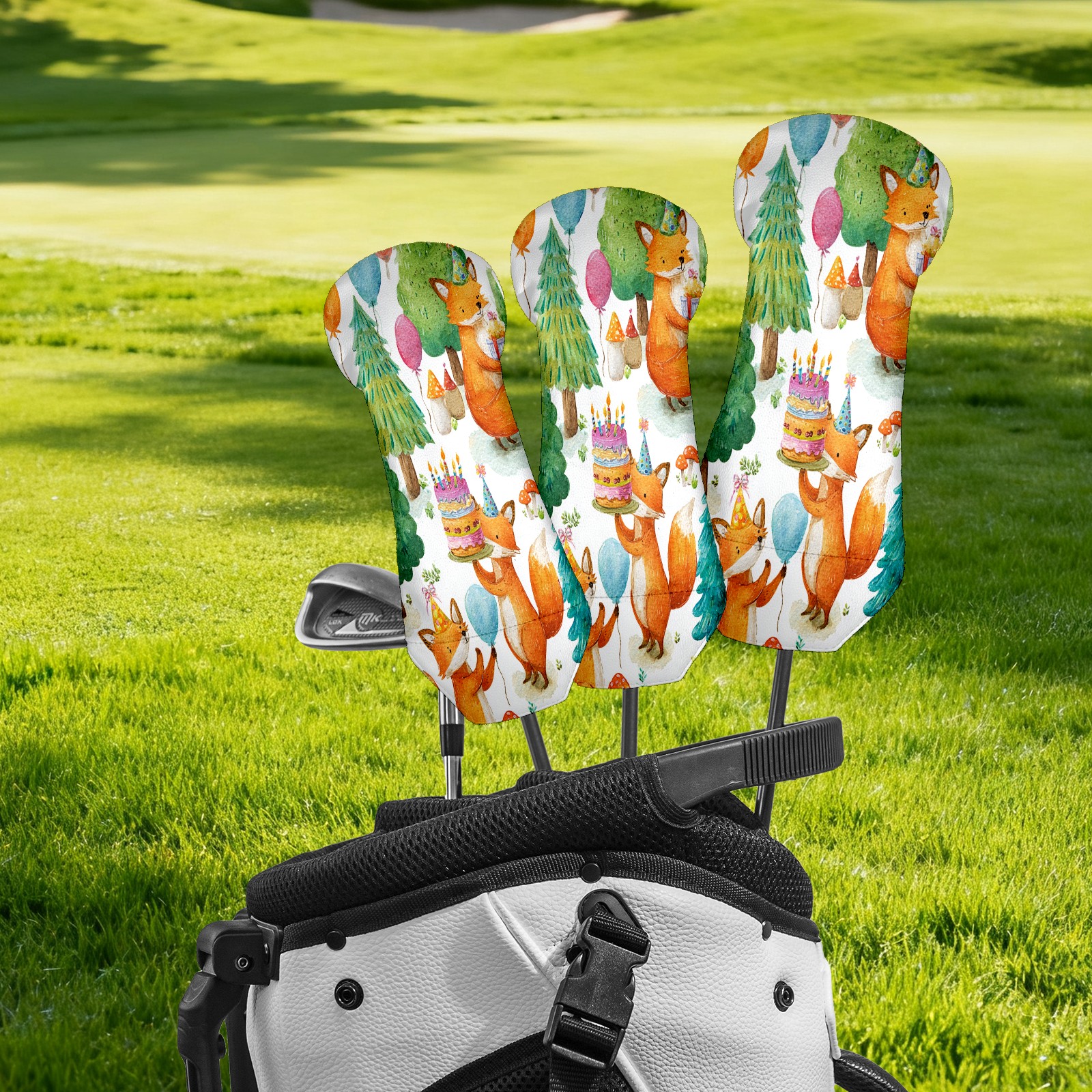 Counullo Golf Club Covers Beige Fox Forest - Driver/Fairway/Hybrid/3 Wood Headcover, Premium PU Leather Soft Velvet Lining, Waterproof Golf Gift for Enthusiasts