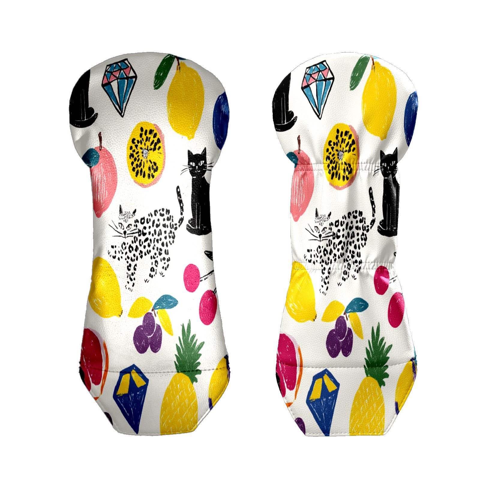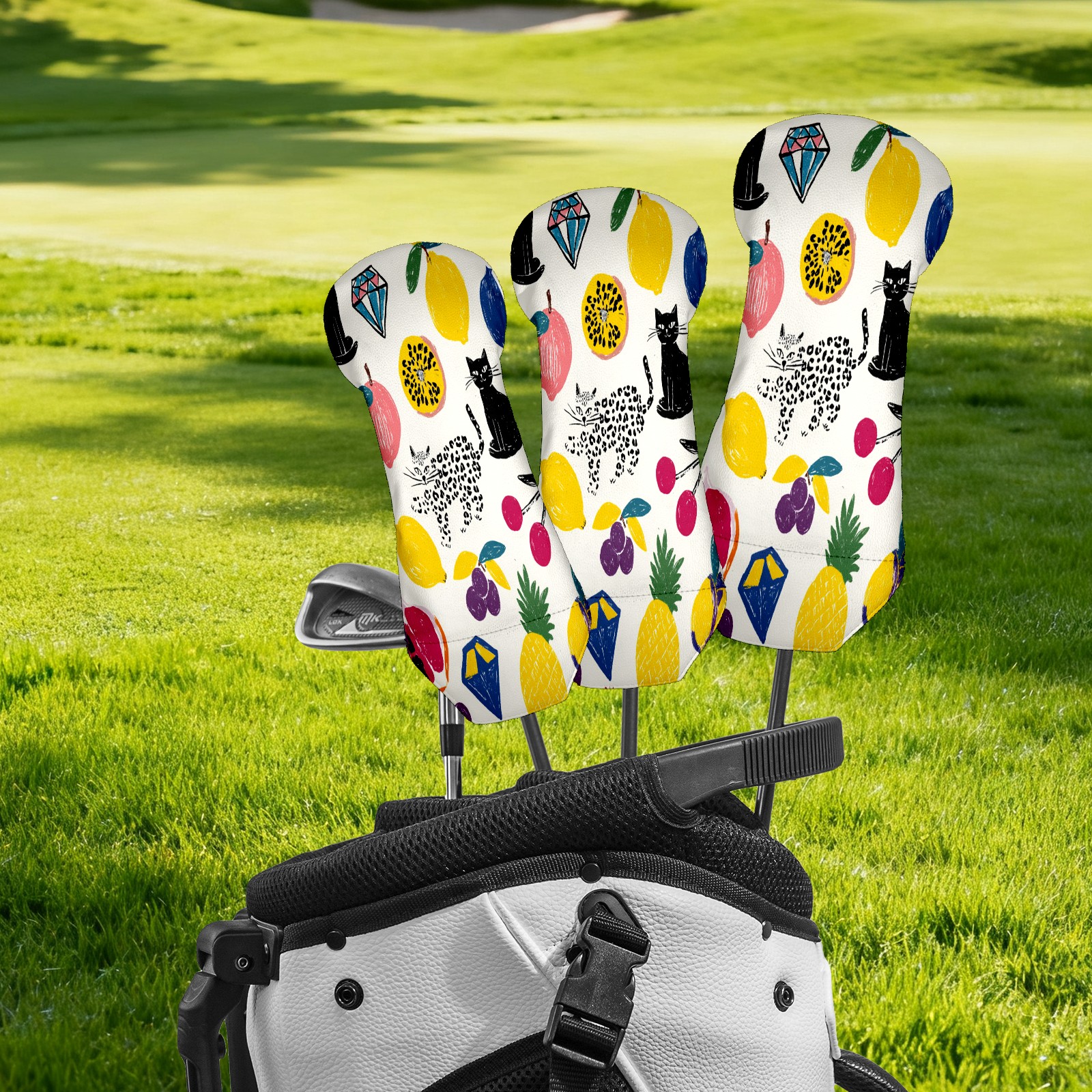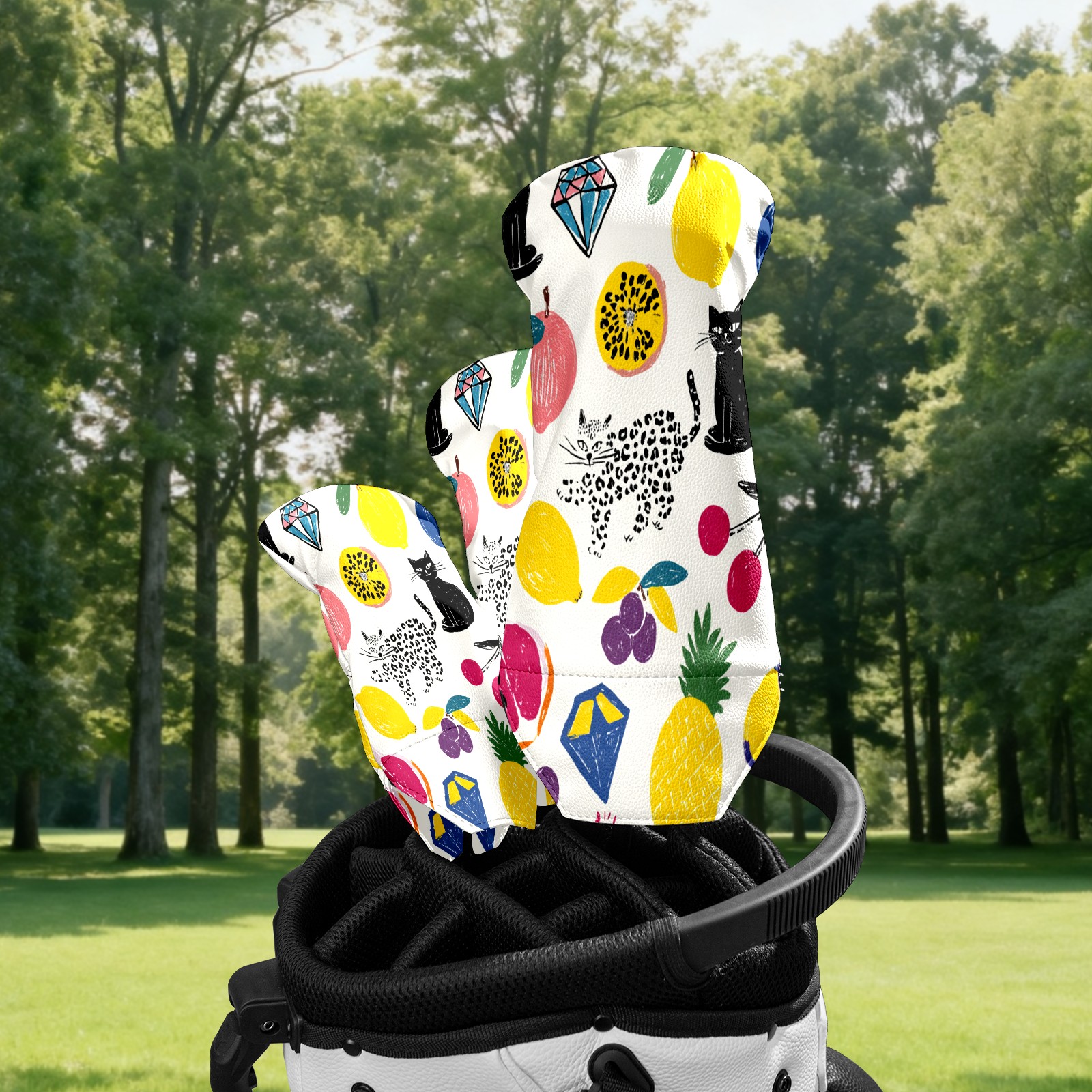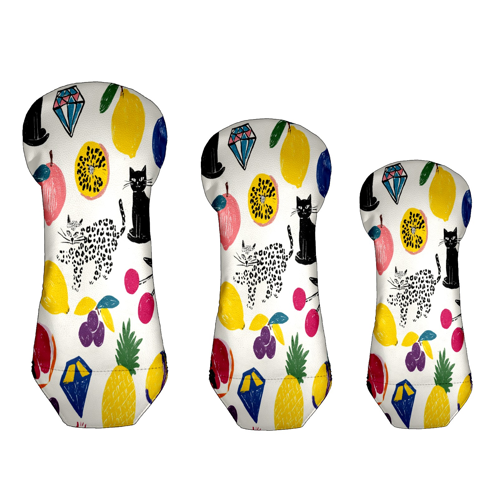 Counullo Golf Club Covers Multicolor Fruits Cats - Driver/Fairway/Hybrid/3 Wood Headcover, Premium PU Leather Soft Velvet Lining, Waterproof Golf Gift for Enthusiasts