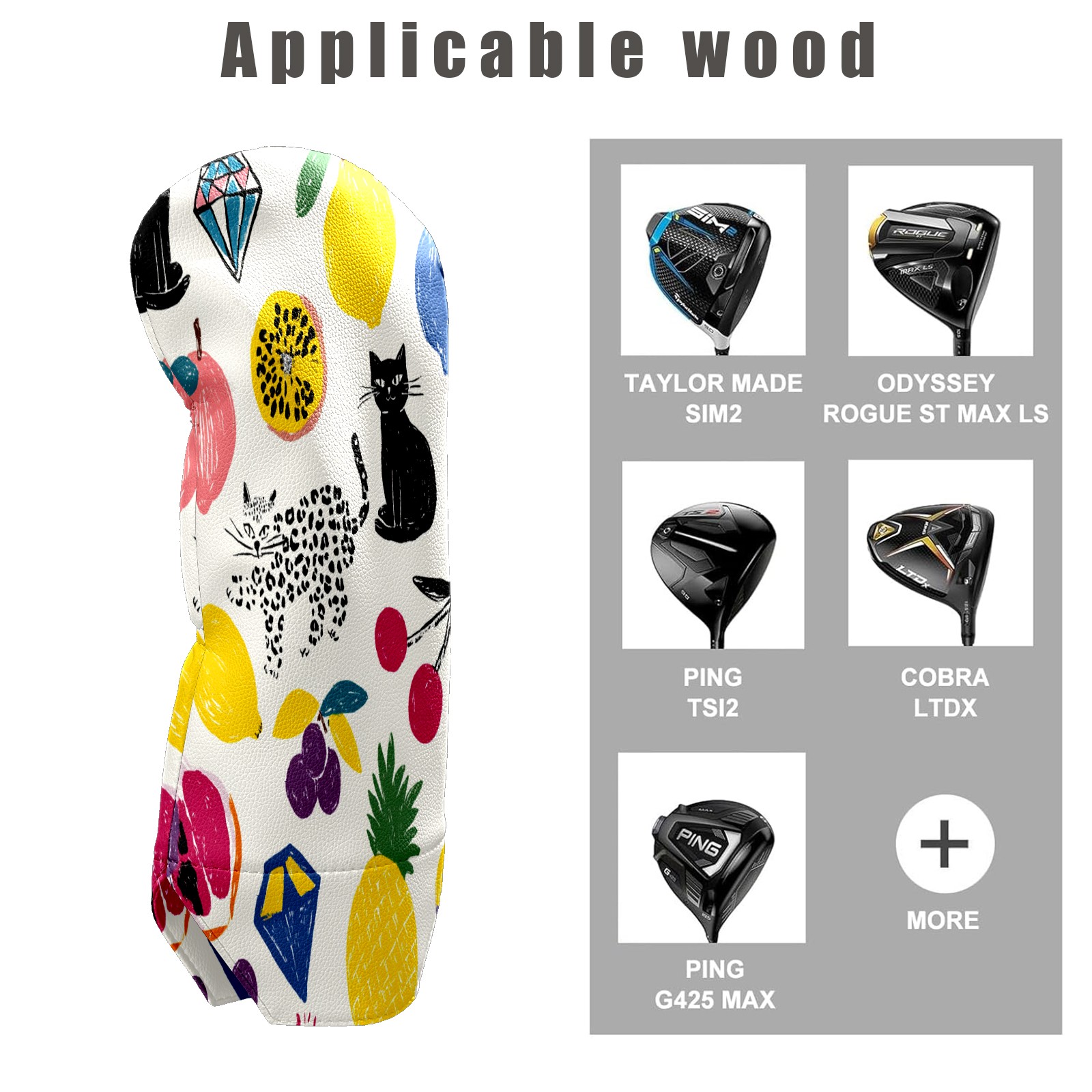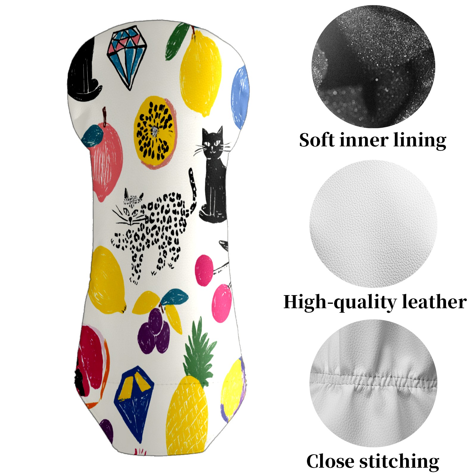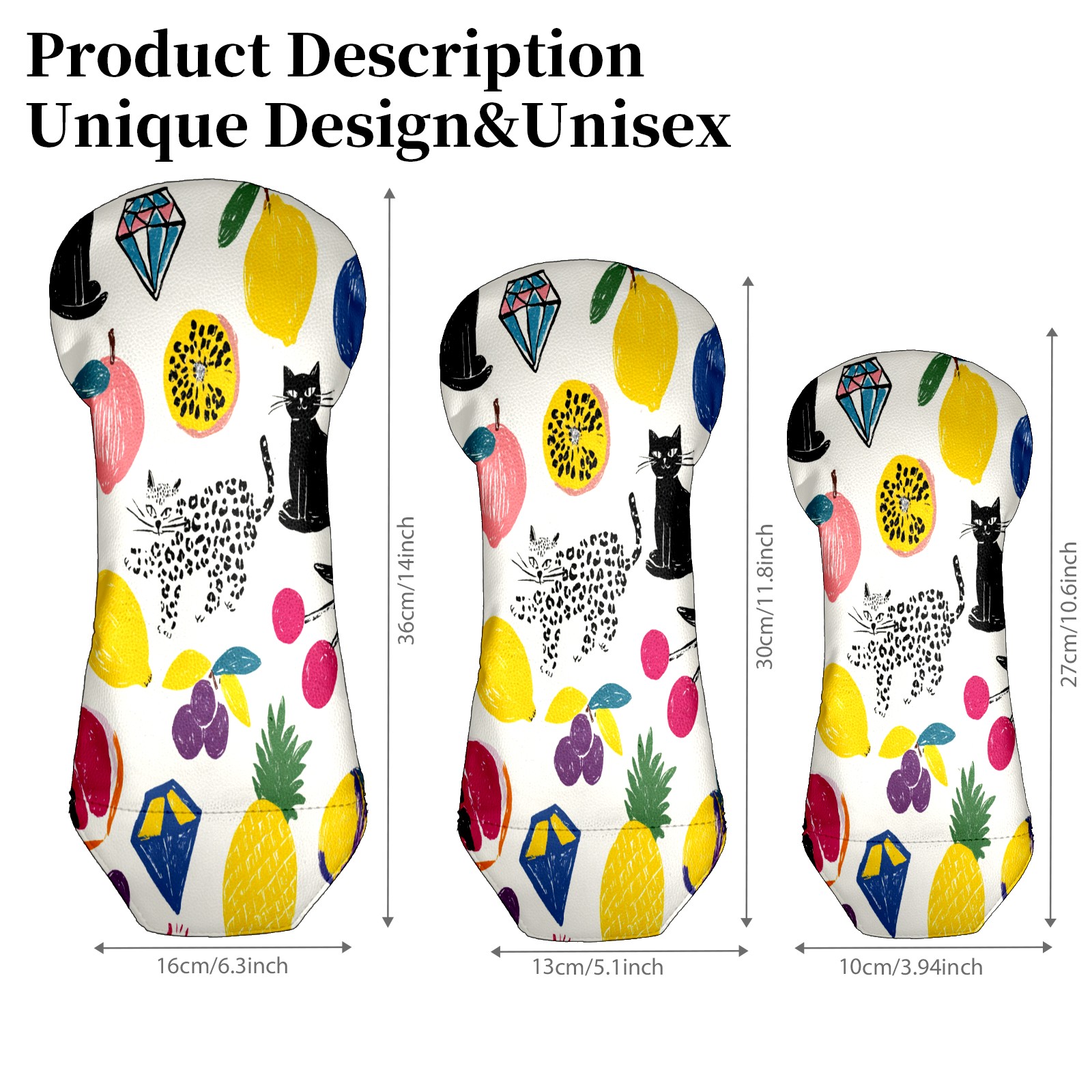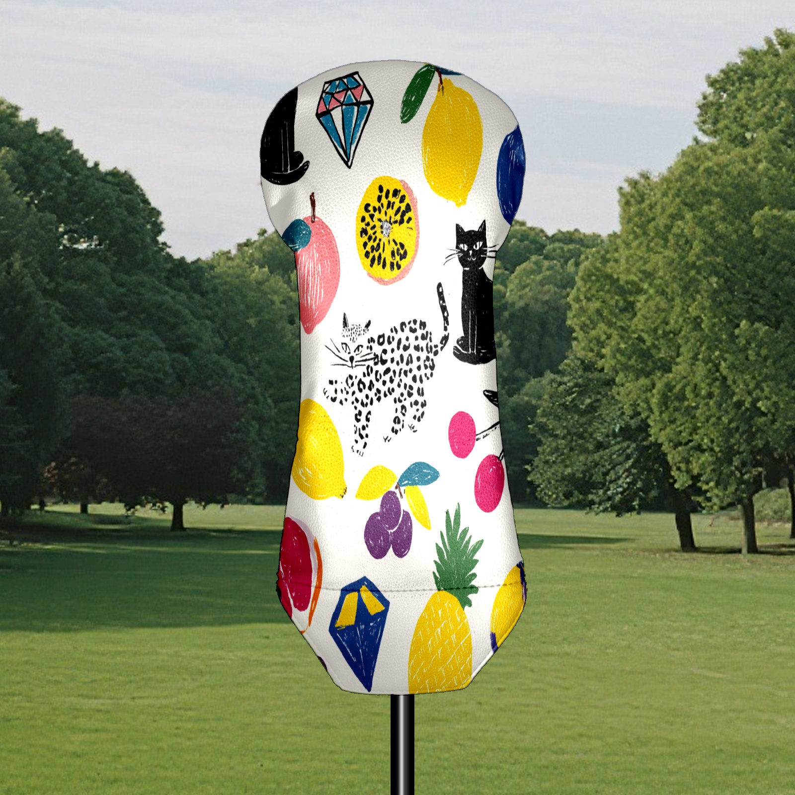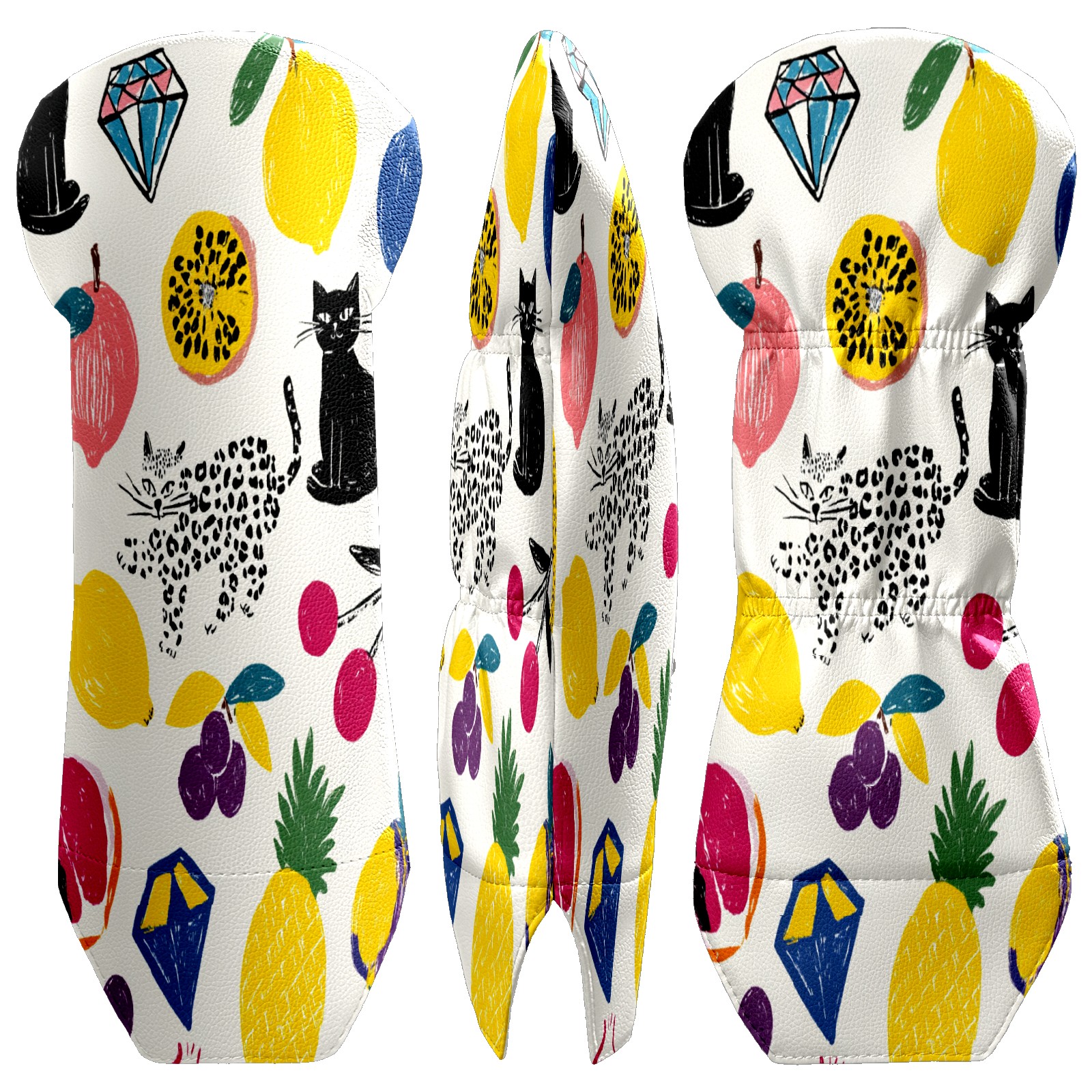 Counullo Golf Club Covers Multicolor Fruits Cats - Driver/Fairway/Hybrid/3 Wood Headcover, Premium PU Leather Soft Velvet Lining, Waterproof Golf Gift for Enthusiasts