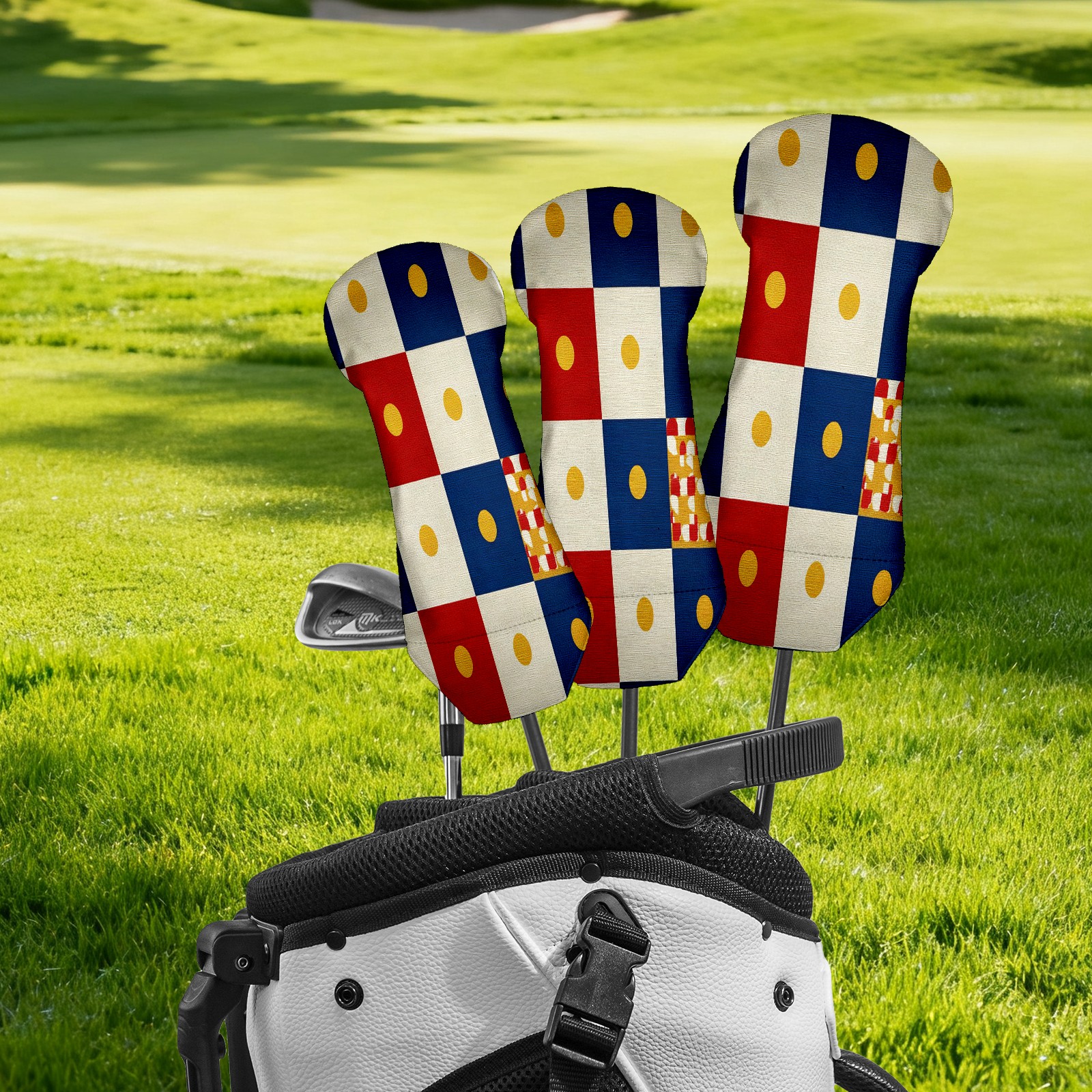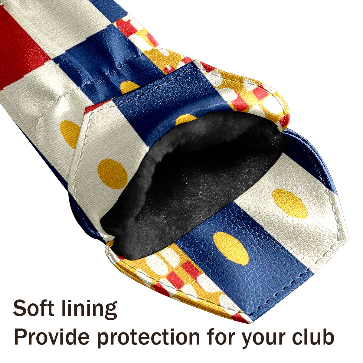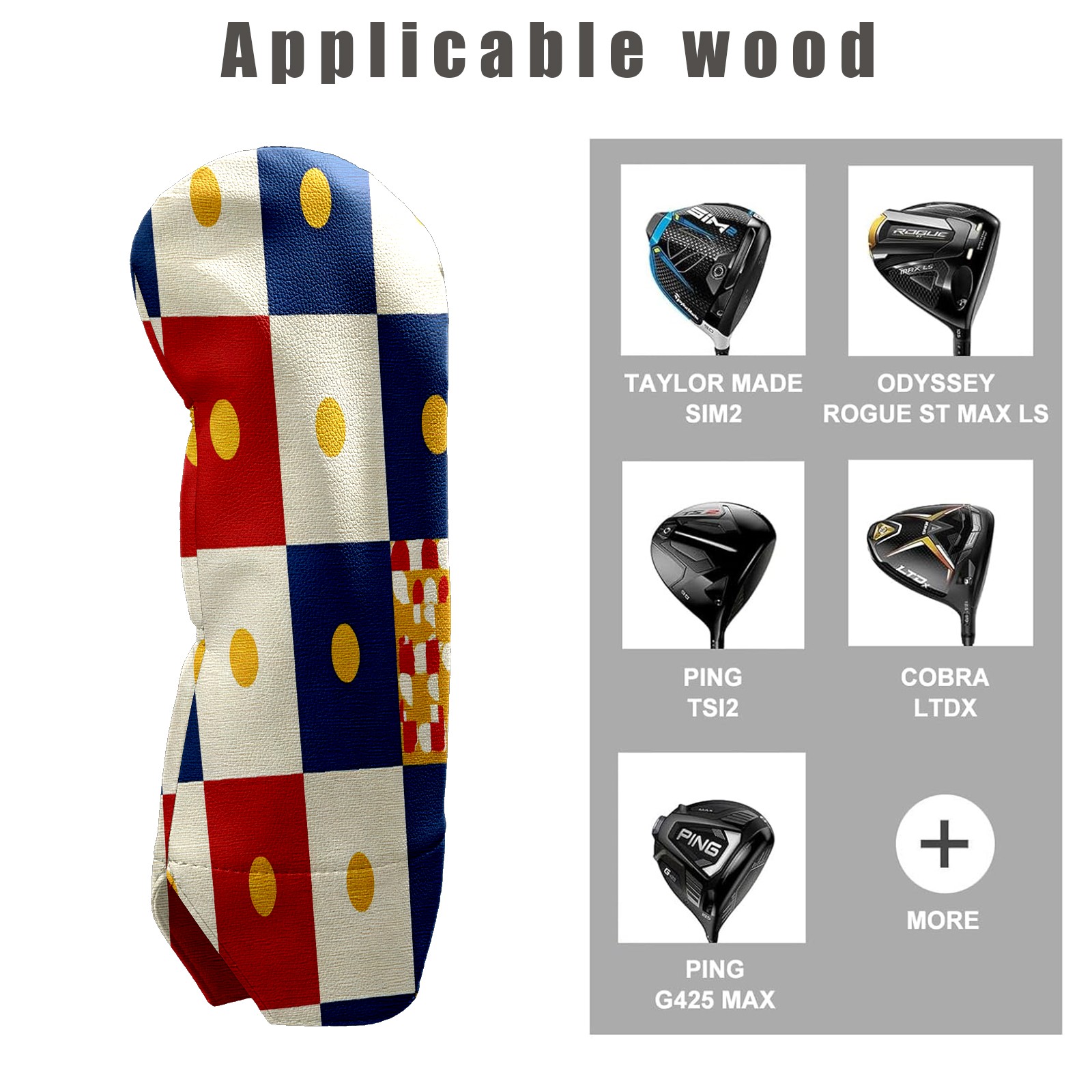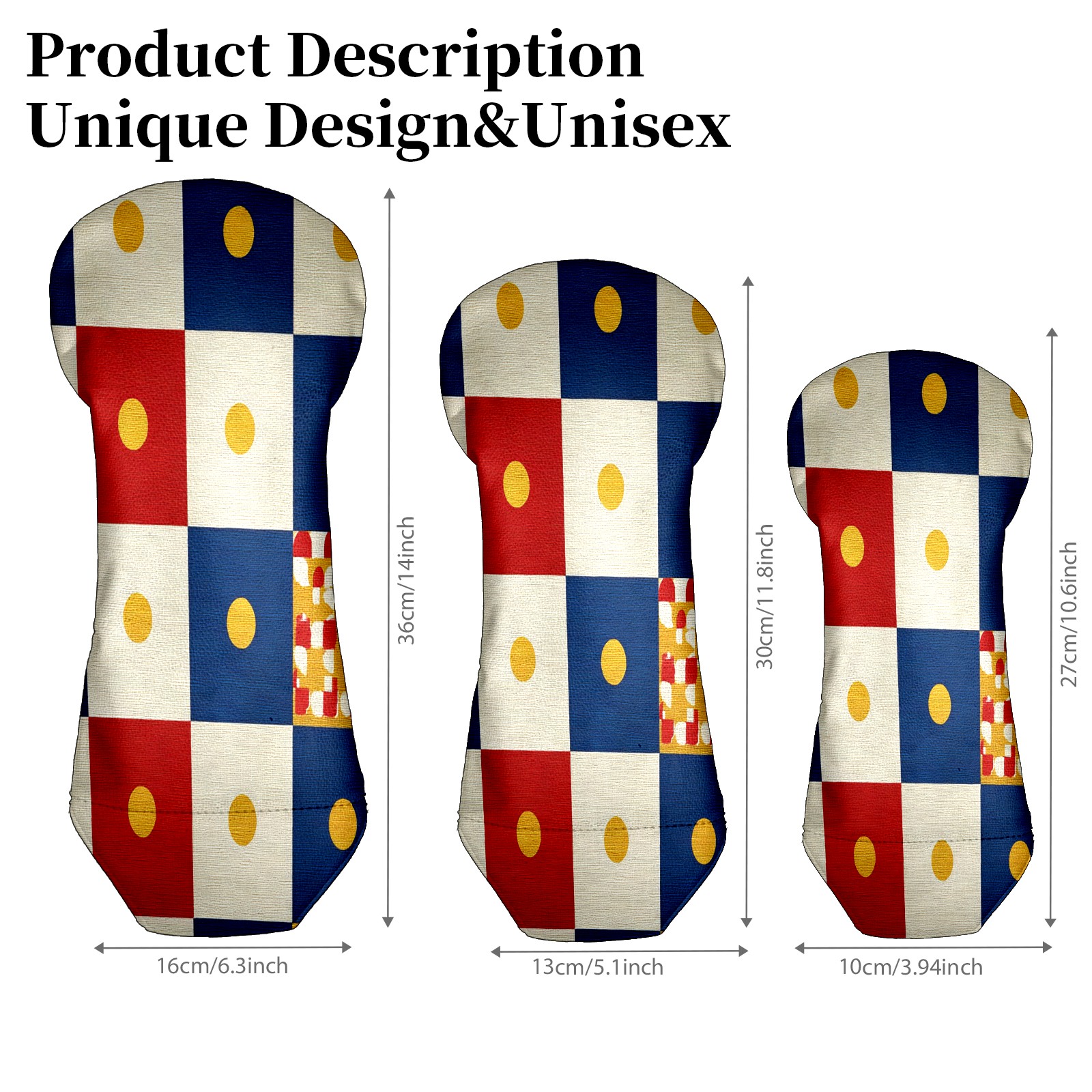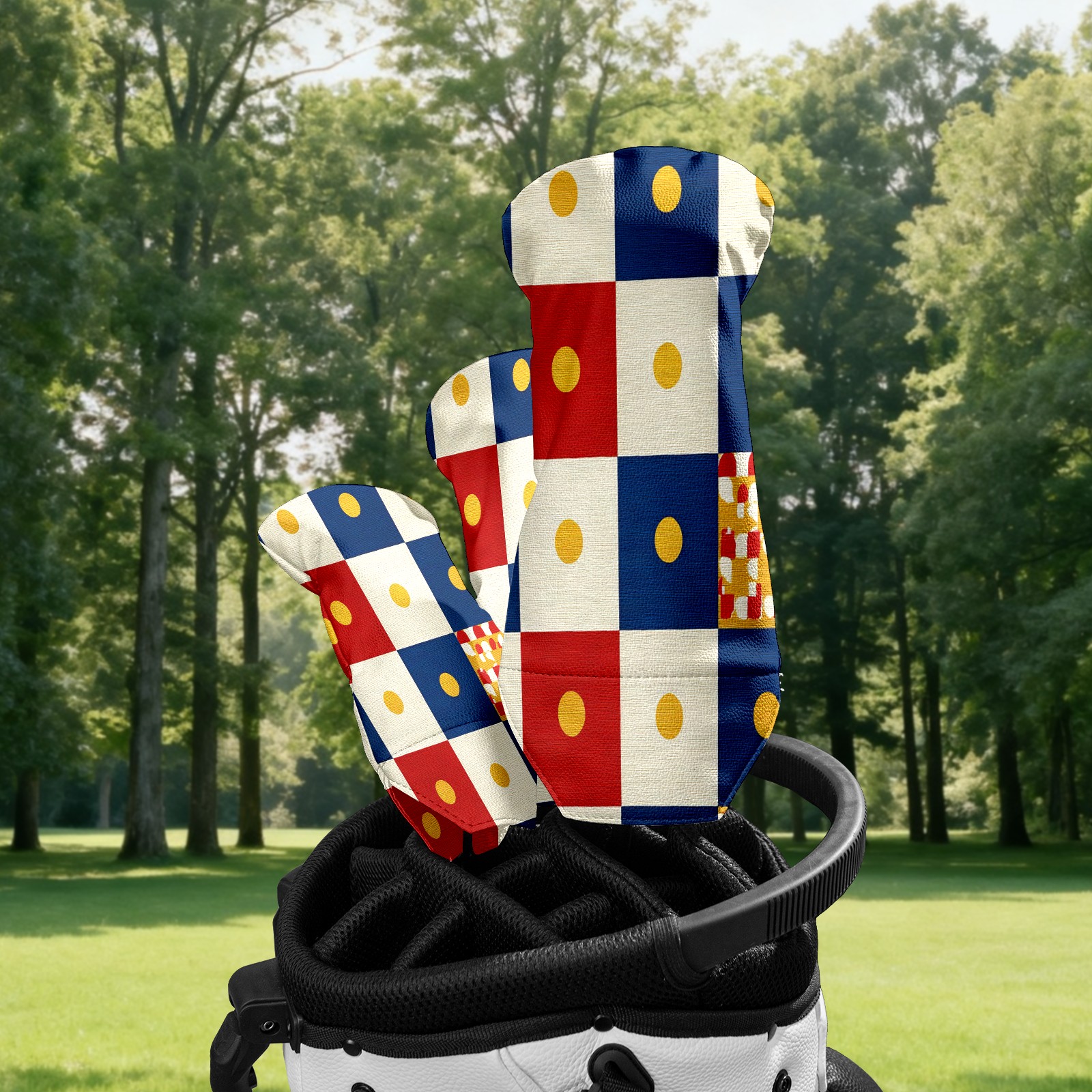 Counullo Golf Club Covers Multicolor Checker - Driver/Fairway/Hybrid/3 Wood Headcover, Premium PU Leather Soft Velvet Lining, Waterproof Golf Gift for Enthusiasts