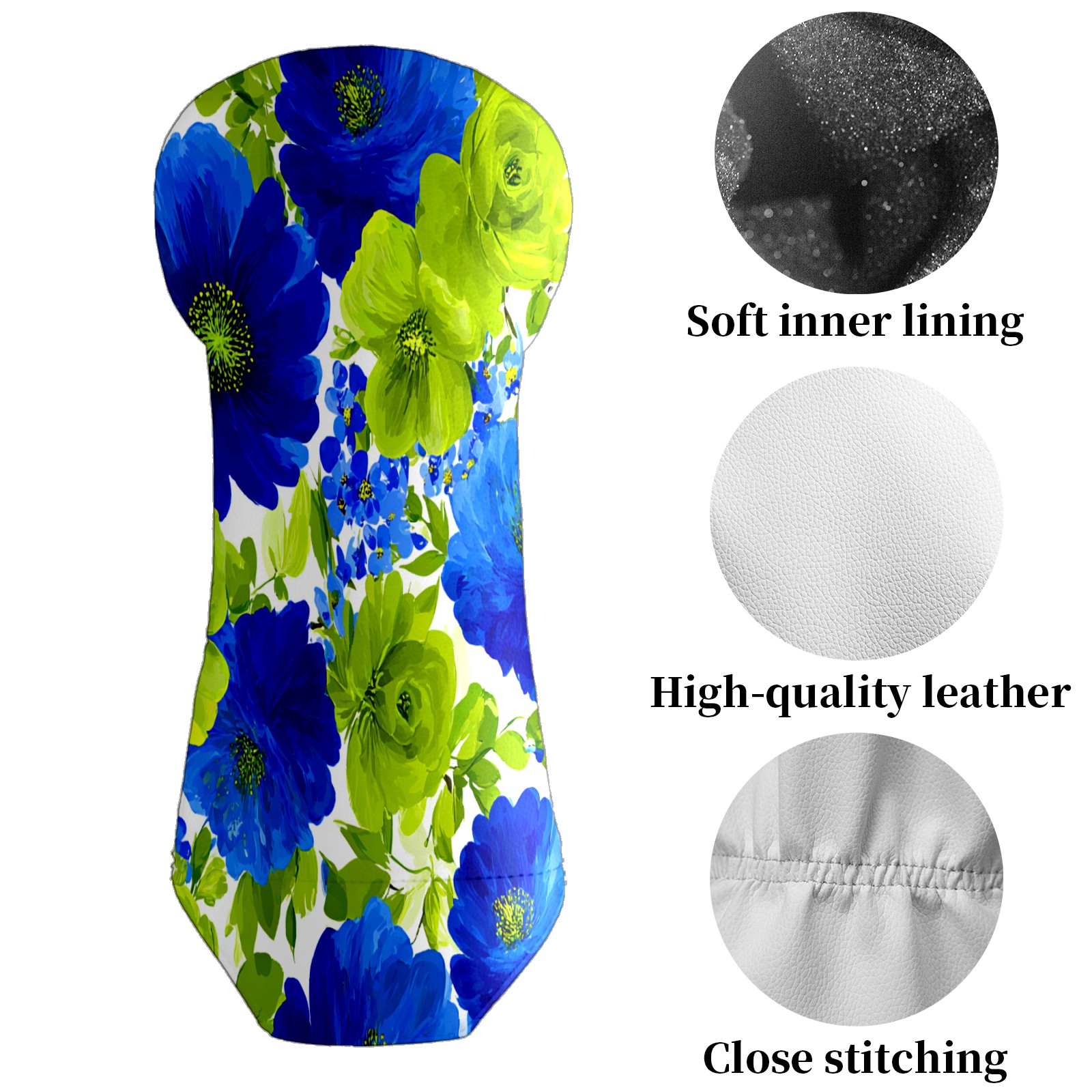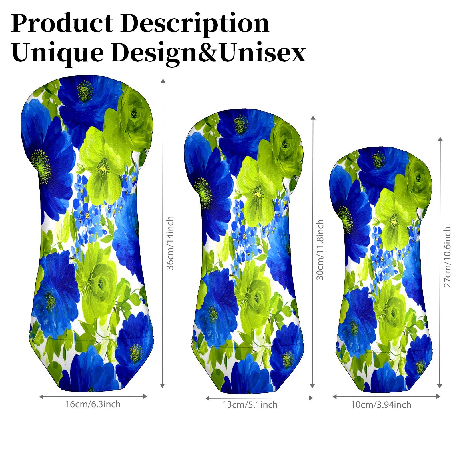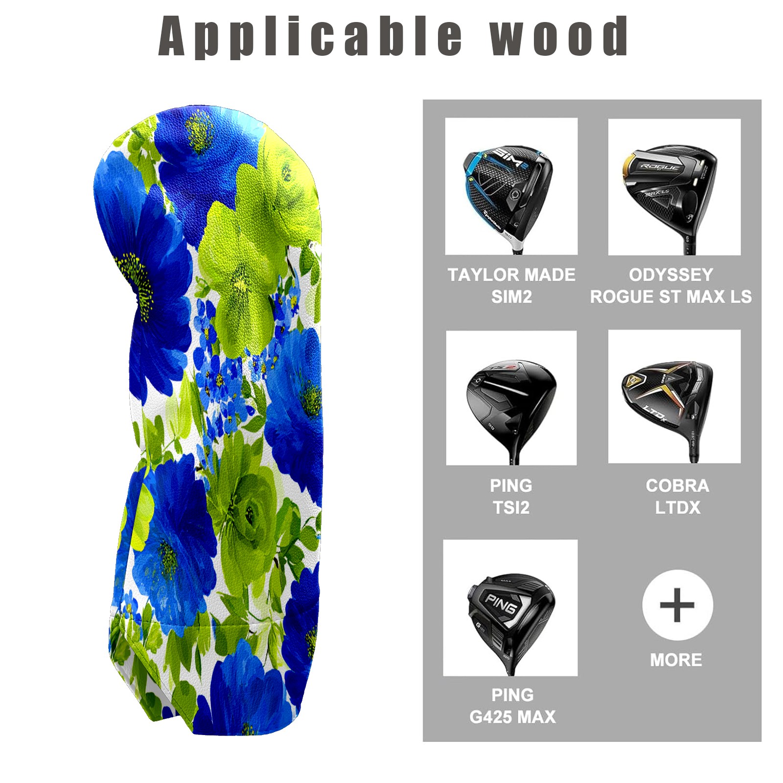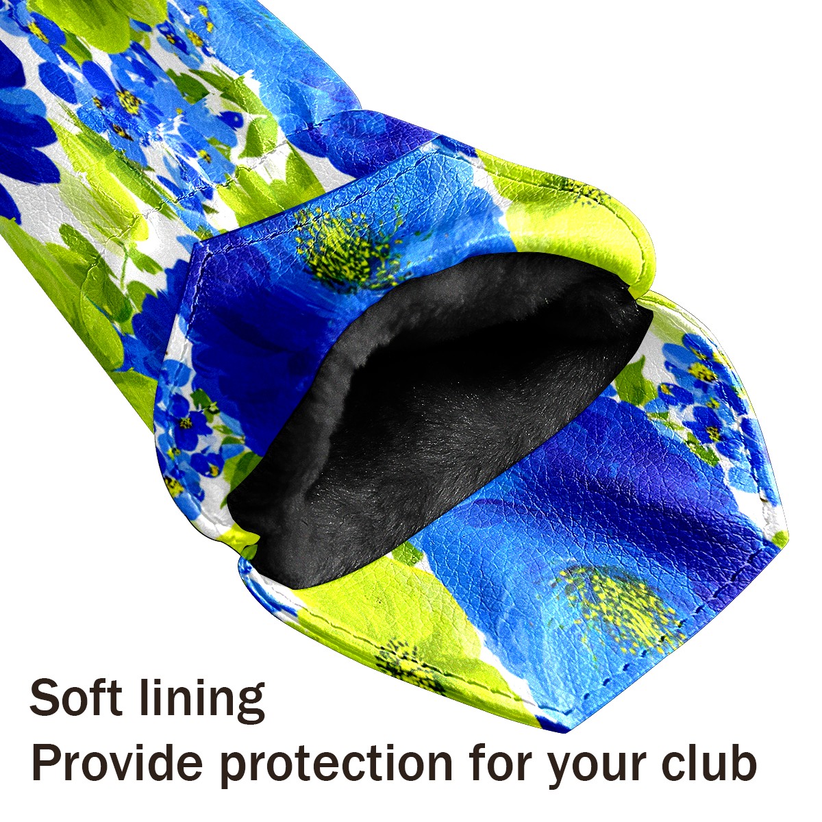 Counullo Golf Club Covers Blue Green Flowers - Driver/Fairway/Hybrid/3 Wood Headcover, Premium PU Leather Soft Velvet Lining, Waterproof Golf Gift for Enthusiasts