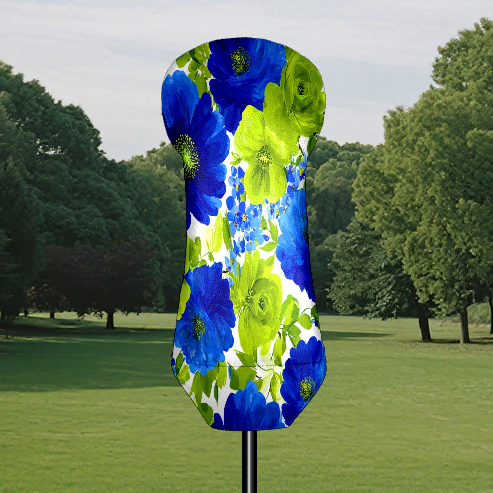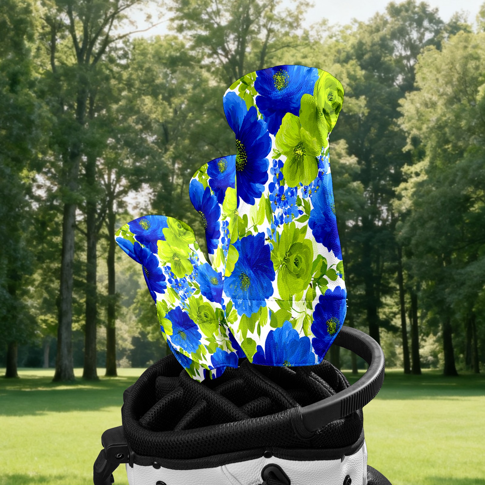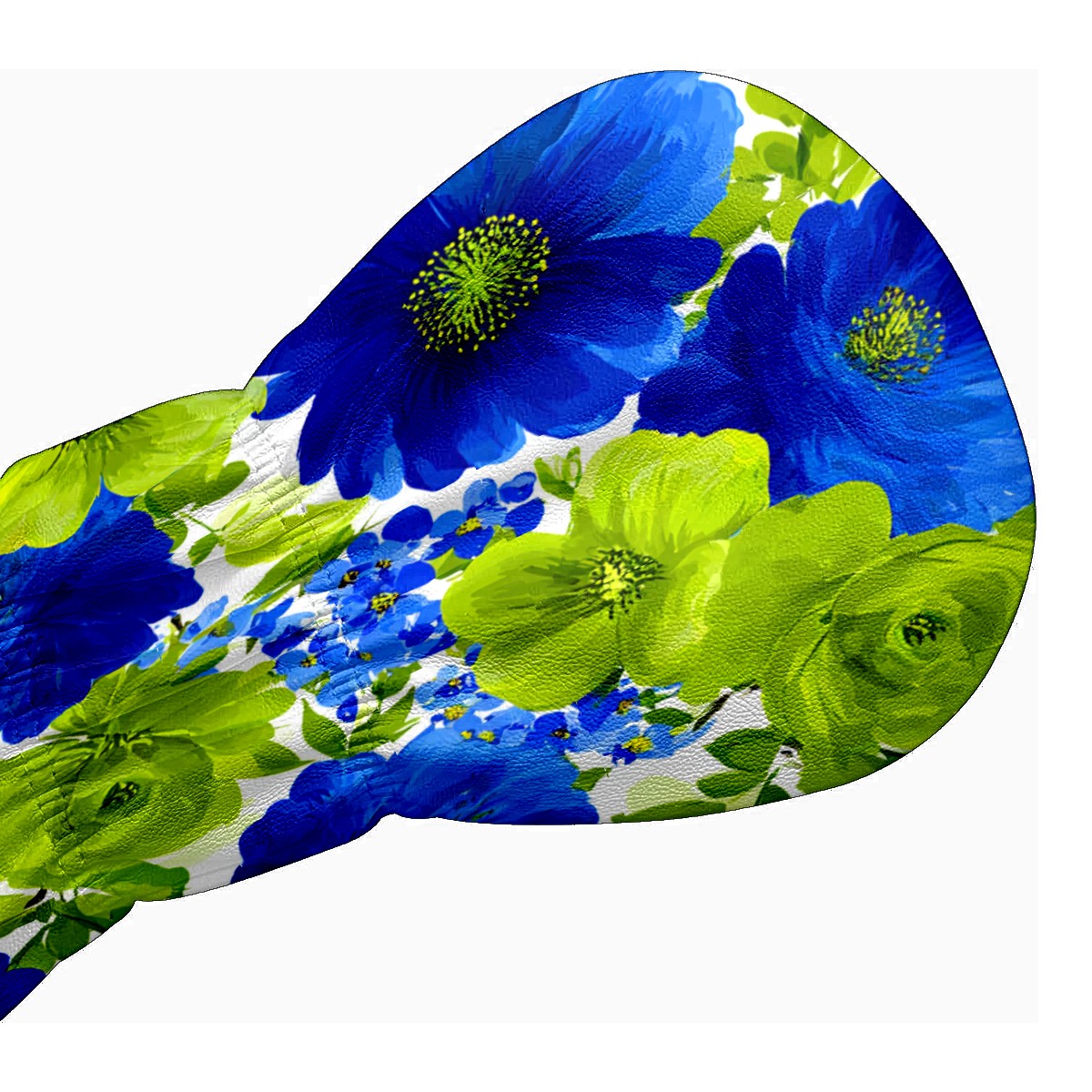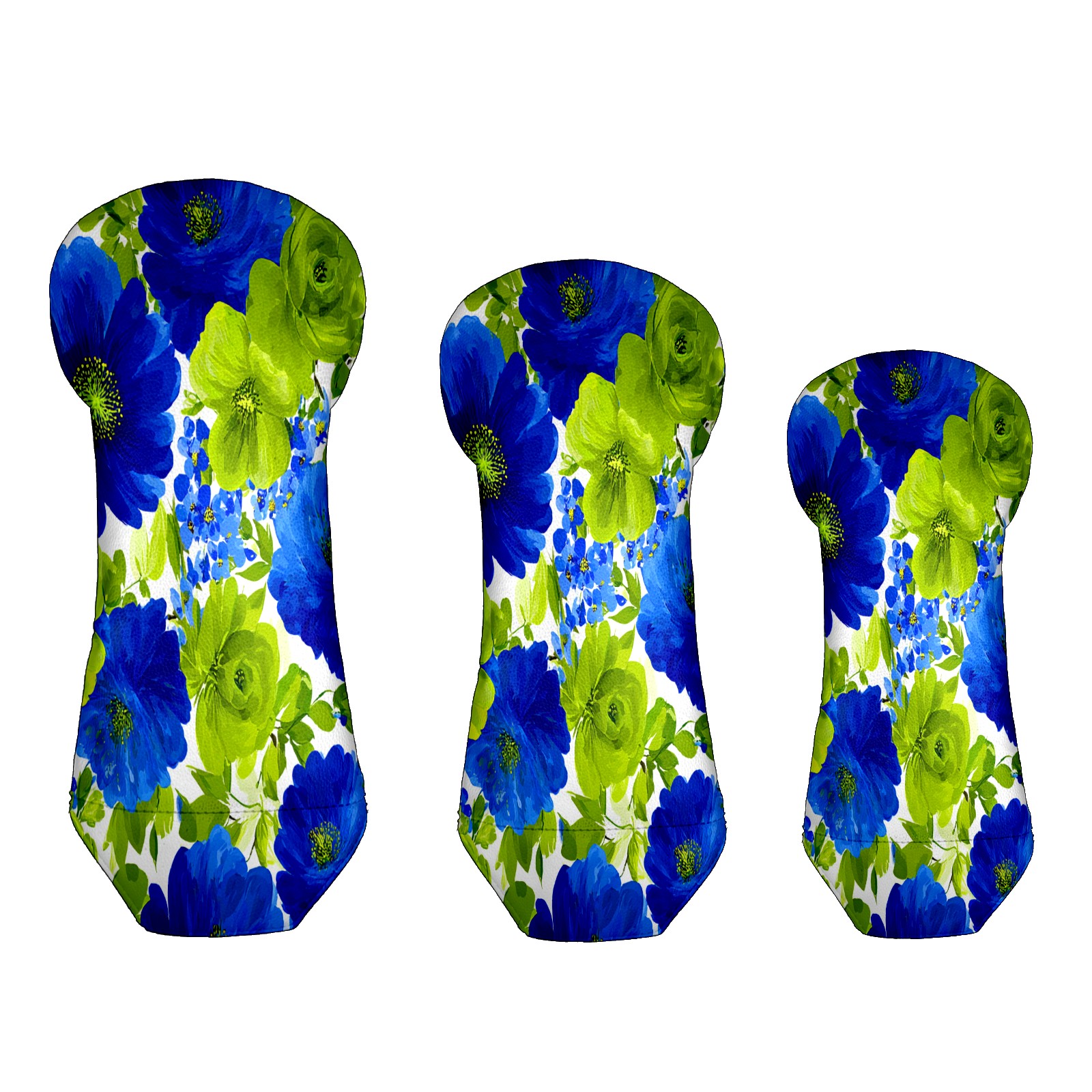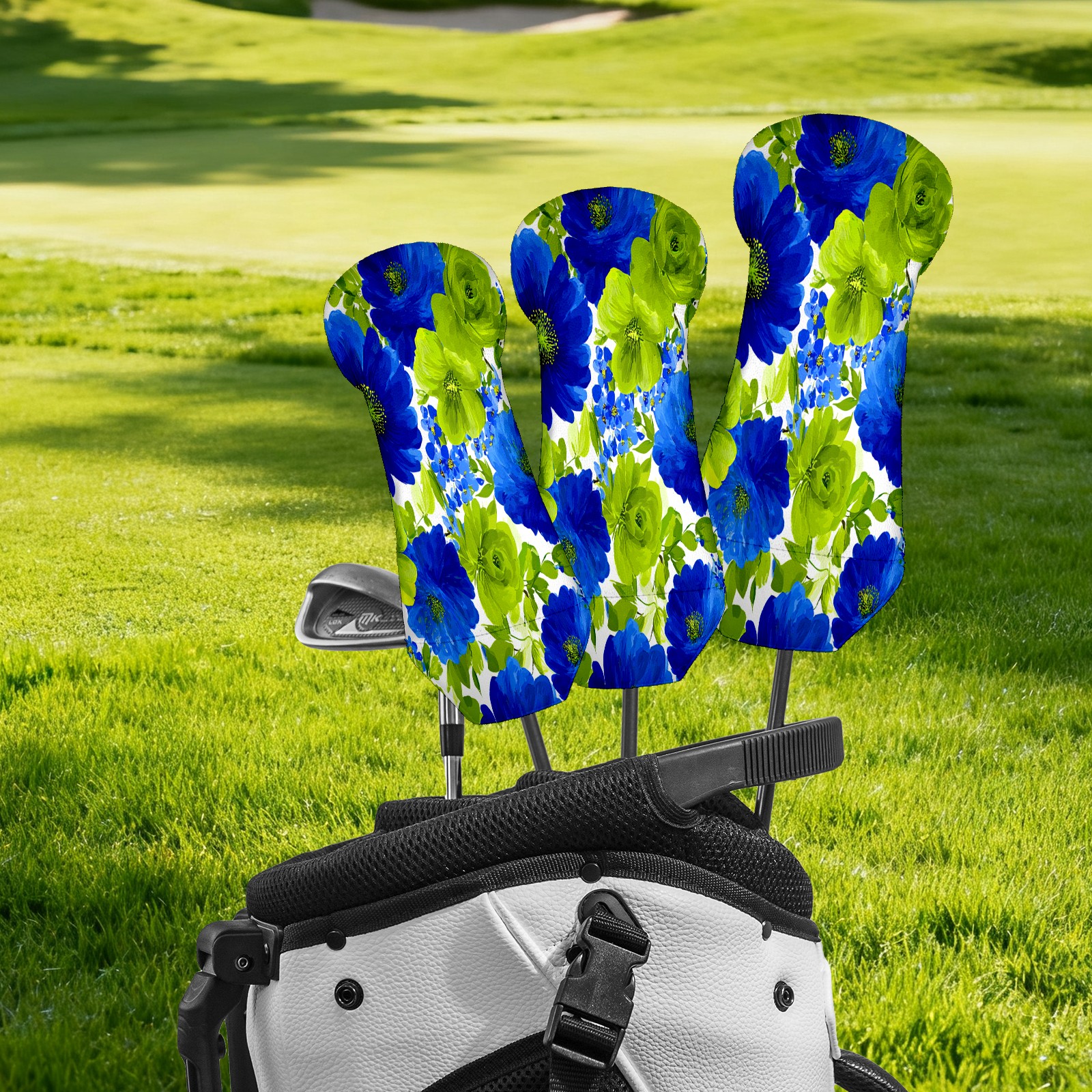 Counullo Golf Club Covers Blue Green Flowers - Driver/Fairway/Hybrid/3 Wood Headcover, Premium PU Leather Soft Velvet Lining, Waterproof Golf Gift for Enthusiasts