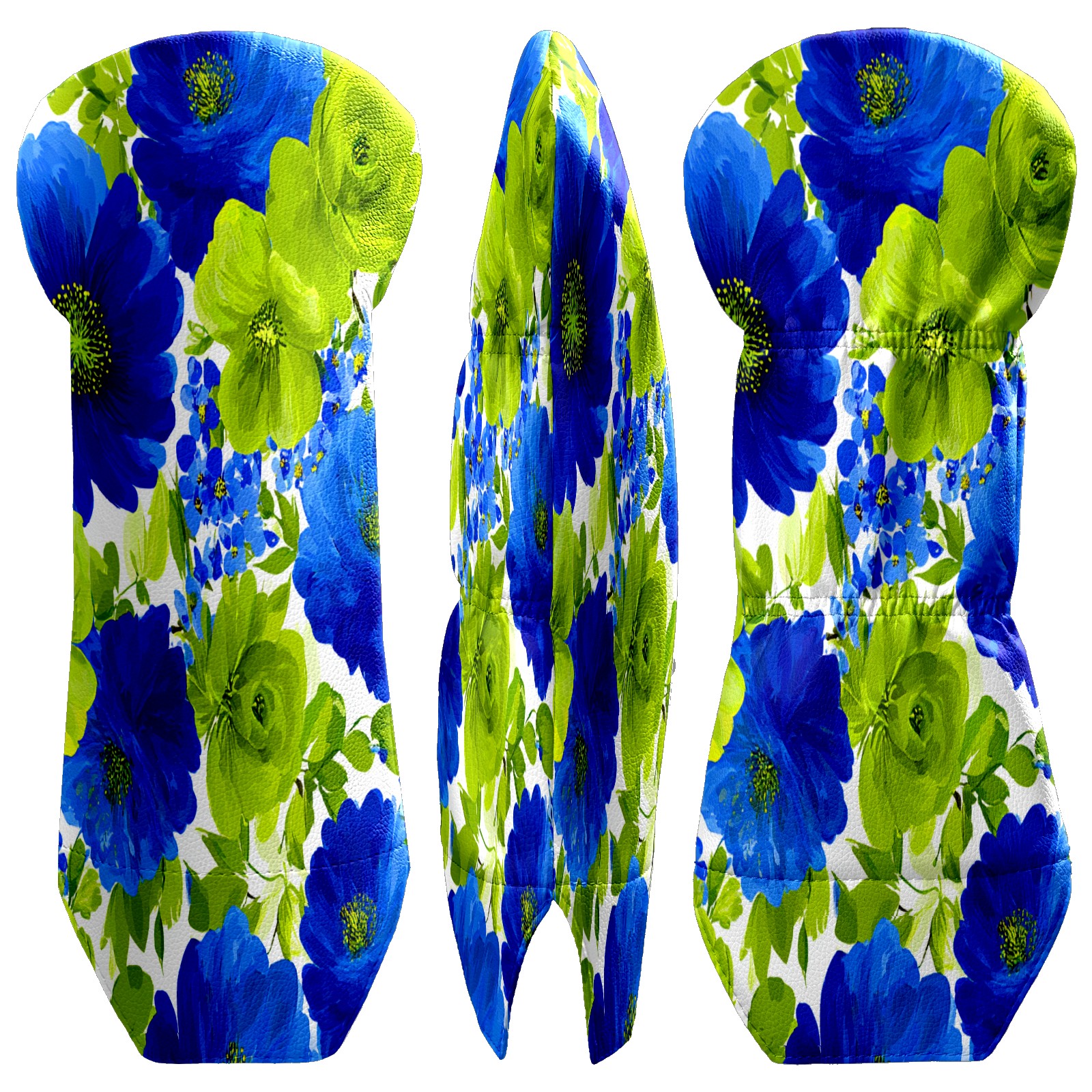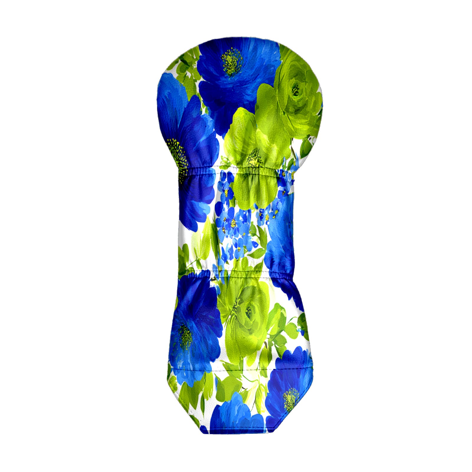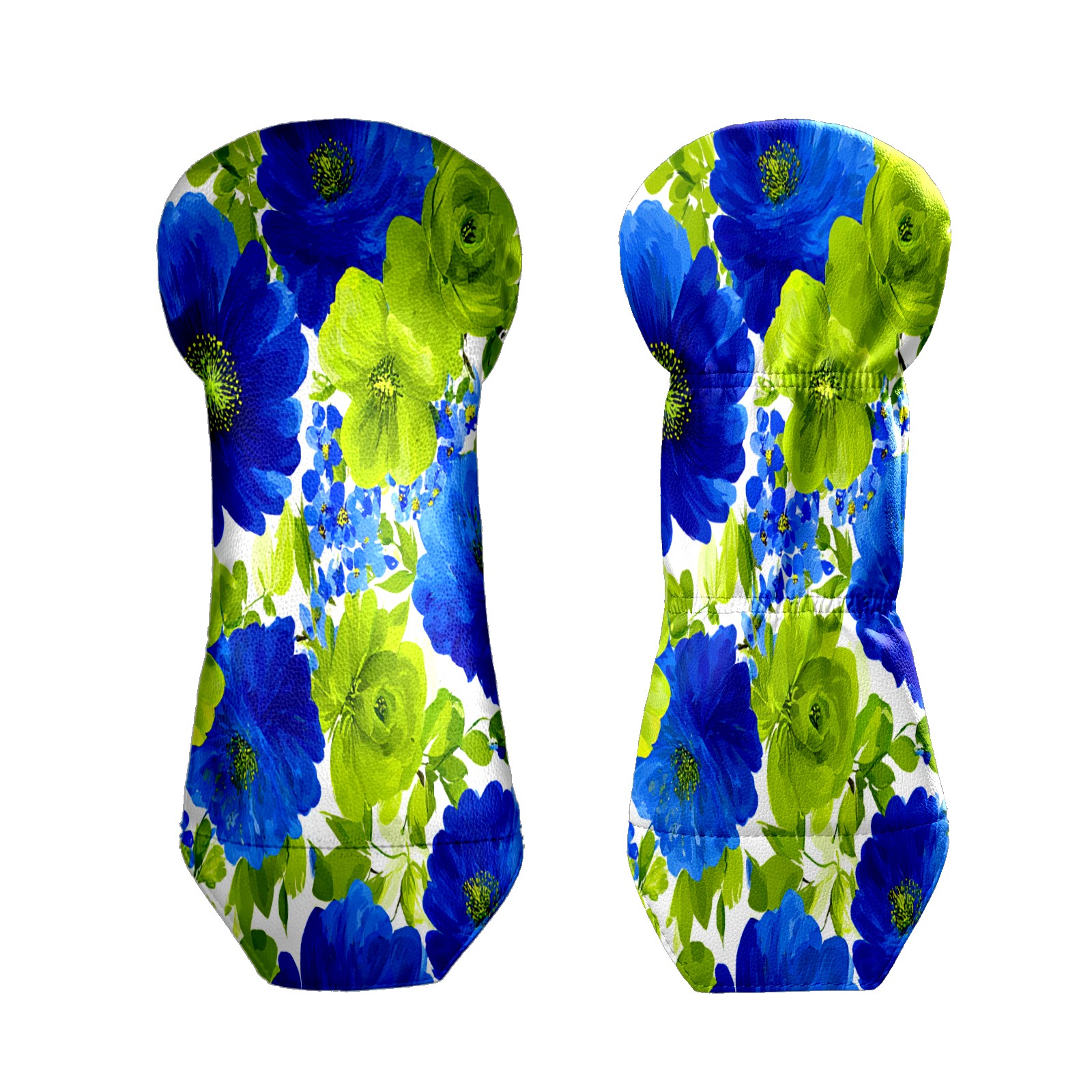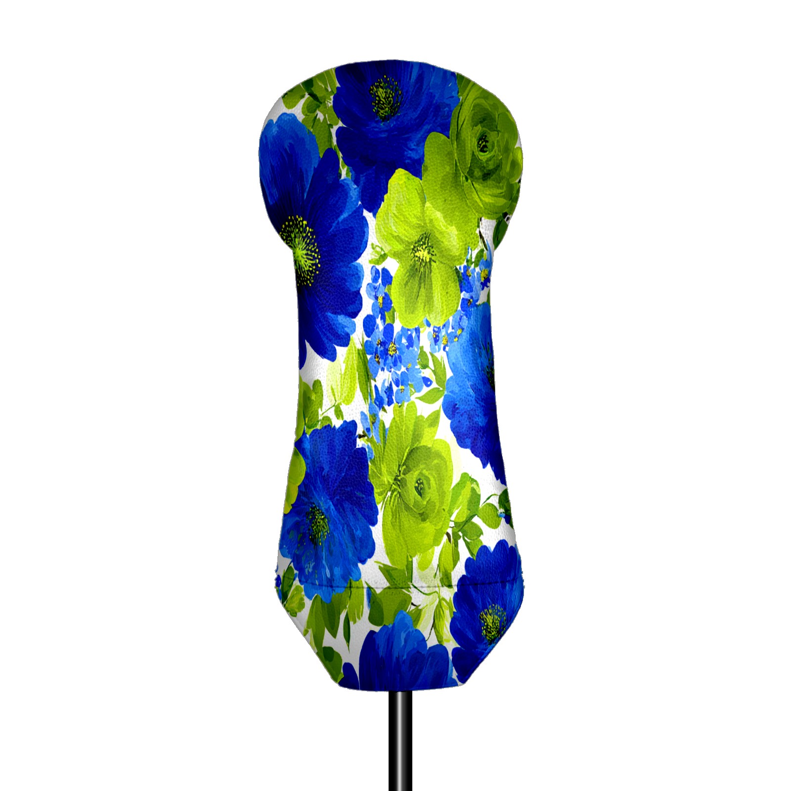 Counullo Golf Club Covers Blue Green Flowers - Driver/Fairway/Hybrid/3 Wood Headcover, Premium PU Leather Soft Velvet Lining, Waterproof Golf Gift for Enthusiasts