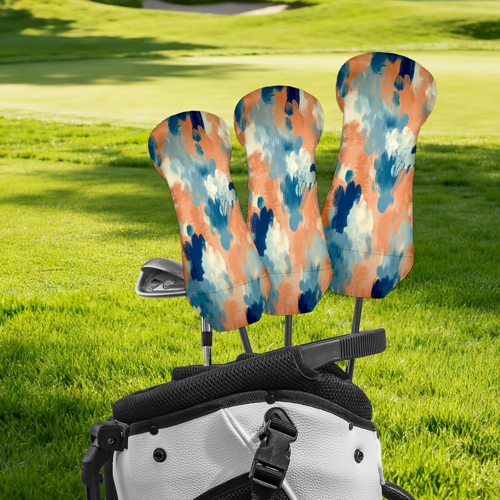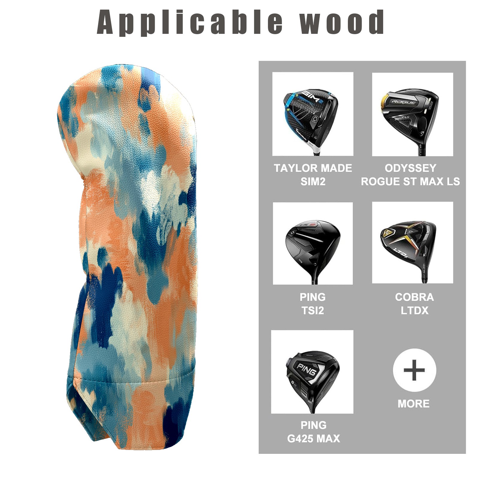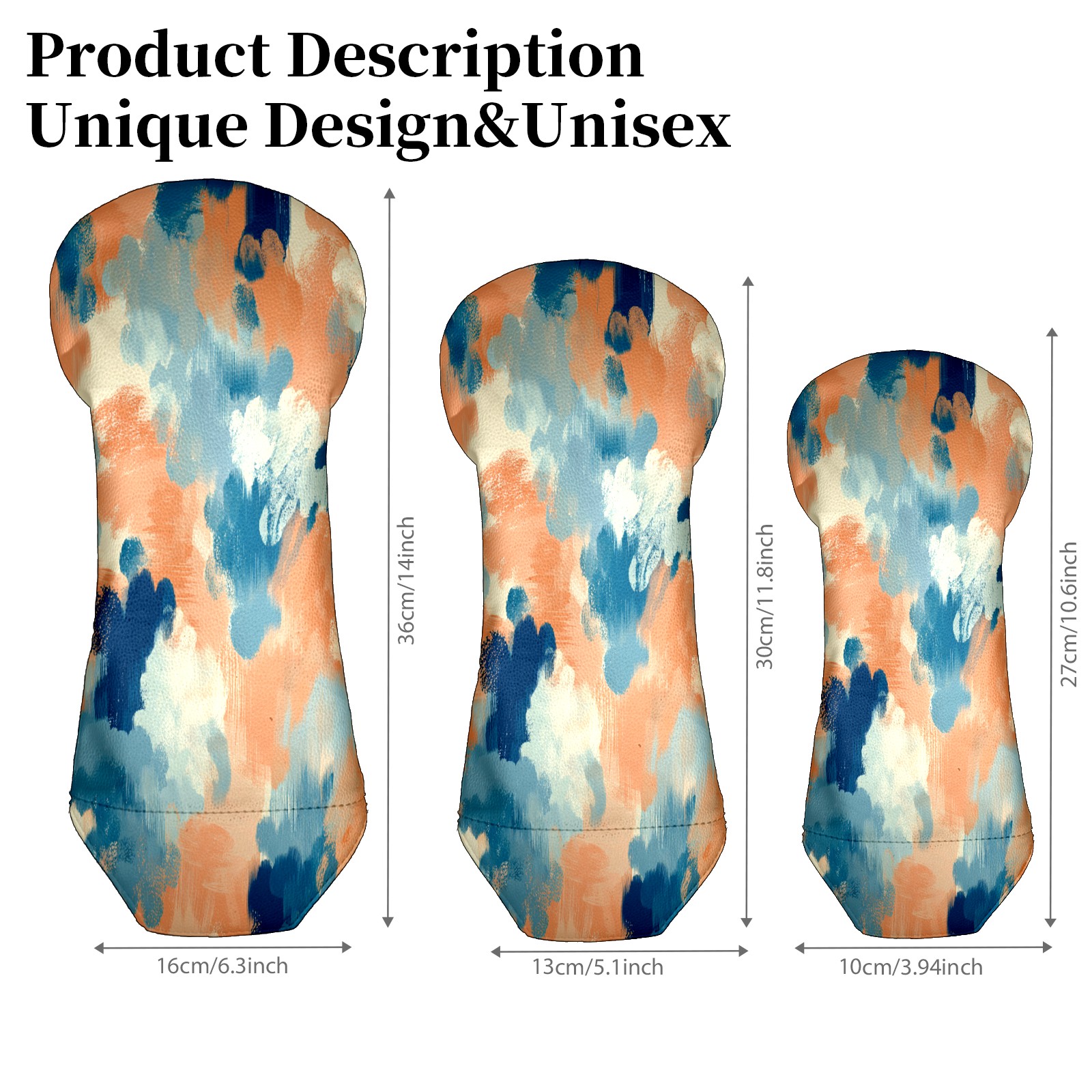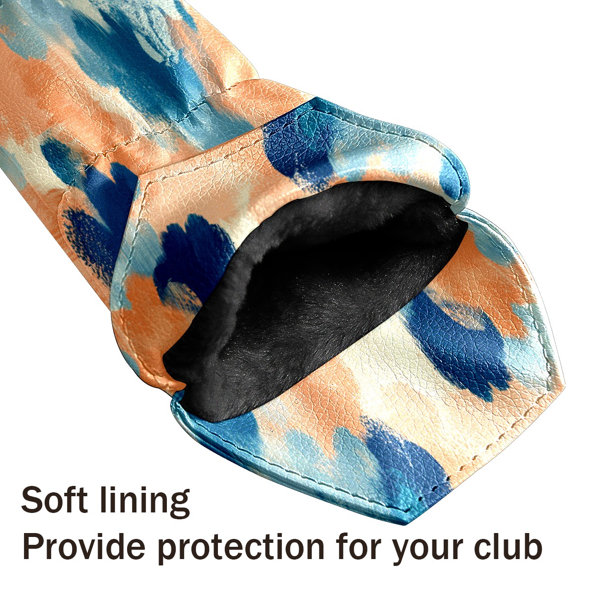 Counullo Golf Club Covers Orange Blue Watercolor - Driver/Fairway/Hybrid/3 Wood Headcover, Premium PU Leather Soft Velvet Lining, Waterproof Golf Gift for Enthusiasts