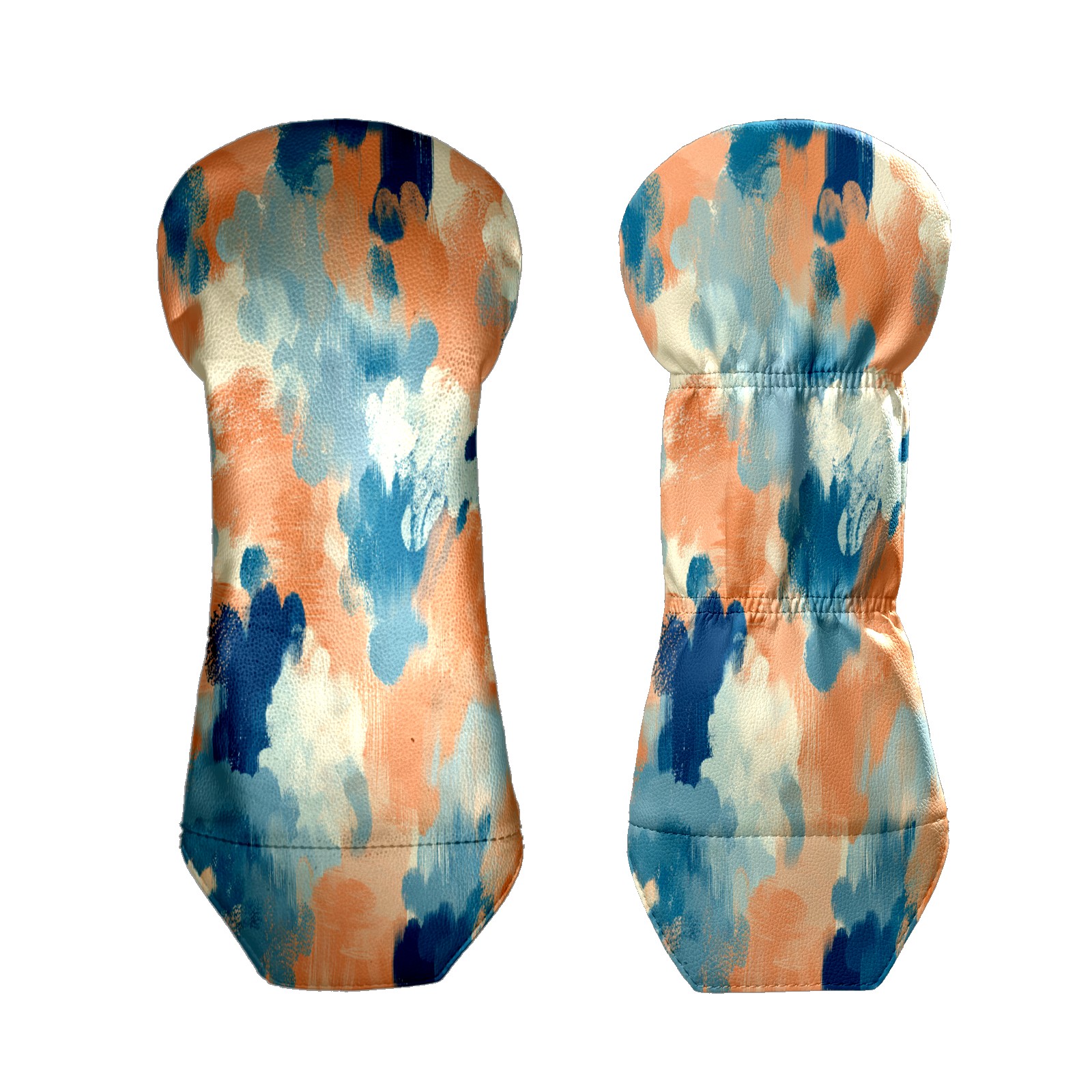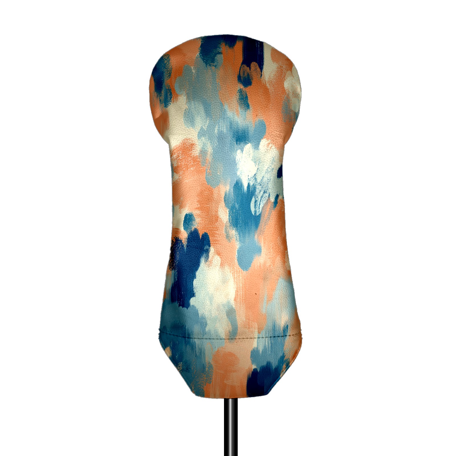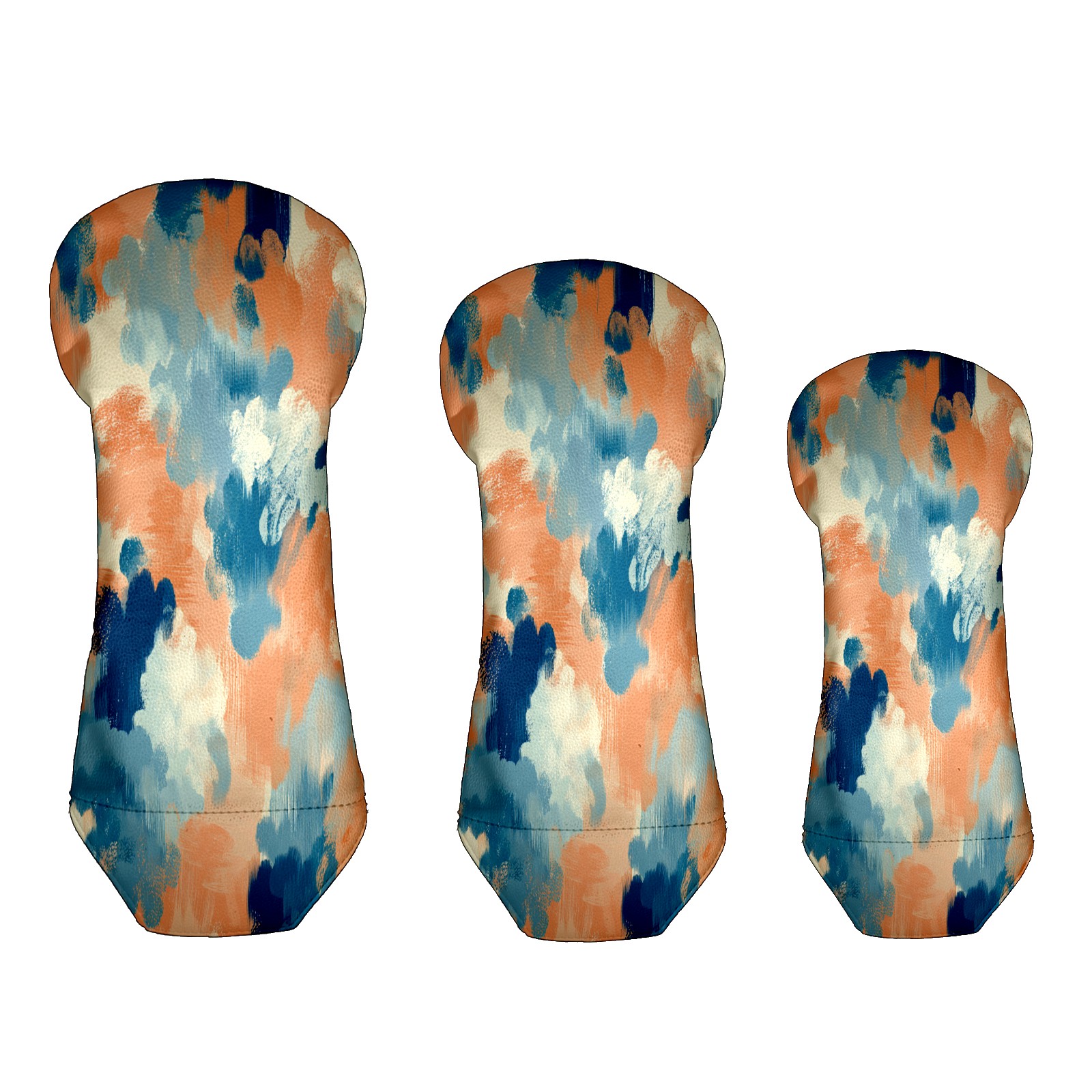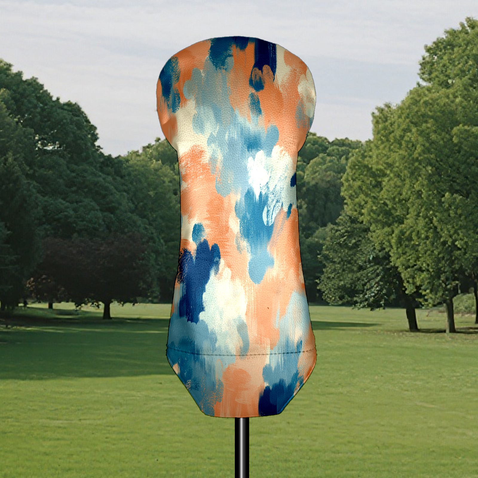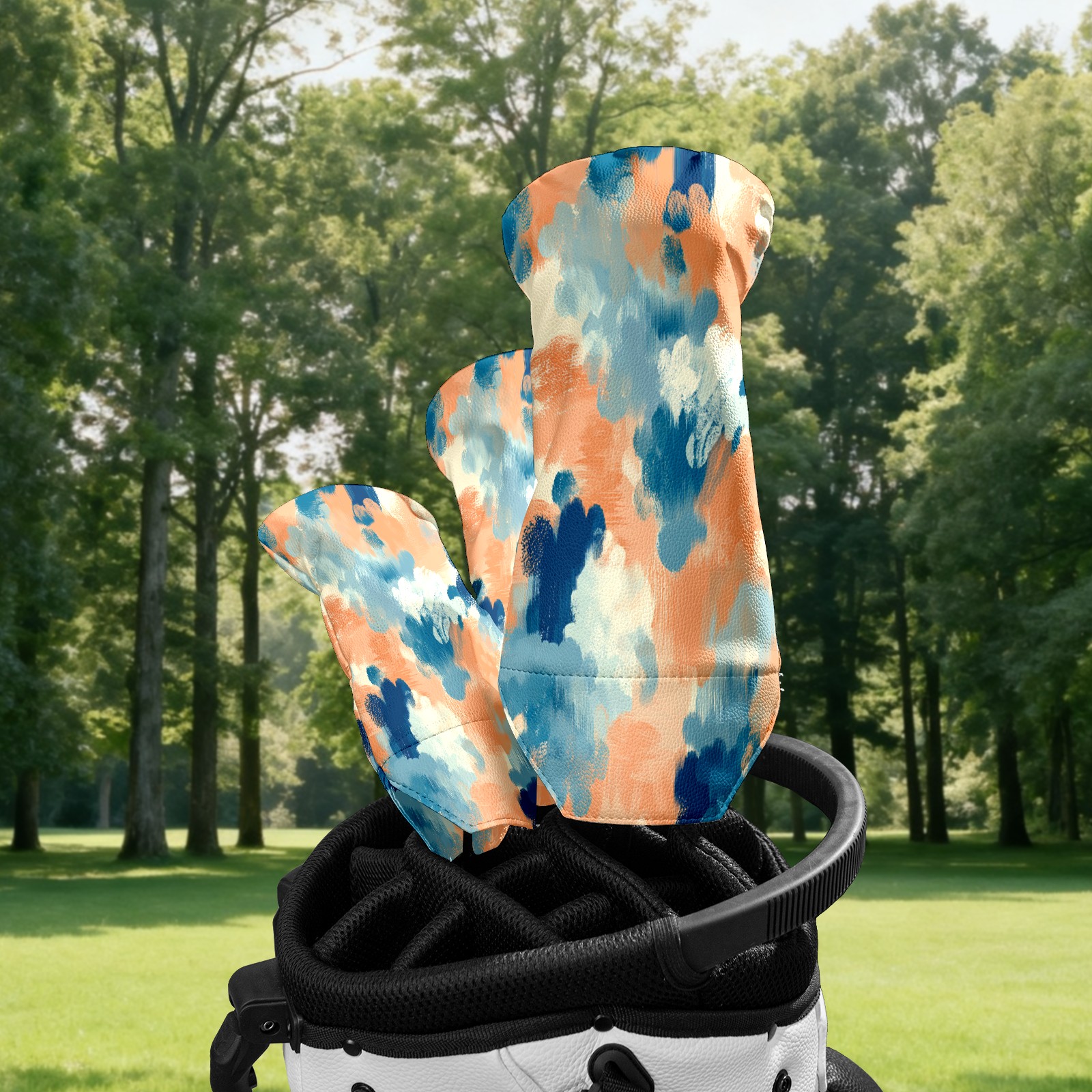 Counullo Golf Club Covers Orange Blue Watercolor - Driver/Fairway/Hybrid/3 Wood Headcover, Premium PU Leather Soft Velvet Lining, Waterproof Golf Gift for Enthusiasts