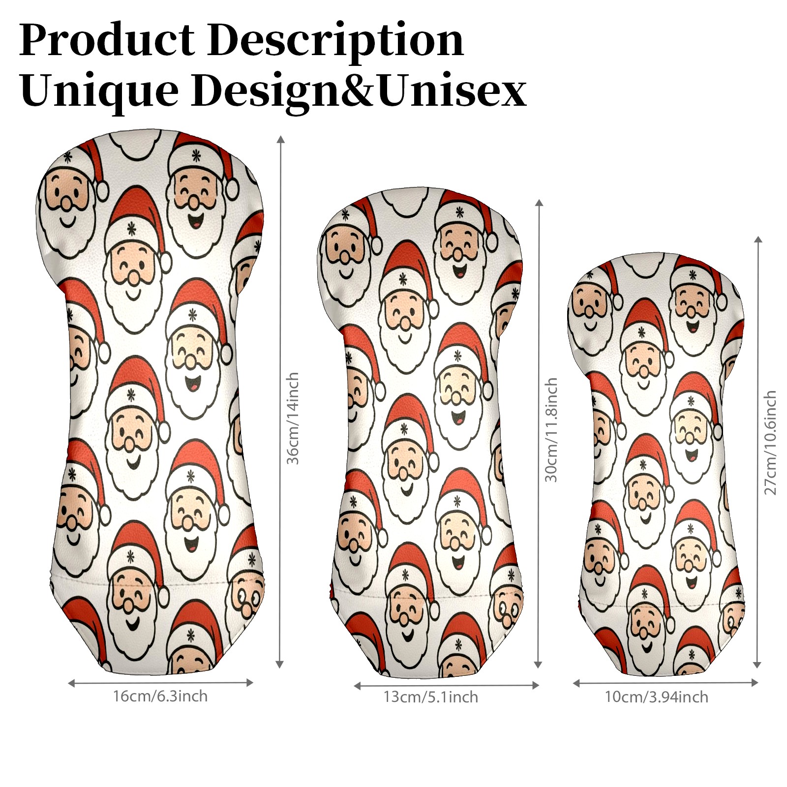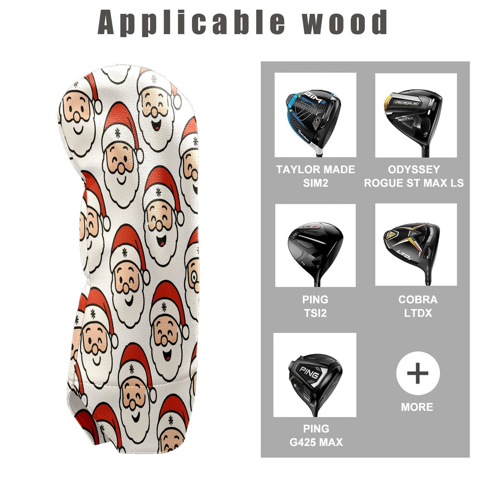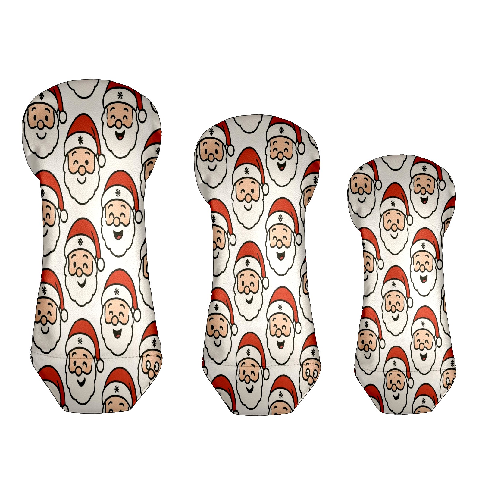 Counullo Golf Club Covers Beige Santa Faces - Driver/Fairway/Hybrid/3 Wood Headcover, Premium PU Leather Soft Velvet Lining, Waterproof Golf Gift for Enthusiasts