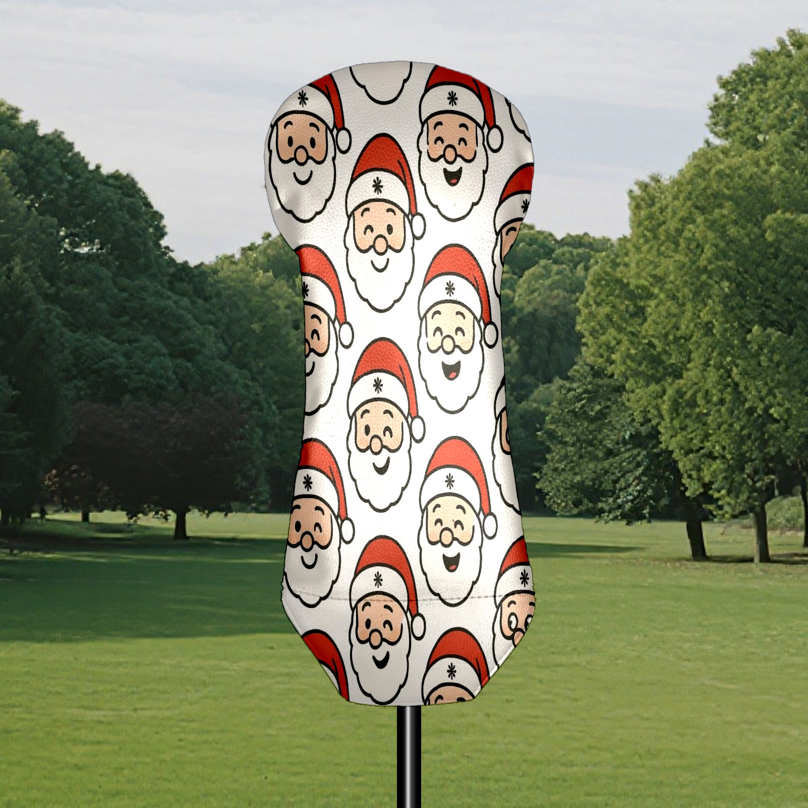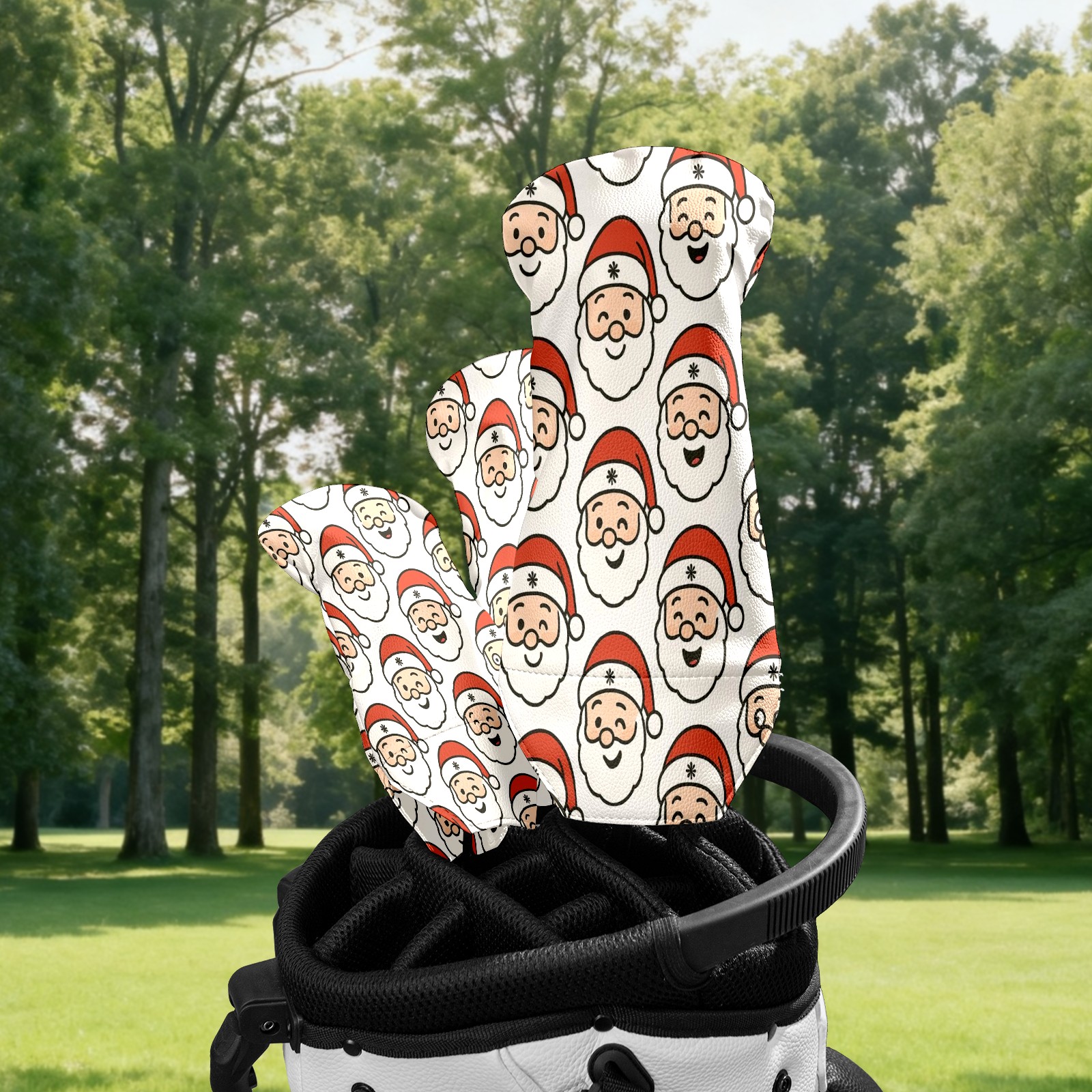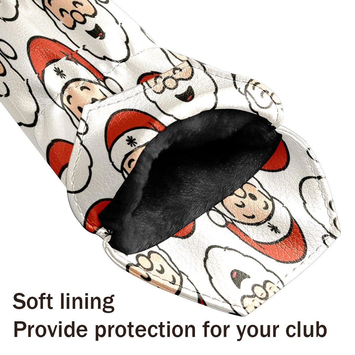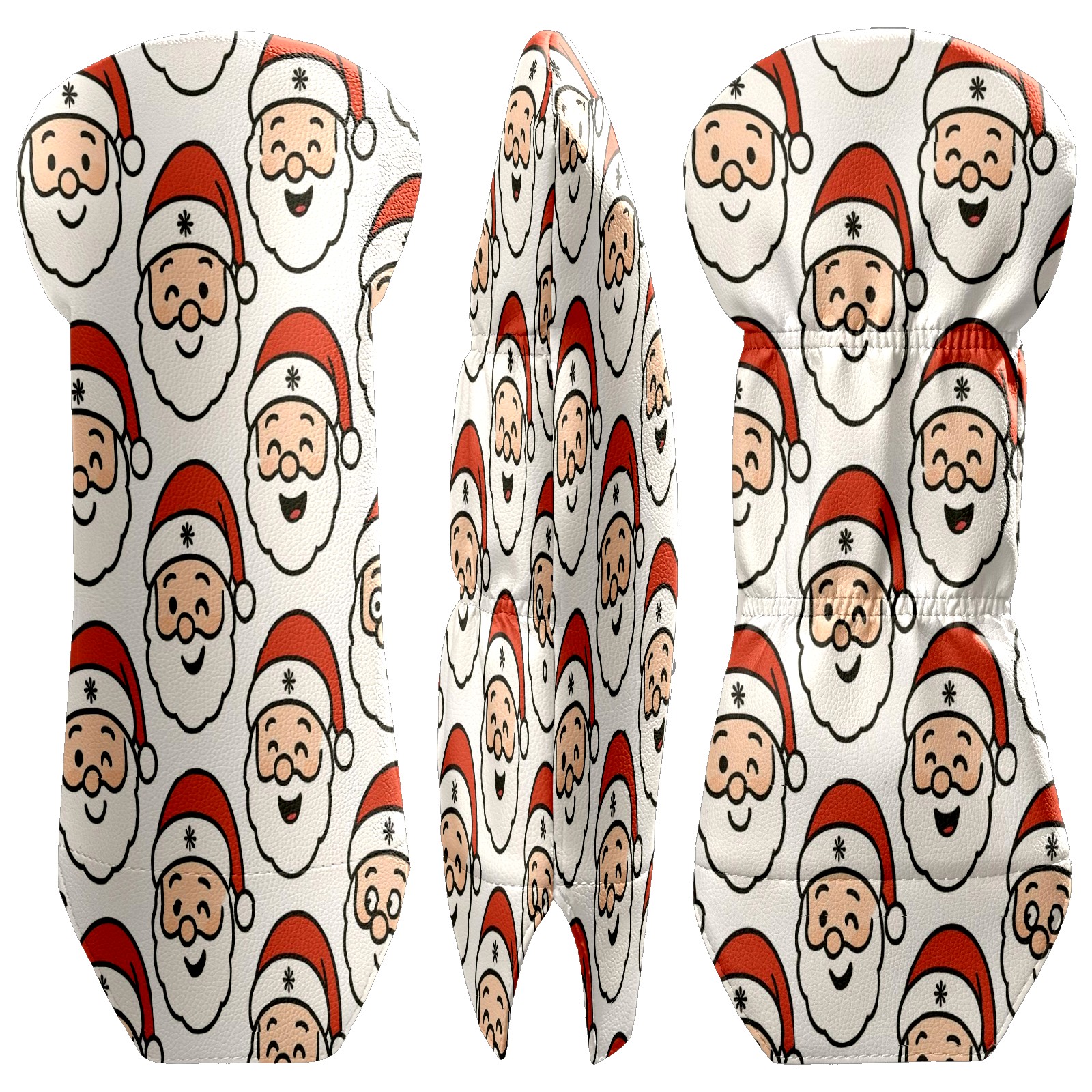 Counullo Golf Club Covers Beige Santa Faces - Driver/Fairway/Hybrid/3 Wood Headcover, Premium PU Leather Soft Velvet Lining, Waterproof Golf Gift for Enthusiasts