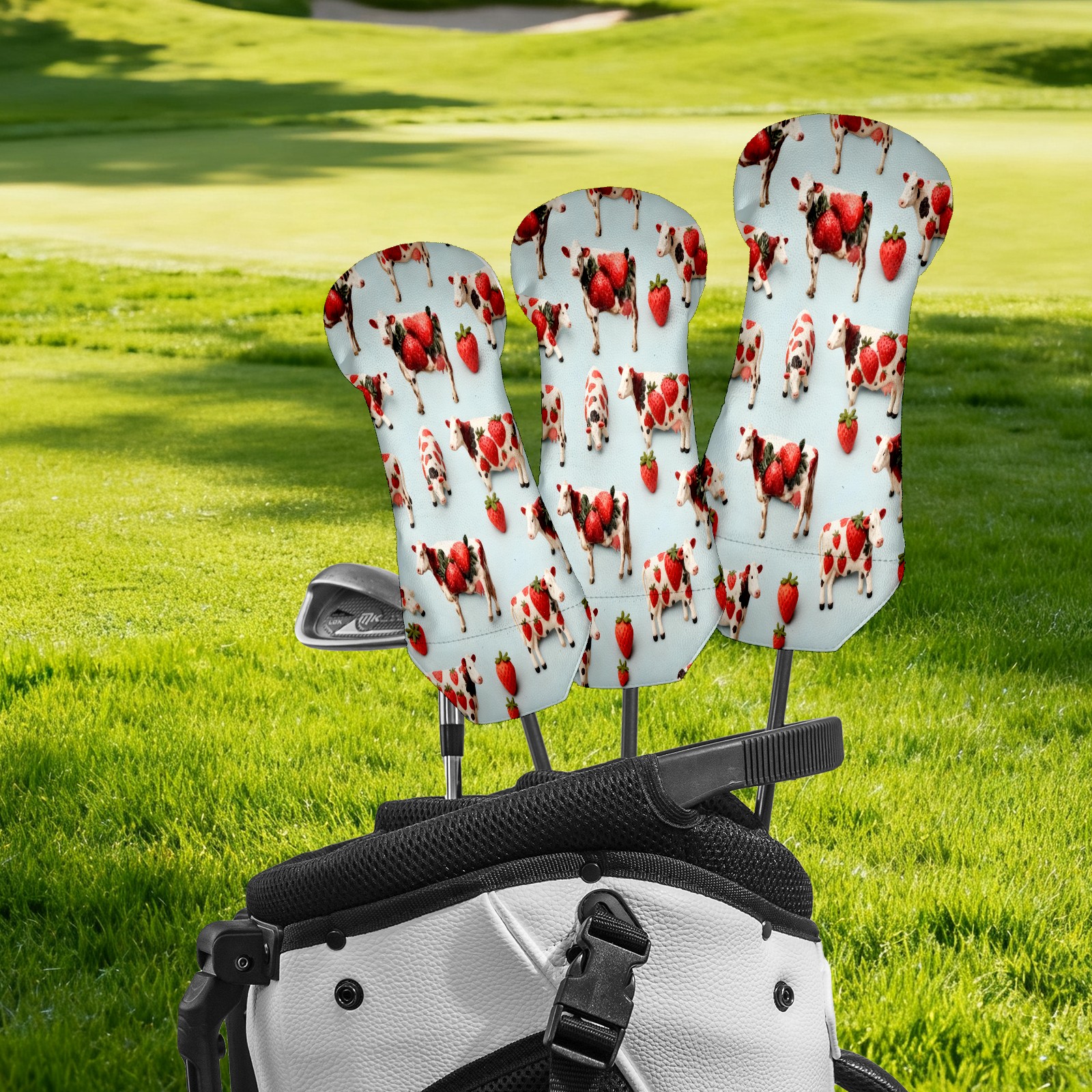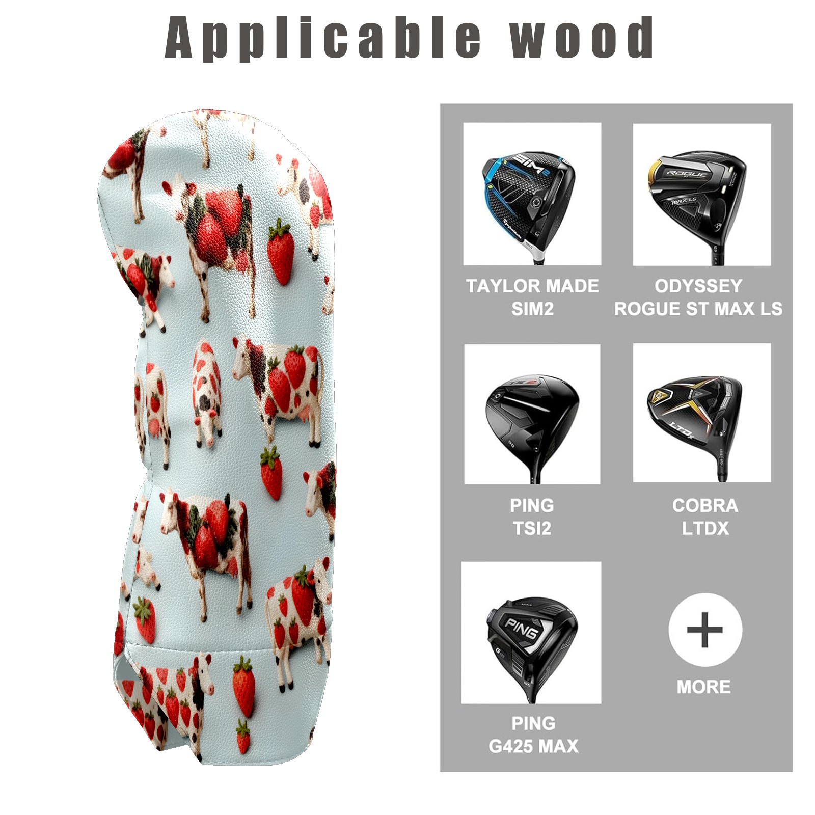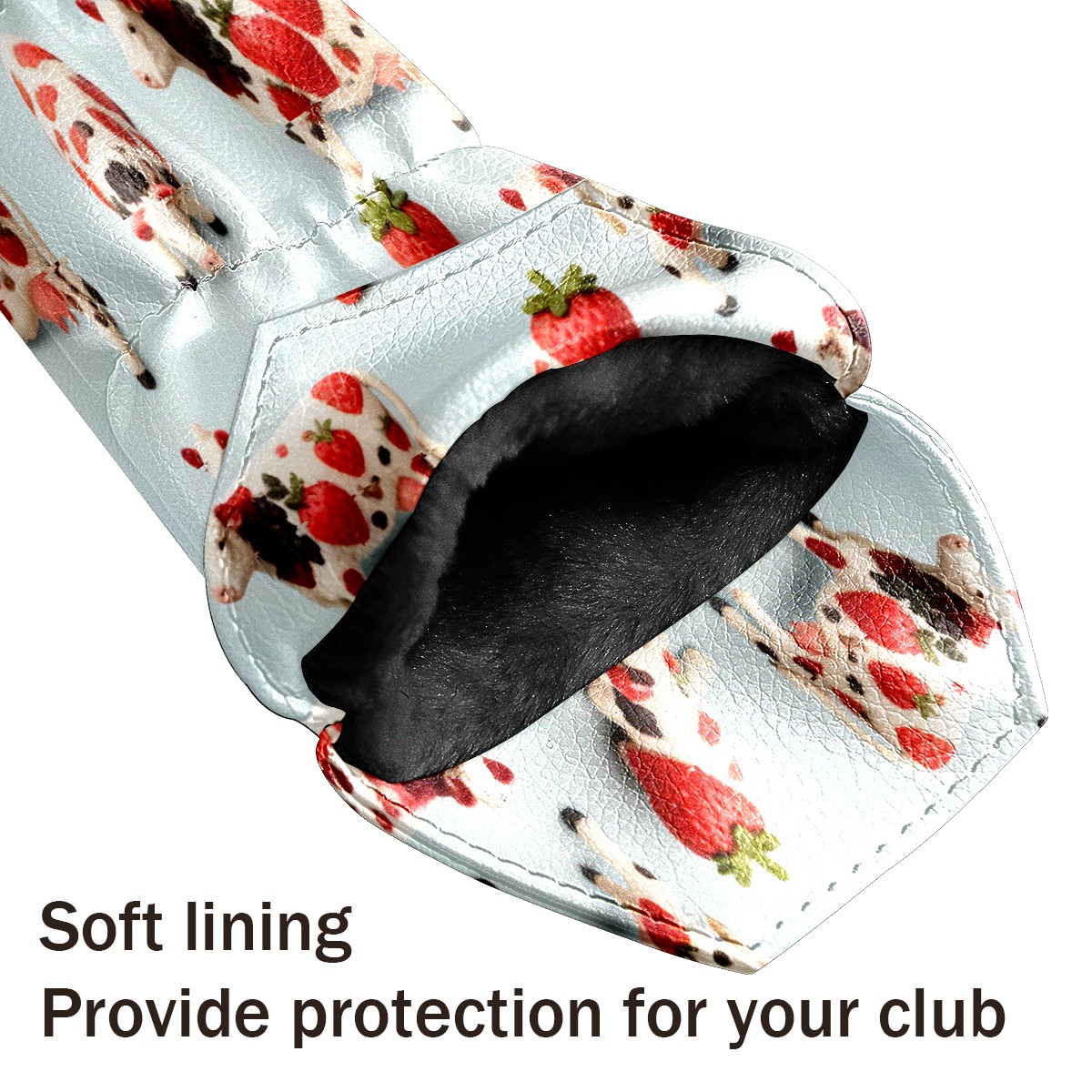 Counullo Golf Club Covers Blue Cows - Driver/Fairway/Hybrid/3 Wood Headcover, Premium PU Leather Soft Velvet Lining, Waterproof Golf Gift for Enthusiasts
