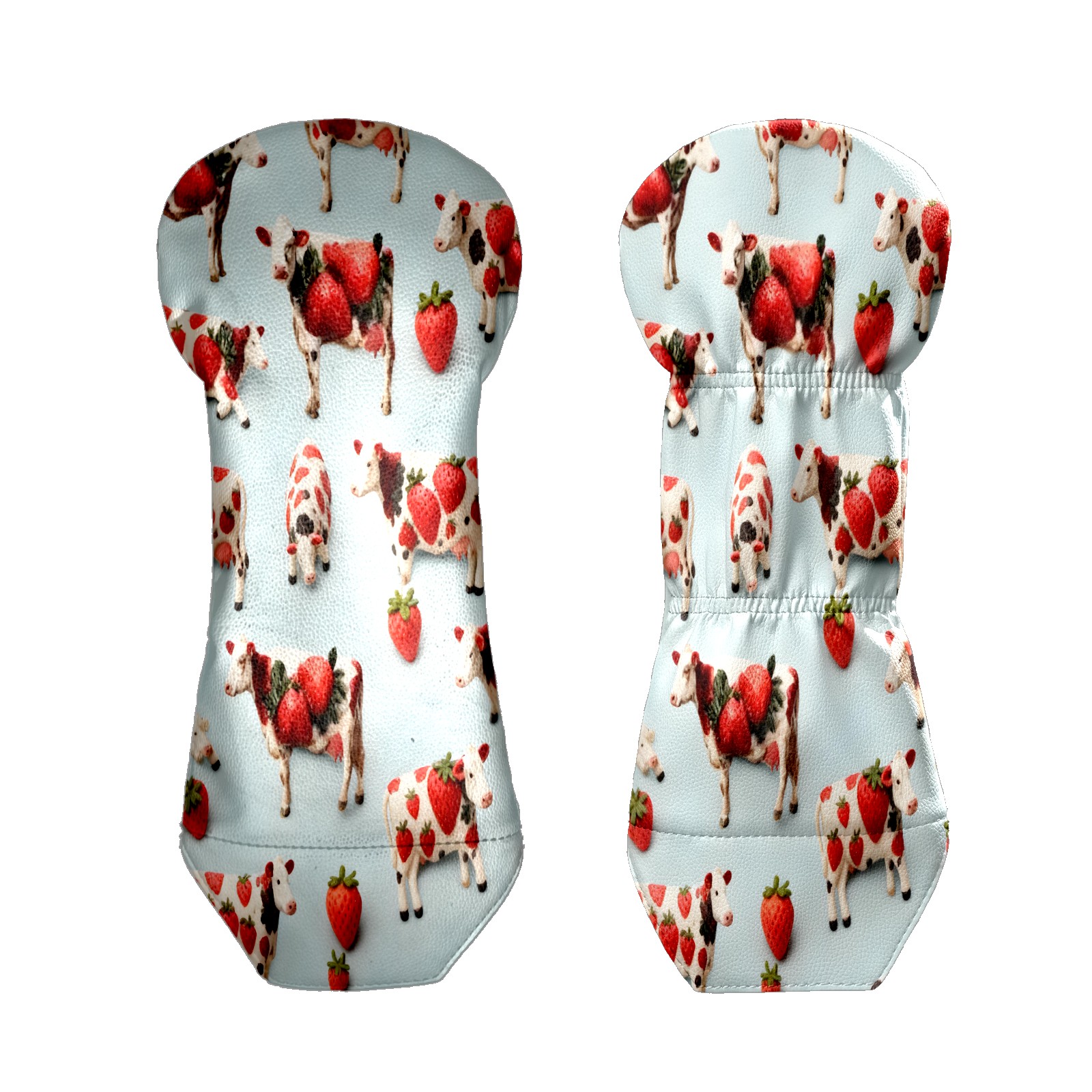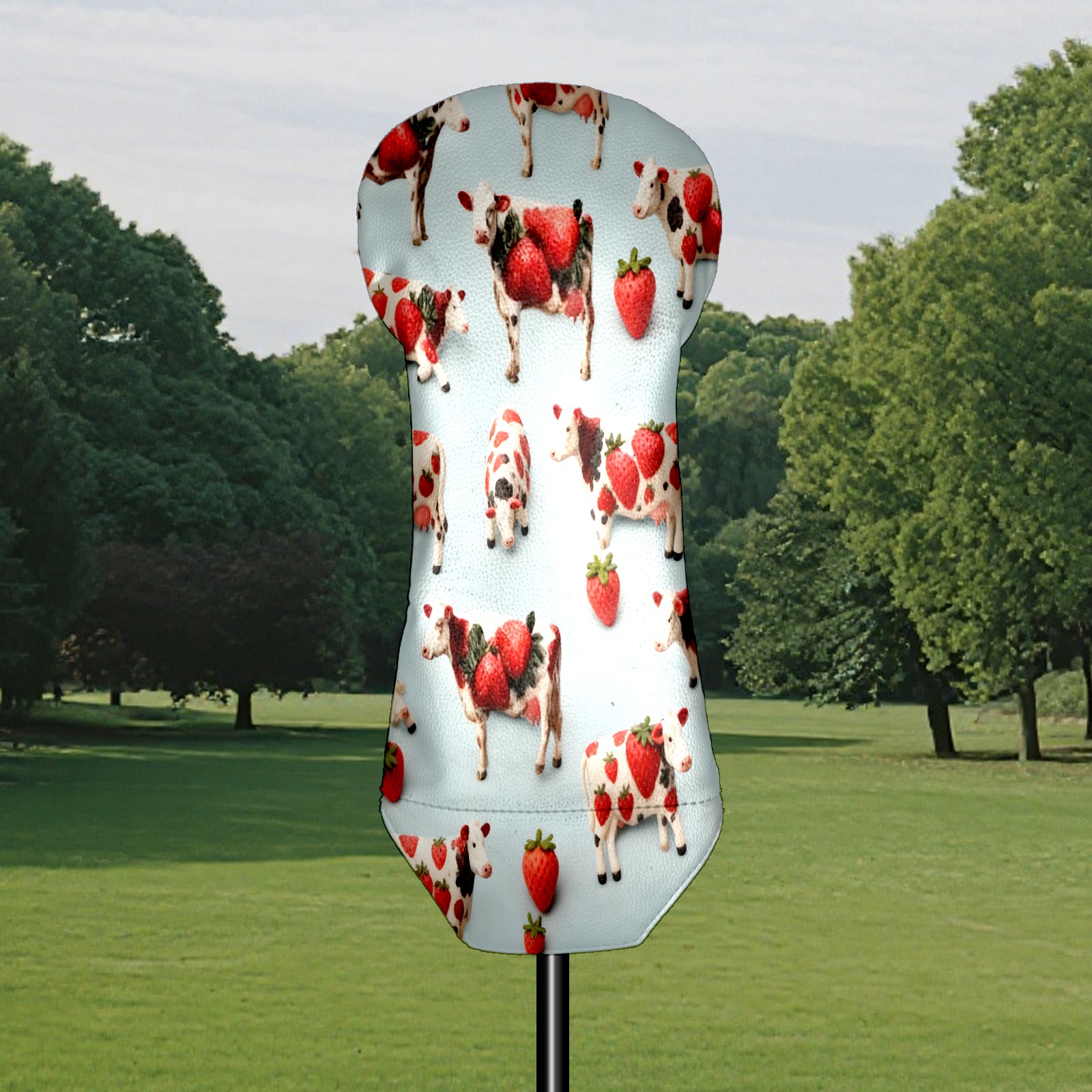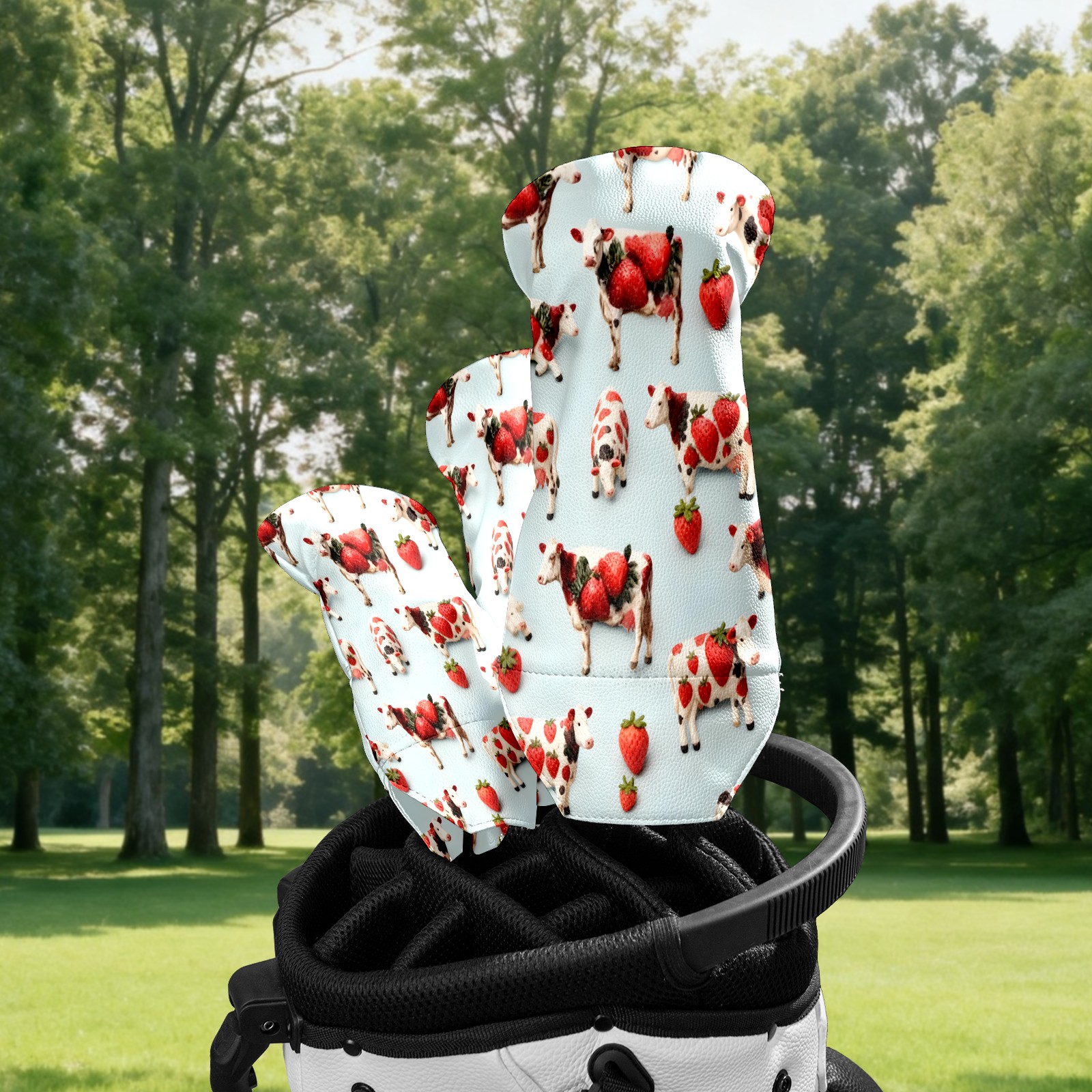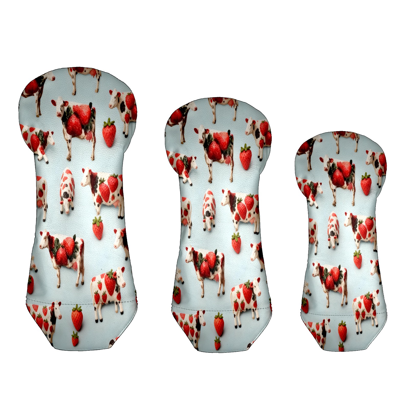 Counullo Golf Club Covers Blue Cows - Driver/Fairway/Hybrid/3 Wood Headcover, Premium PU Leather Soft Velvet Lining, Waterproof Golf Gift for Enthusiasts
