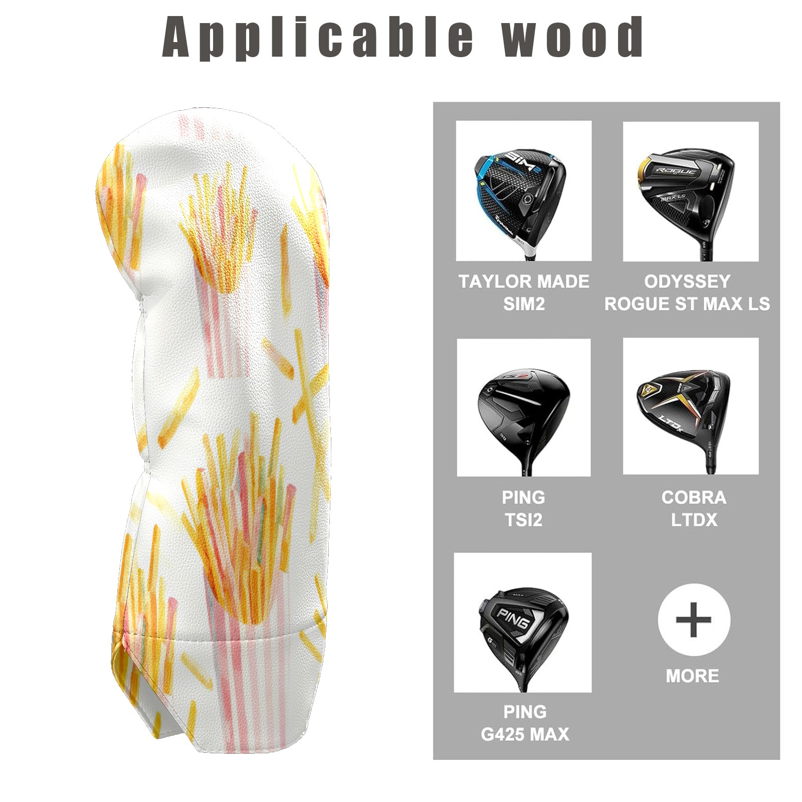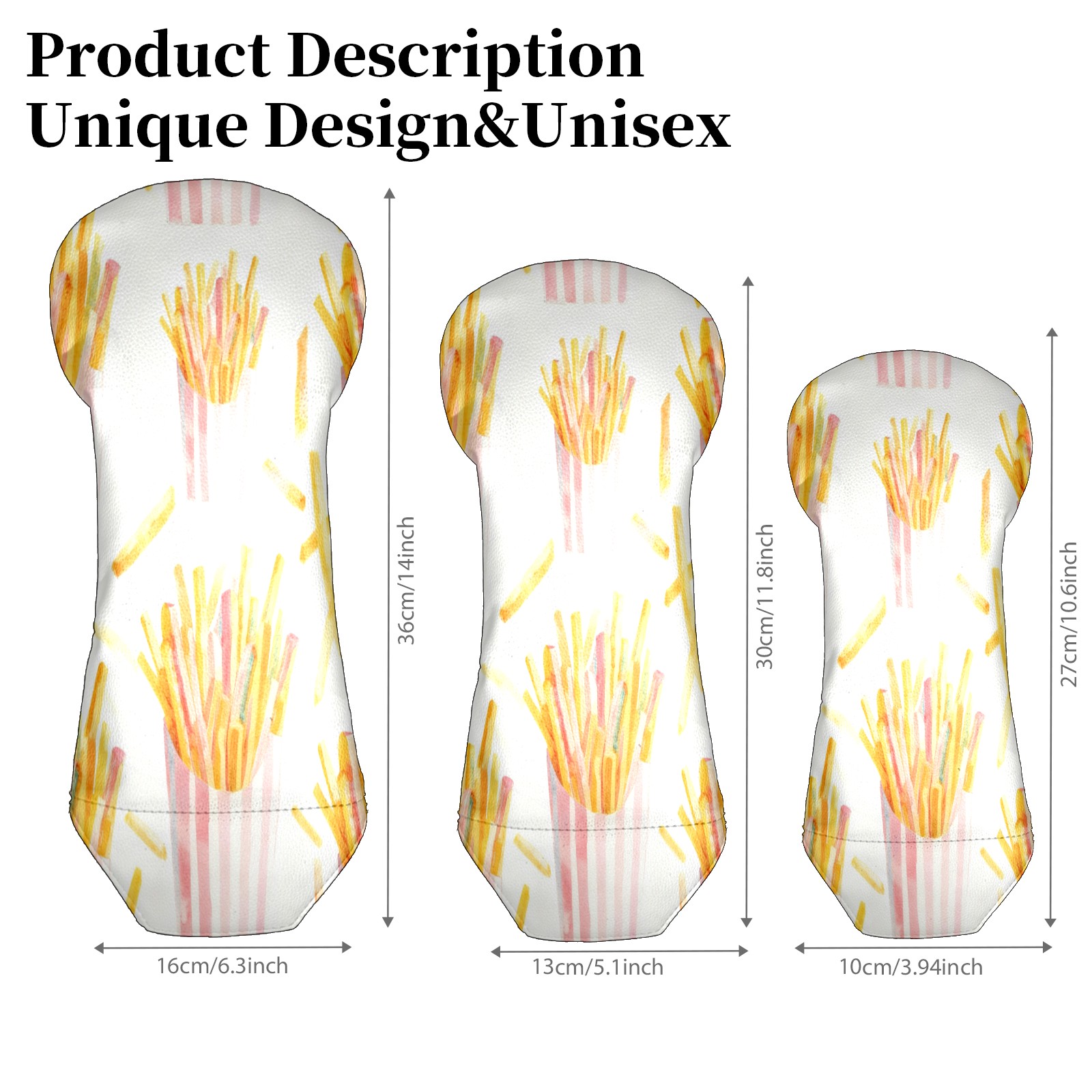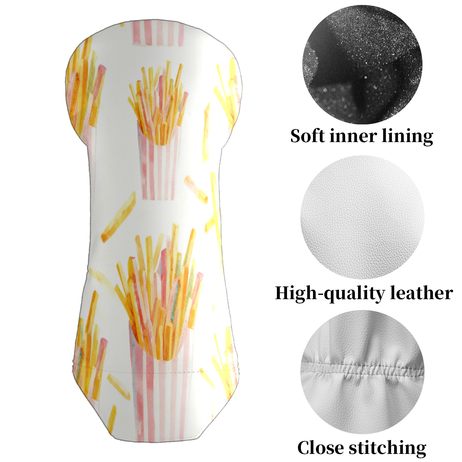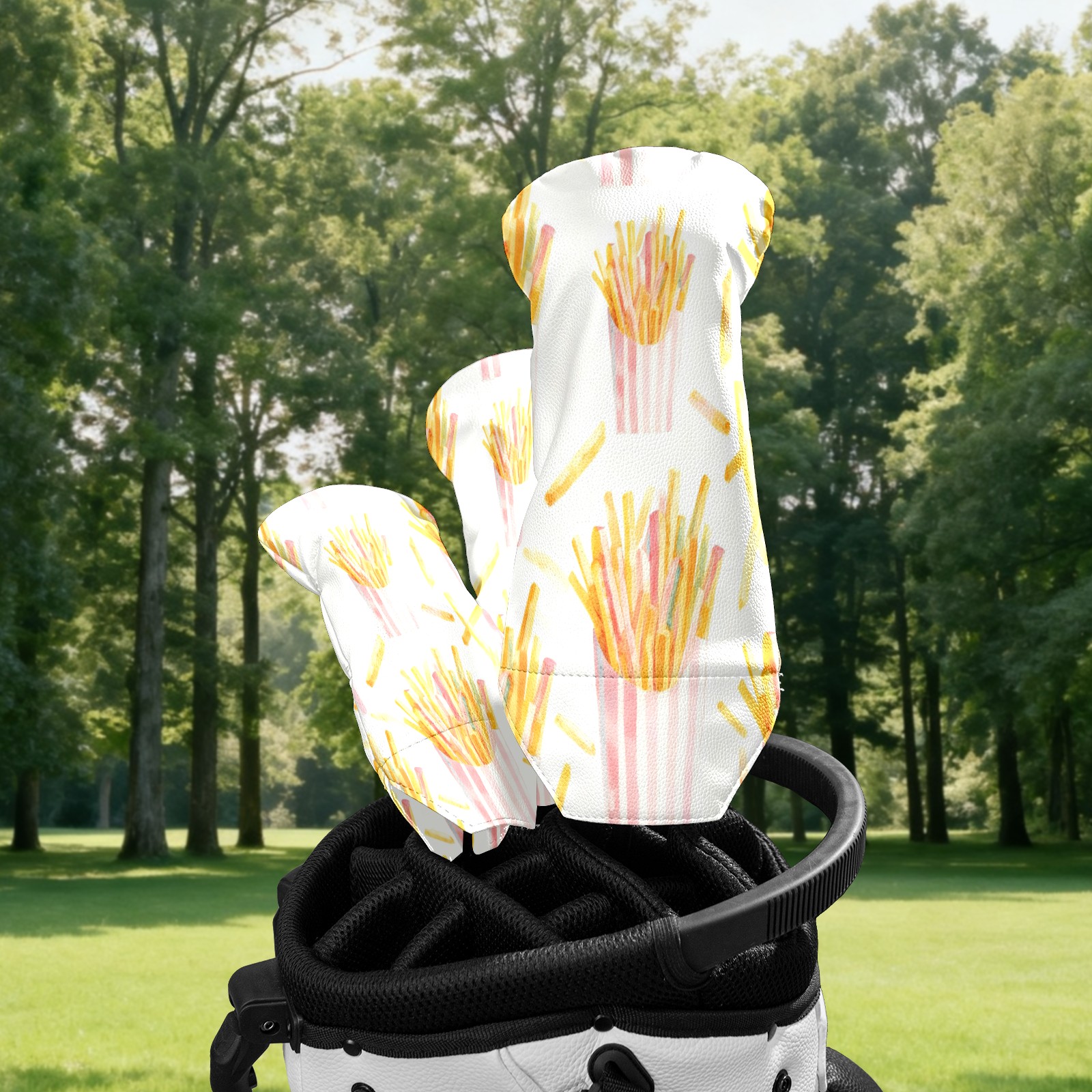 Counullo Golf Club Covers White Fries - Driver/Fairway/Hybrid/3 Wood Headcover, Premium PU Leather Soft Velvet Lining, Waterproof Golf Gift for Enthusiasts