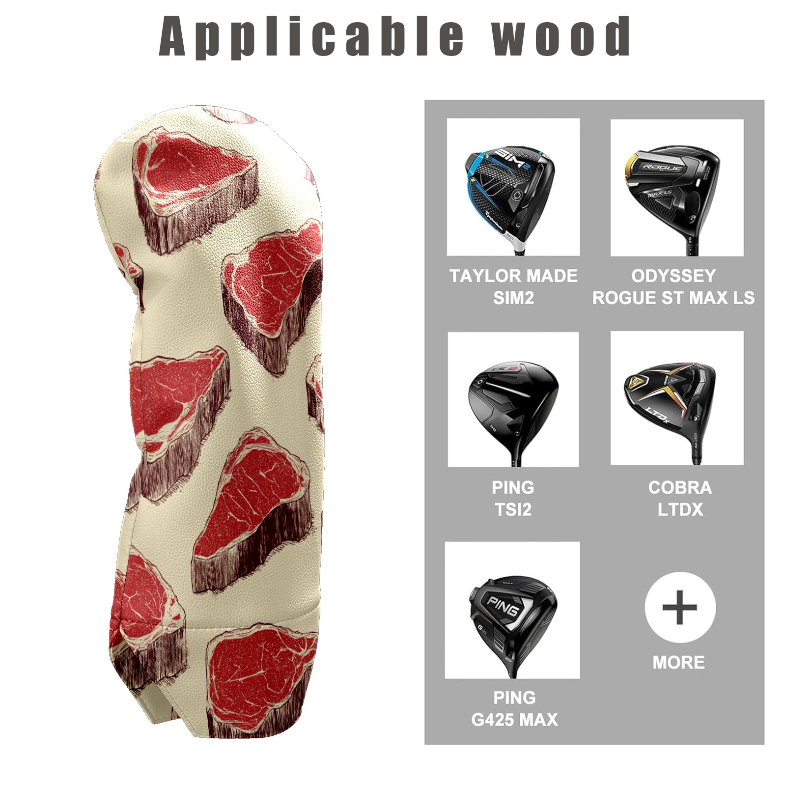 Counullo Golf Club Covers Beige Meat - Driver/Fairway/Hybrid/3 Wood Headcover, Premium PU Leather Soft Velvet Lining, Waterproof Golf Gift for Enthusiasts