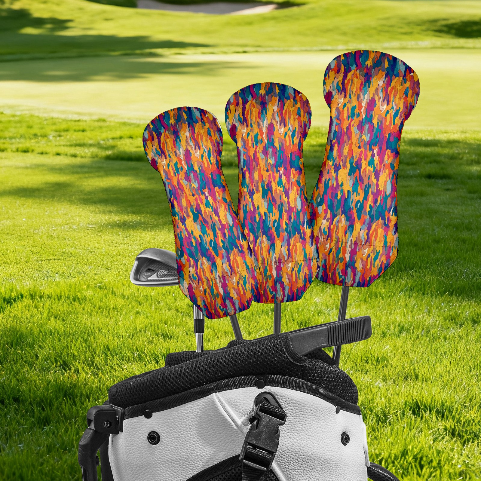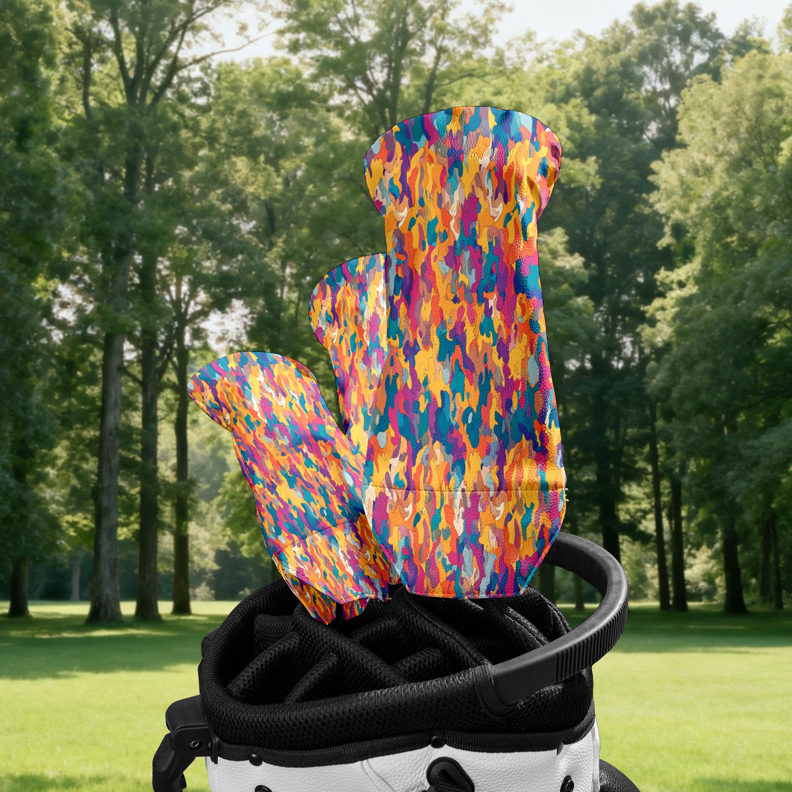 Counullo Golf Club Covers Multicolor Abstract - Driver/Fairway/Hybrid/3 Wood Headcover, Premium PU Leather Soft Velvet Lining, Waterproof Golf Gift for Enthusiasts