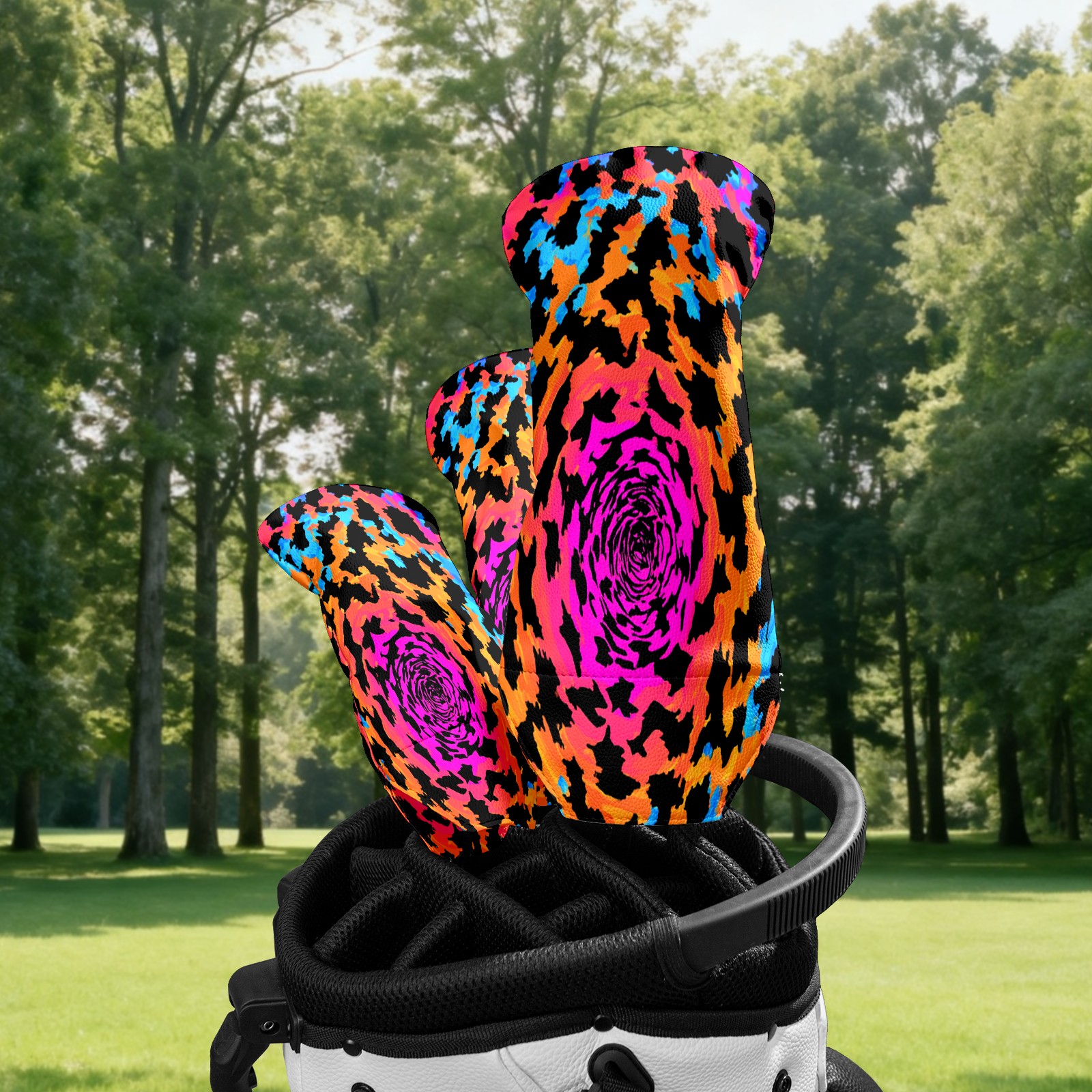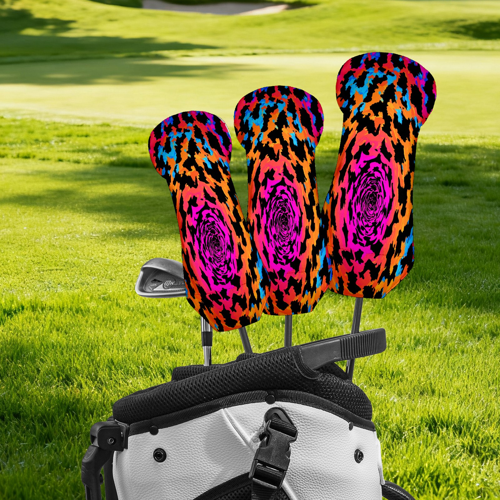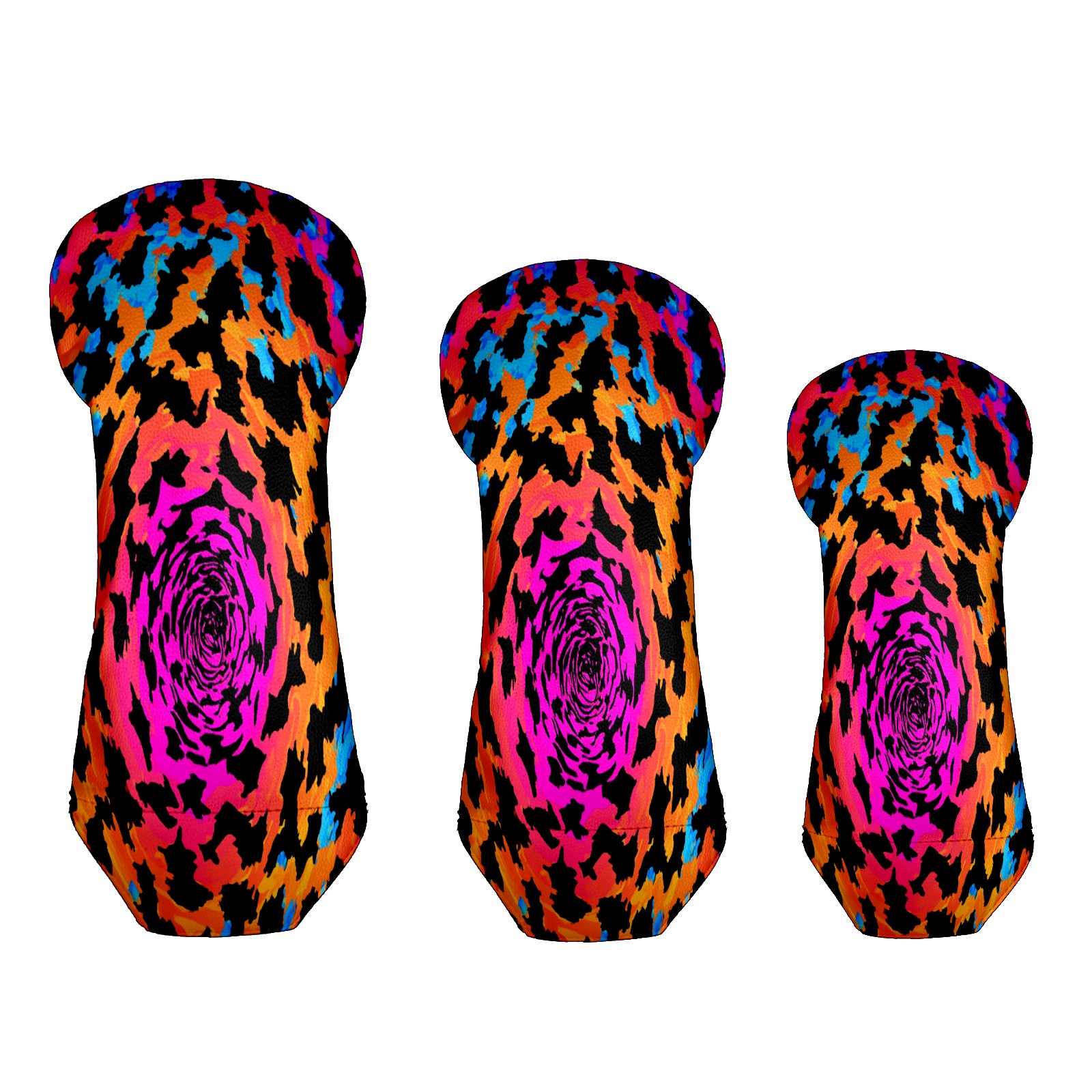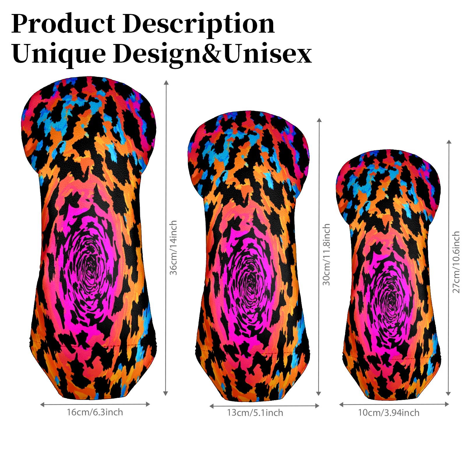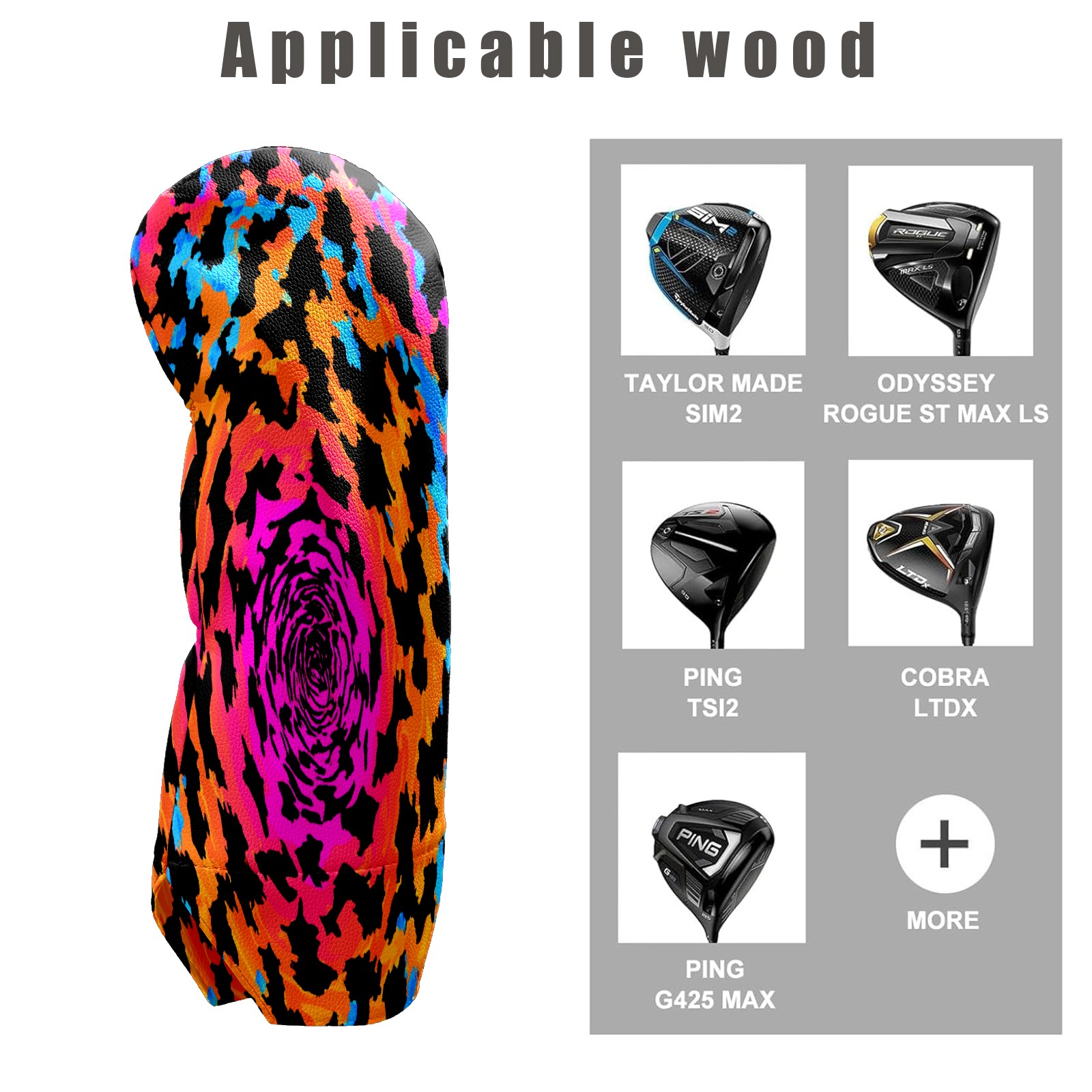 Counullo Golf Club Covers Multicolor Swirl - Driver/Fairway/Hybrid/3 Wood Headcover, Premium PU Leather Soft Velvet Lining, Waterproof Golf Gift for Enthusiasts