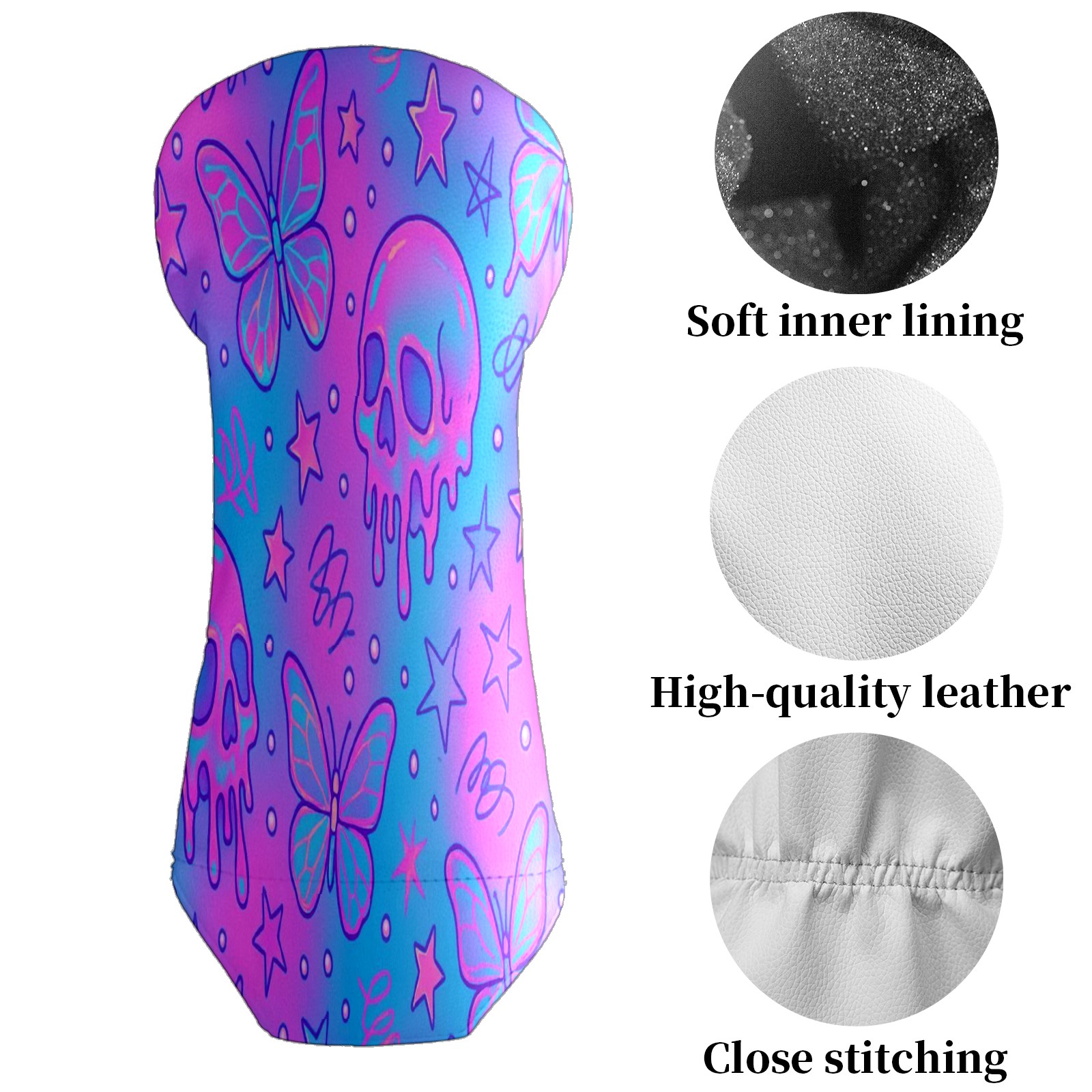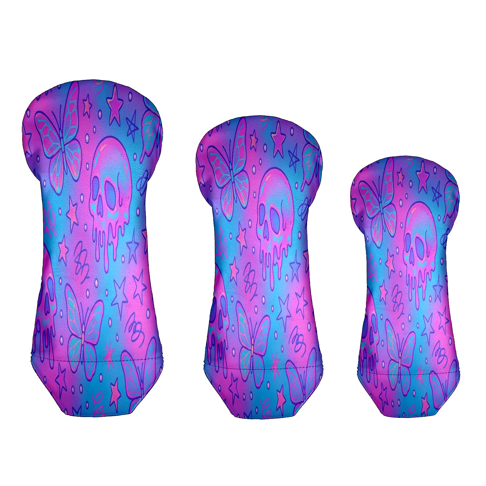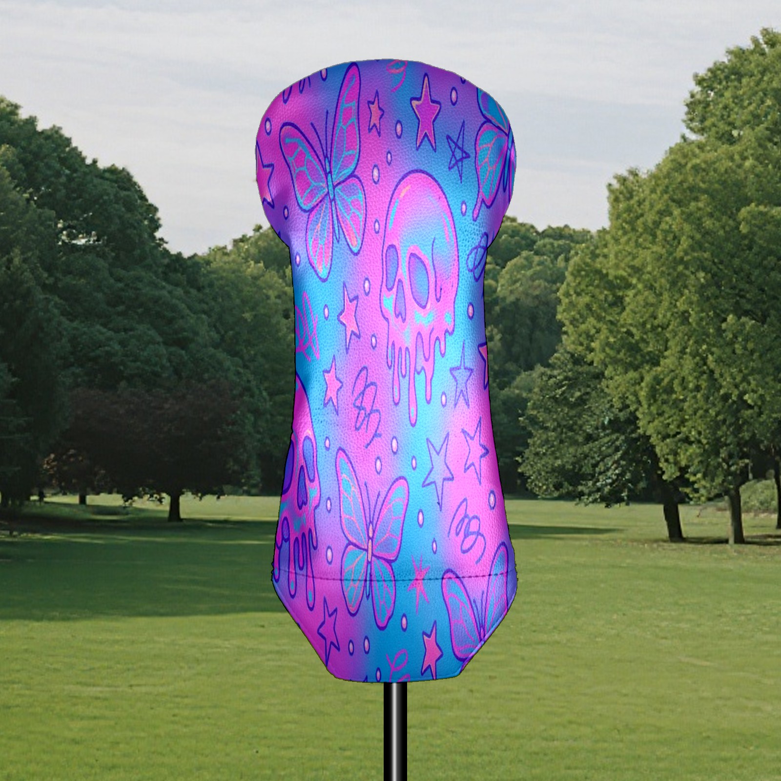 Counullo Golf Club Covers Pink Skulls Butterflies - Driver/Fairway/Hybrid/3 Wood Headcover, Premium PU Leather Soft Velvet Lining, Waterproof Golf Gift for Enthusiasts