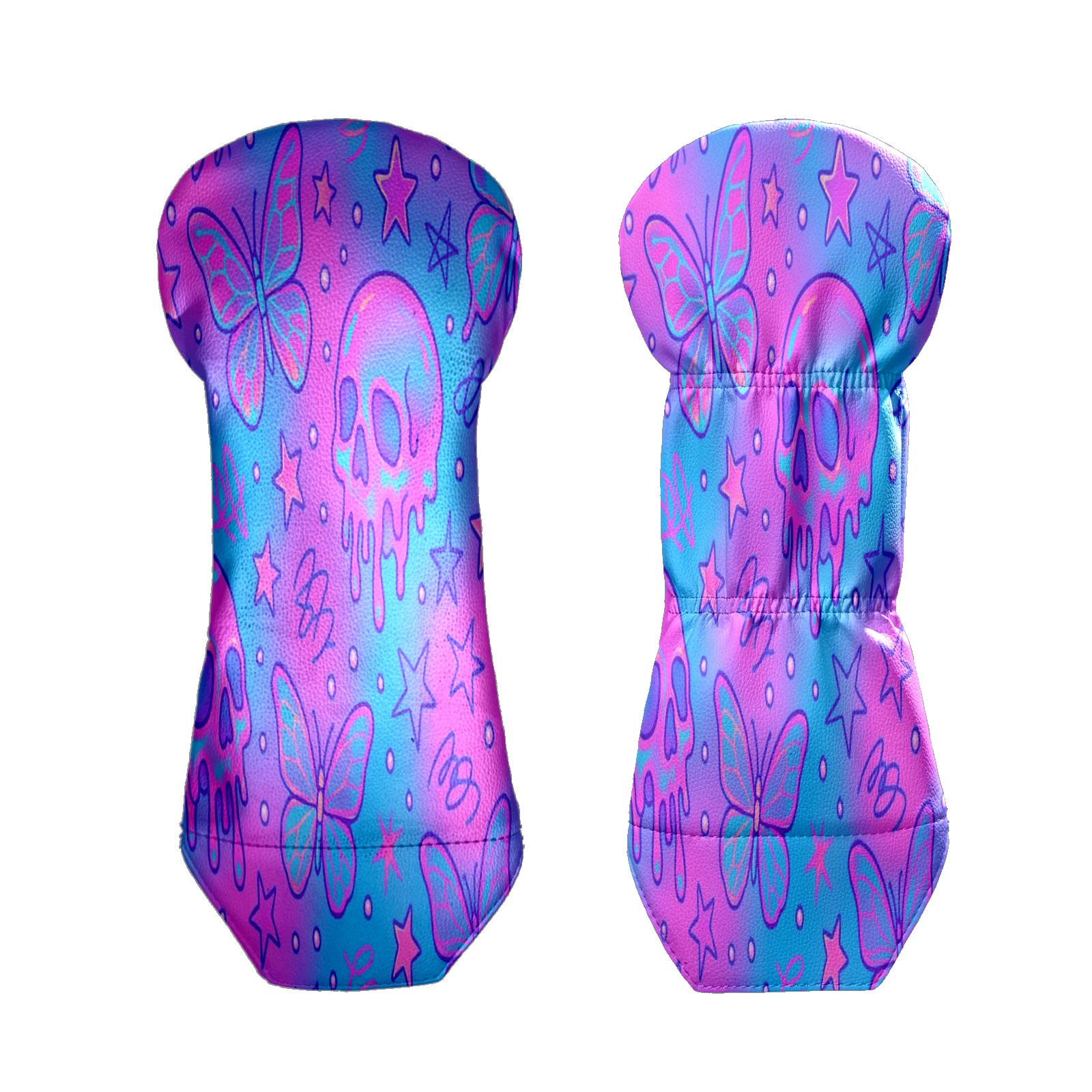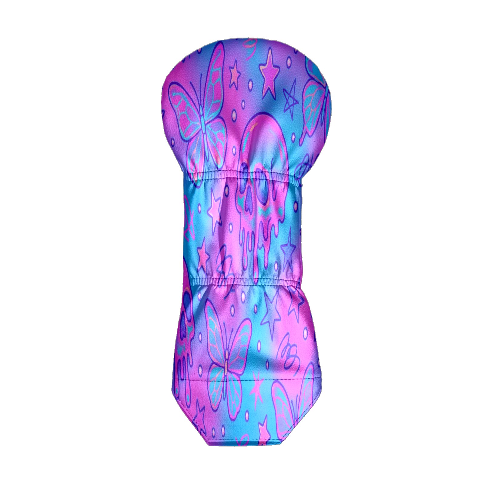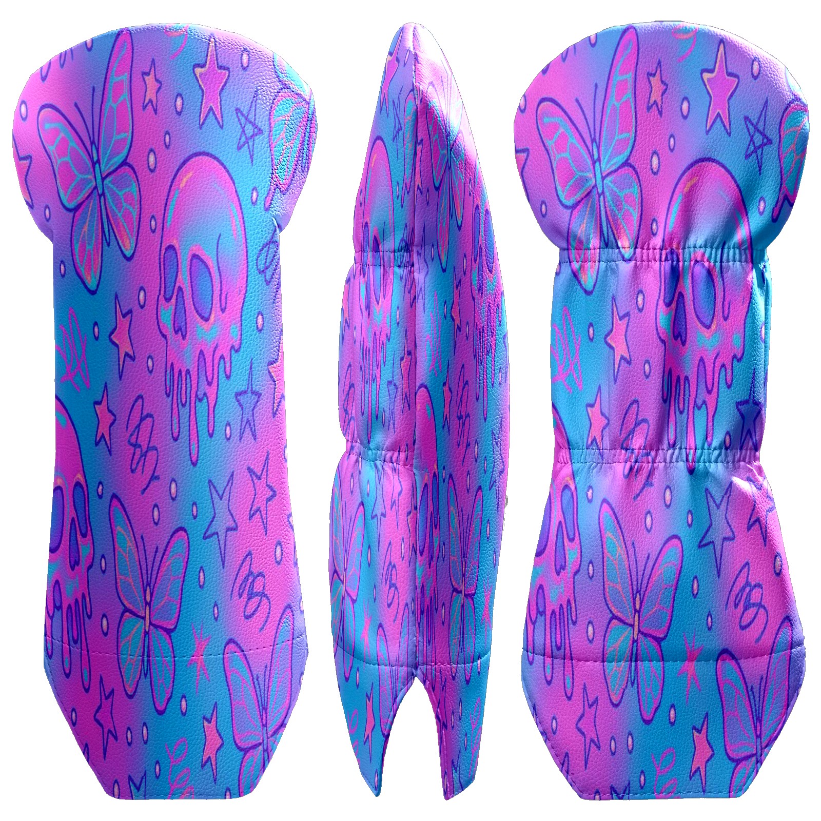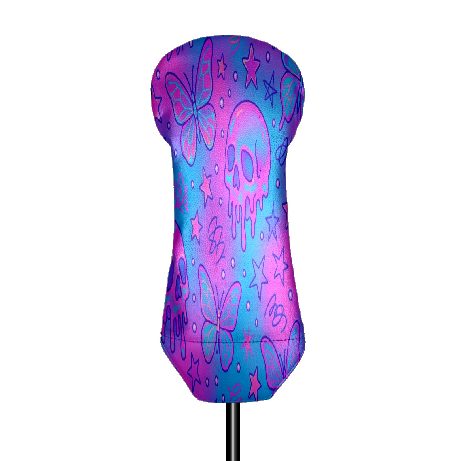 Counullo Golf Club Covers Pink Skulls Butterflies - Driver/Fairway/Hybrid/3 Wood Headcover, Premium PU Leather Soft Velvet Lining, Waterproof Golf Gift for Enthusiasts