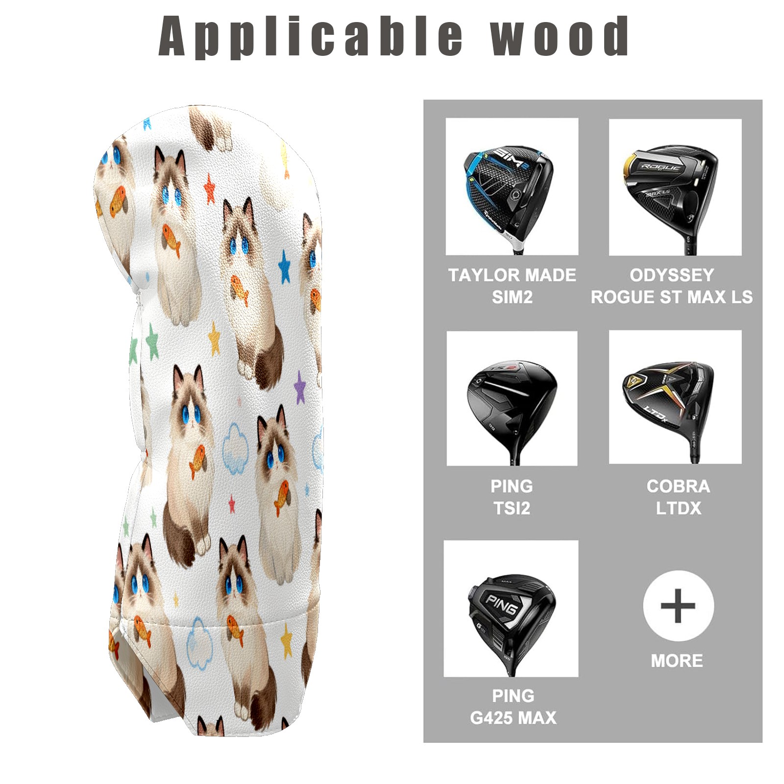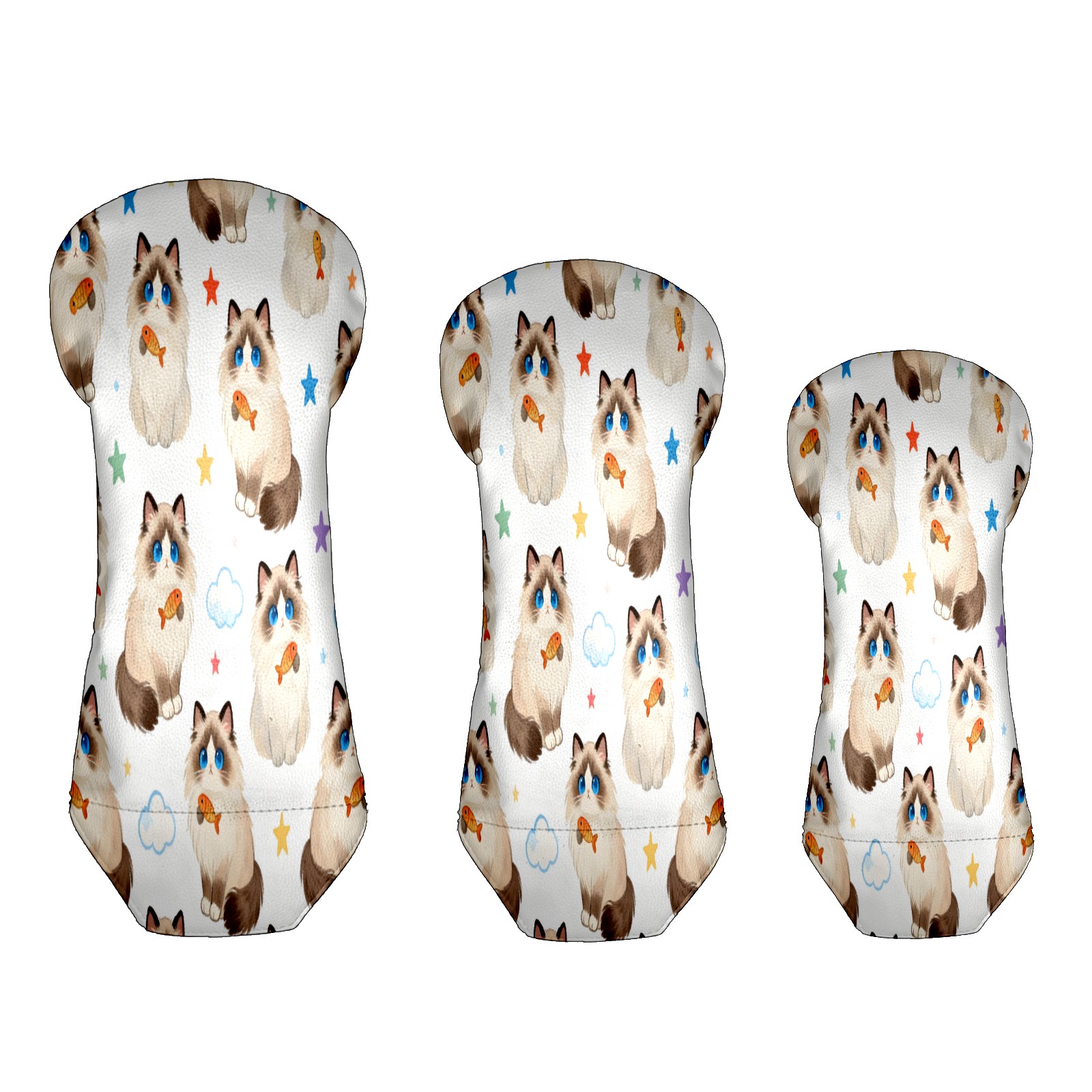 Counullo Golf Club Covers Beige Cats - Driver/Fairway/Hybrid/3 Wood Headcover, Premium PU Leather Soft Velvet Lining, Waterproof Golf Gift for Enthusiasts