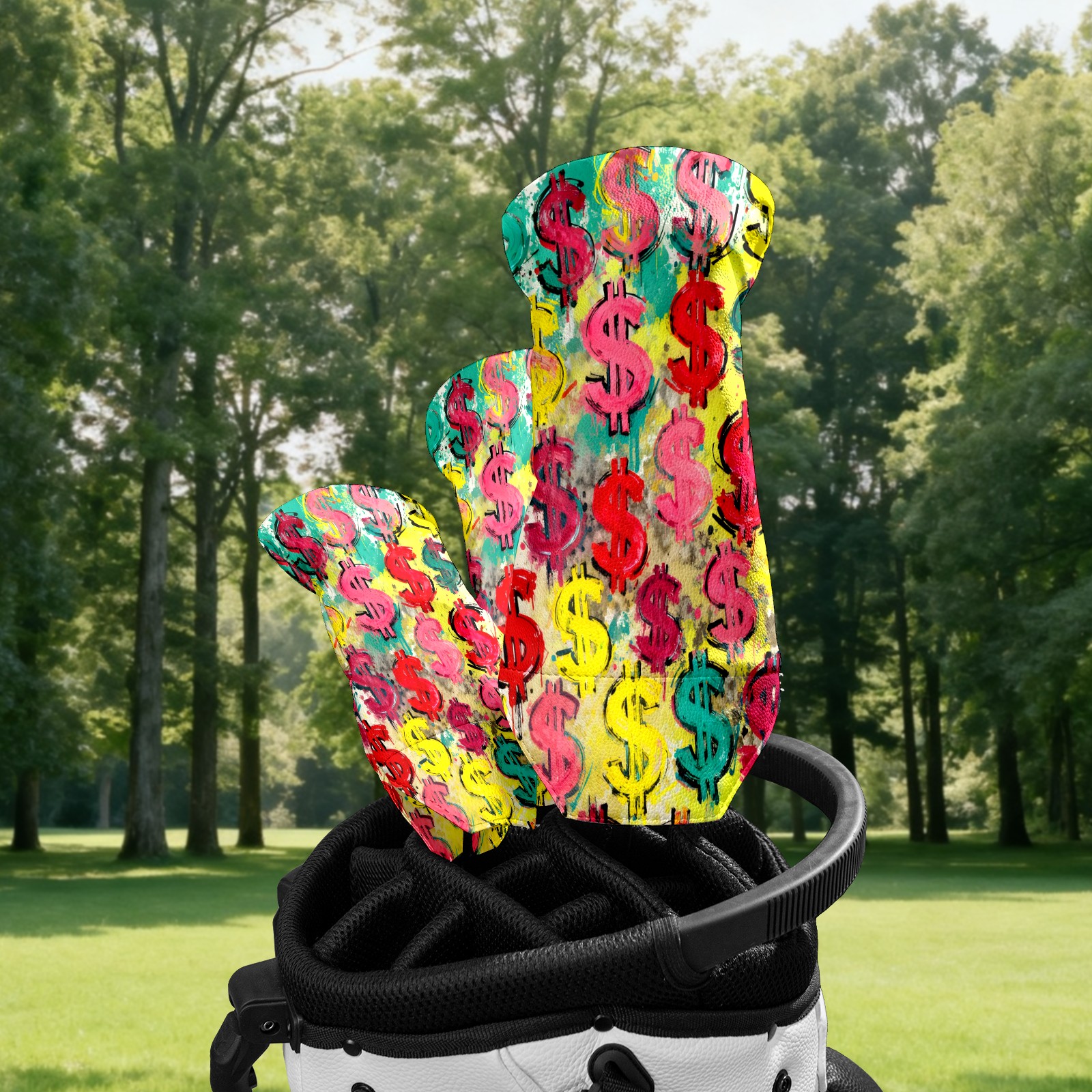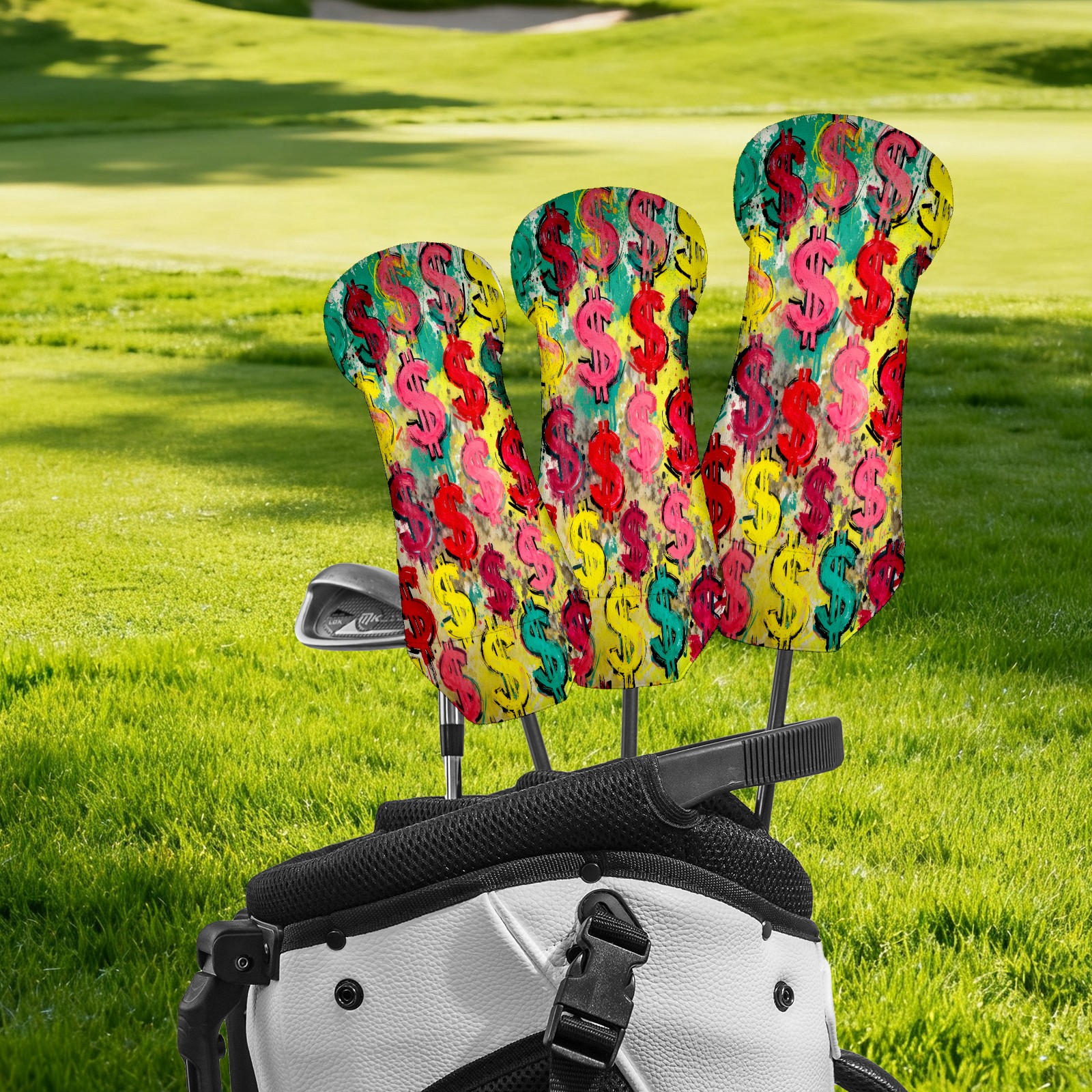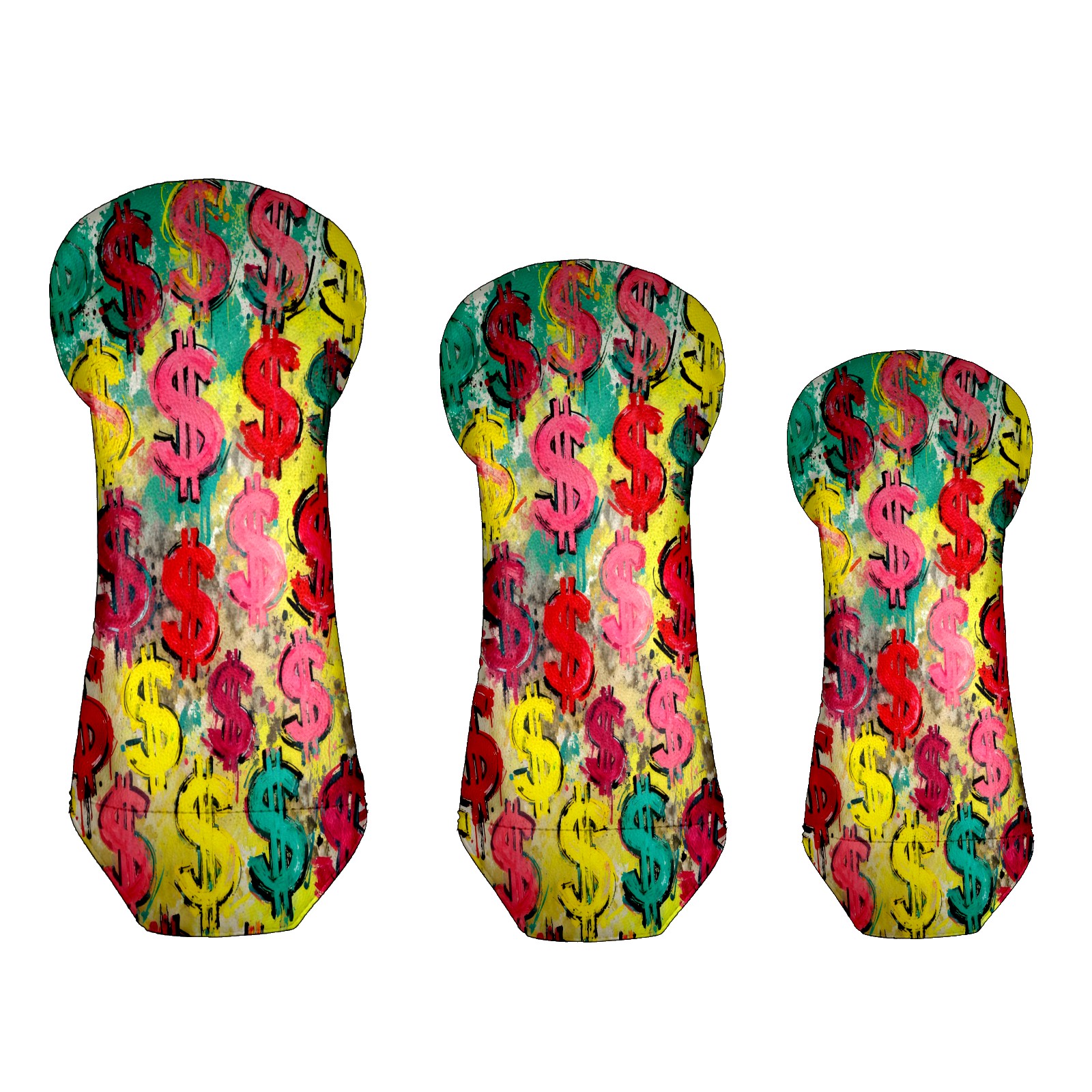 Counullo Golf Club Covers Multicolor Dollar Signs - Driver/Fairway/Hybrid/3 Wood Headcover, Premium PU Leather Soft Velvet Lining, Waterproof Golf Gift for Enthusiasts