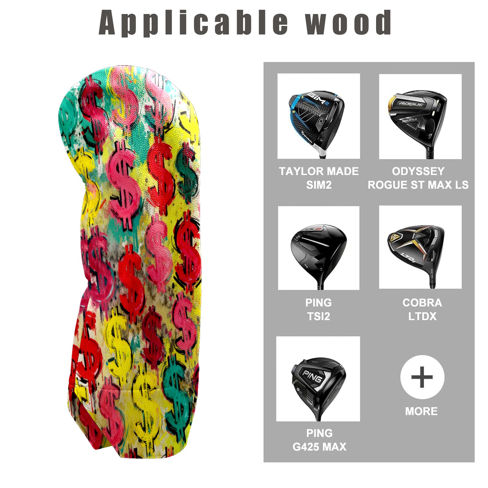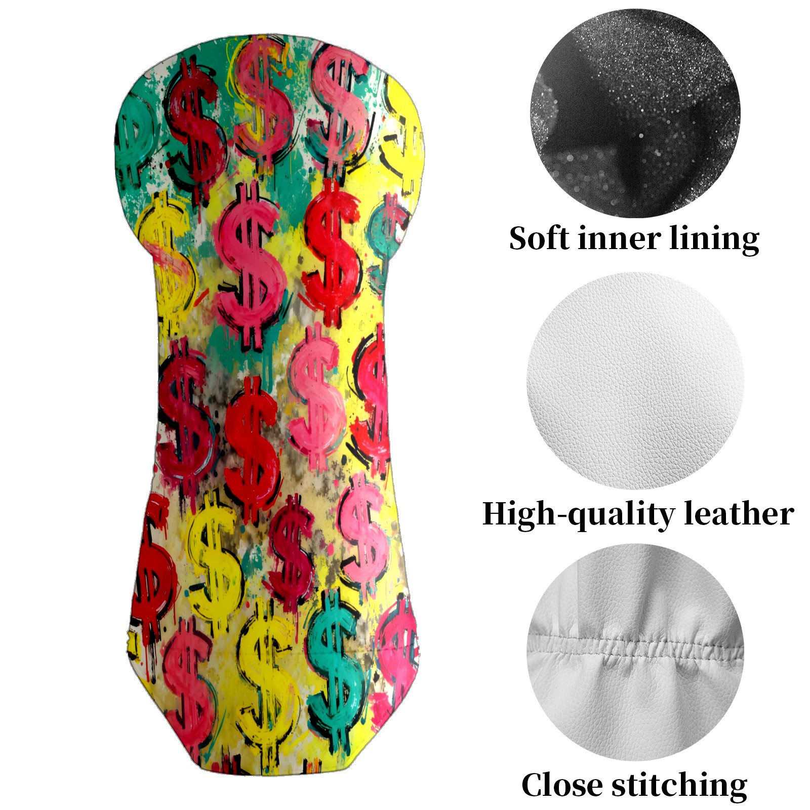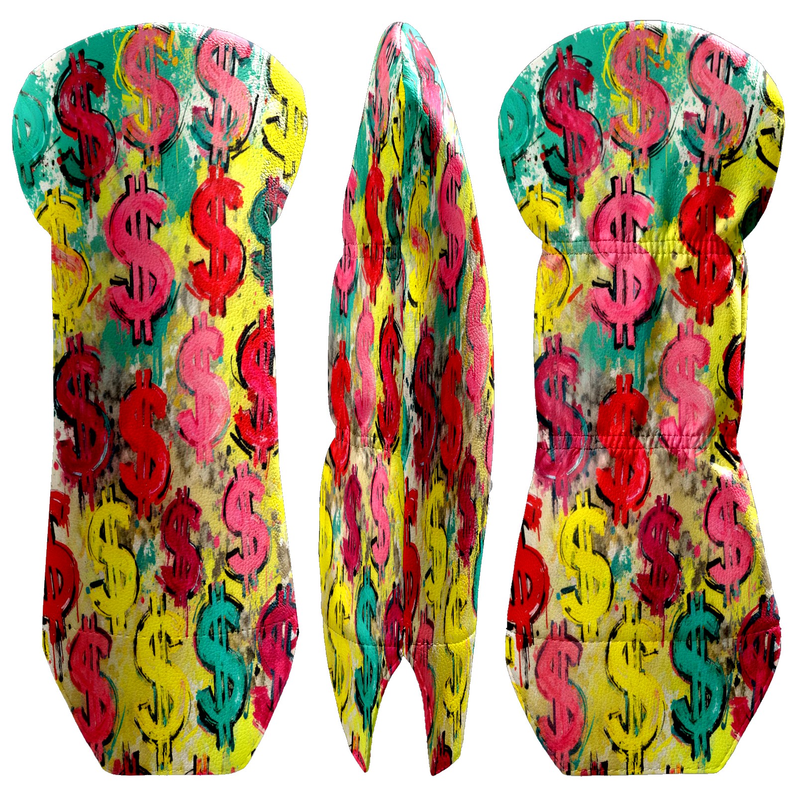 Counullo Golf Club Covers Multicolor Dollar Signs - Driver/Fairway/Hybrid/3 Wood Headcover, Premium PU Leather Soft Velvet Lining, Waterproof Golf Gift for Enthusiasts