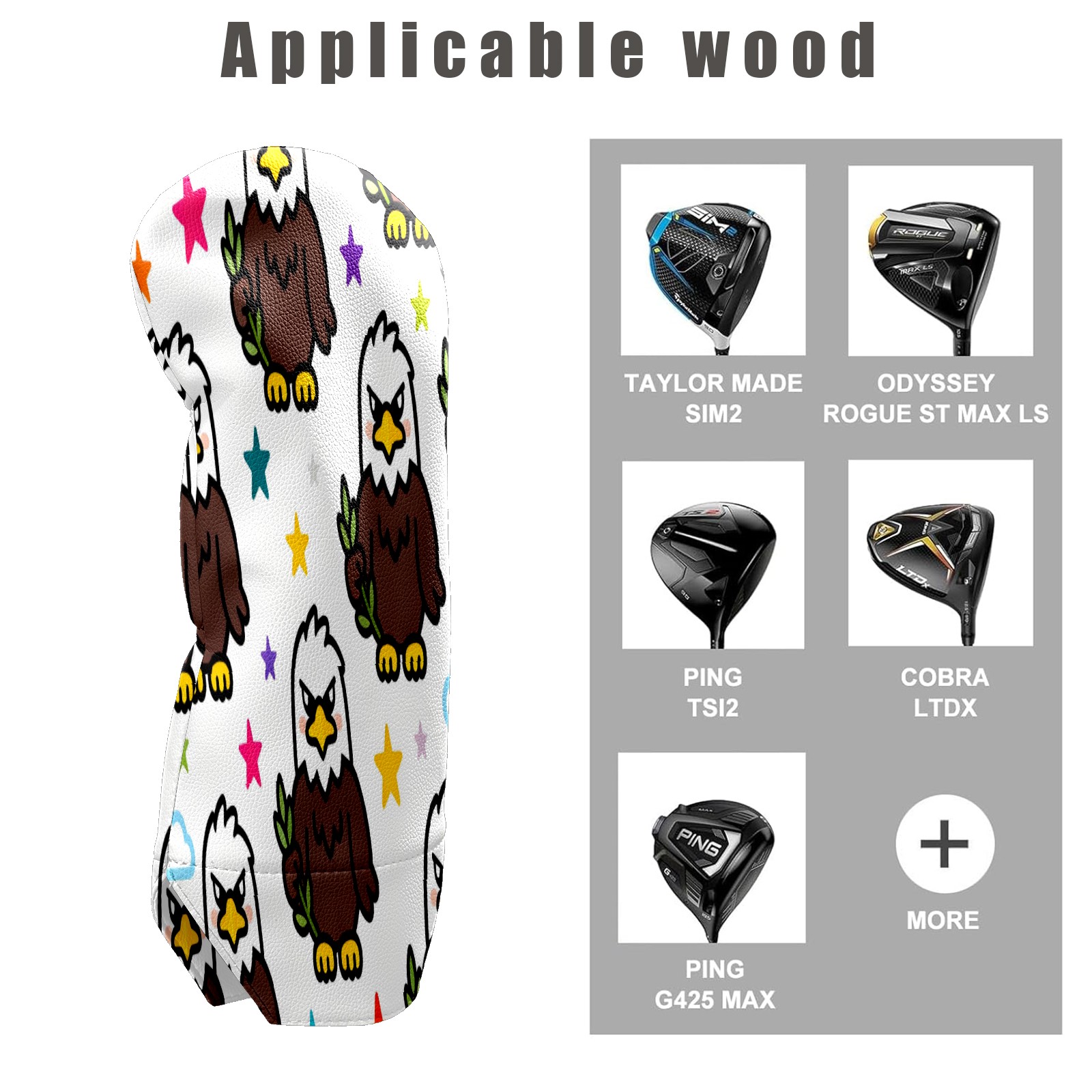 Counullo Golf Club Covers Brown Eagles - Driver/Fairway/Hybrid/3 Wood Headcover, Premium PU Leather Soft Velvet Lining, Waterproof Golf Gift for Enthusiasts