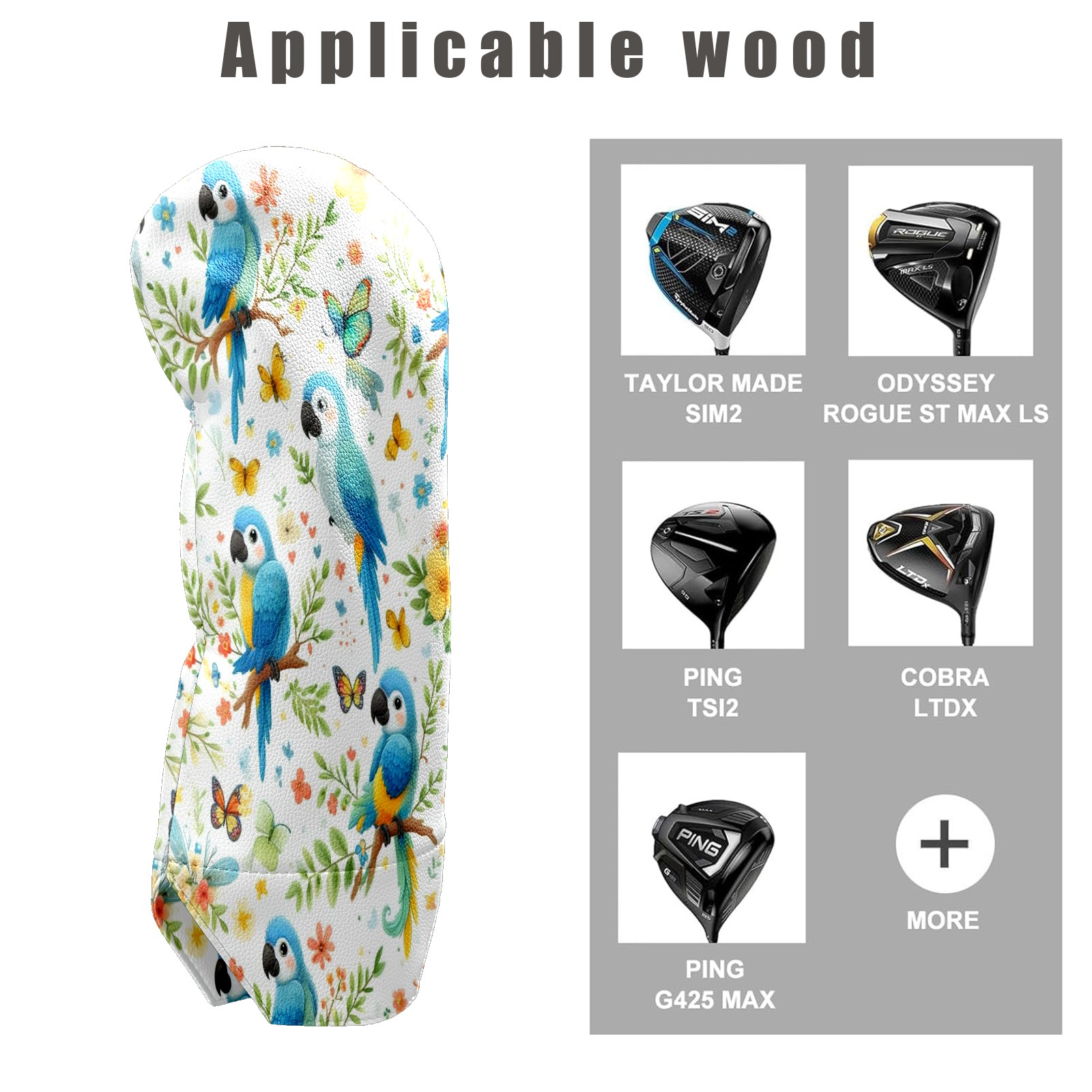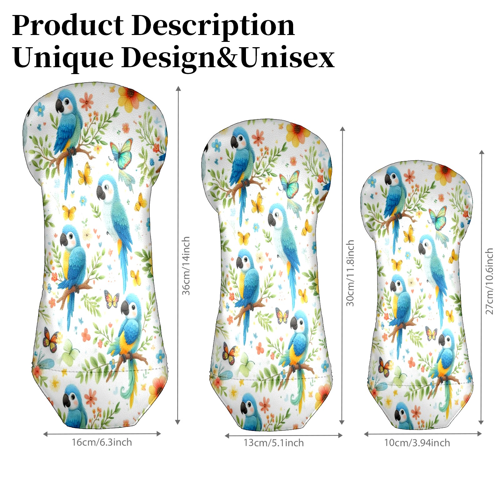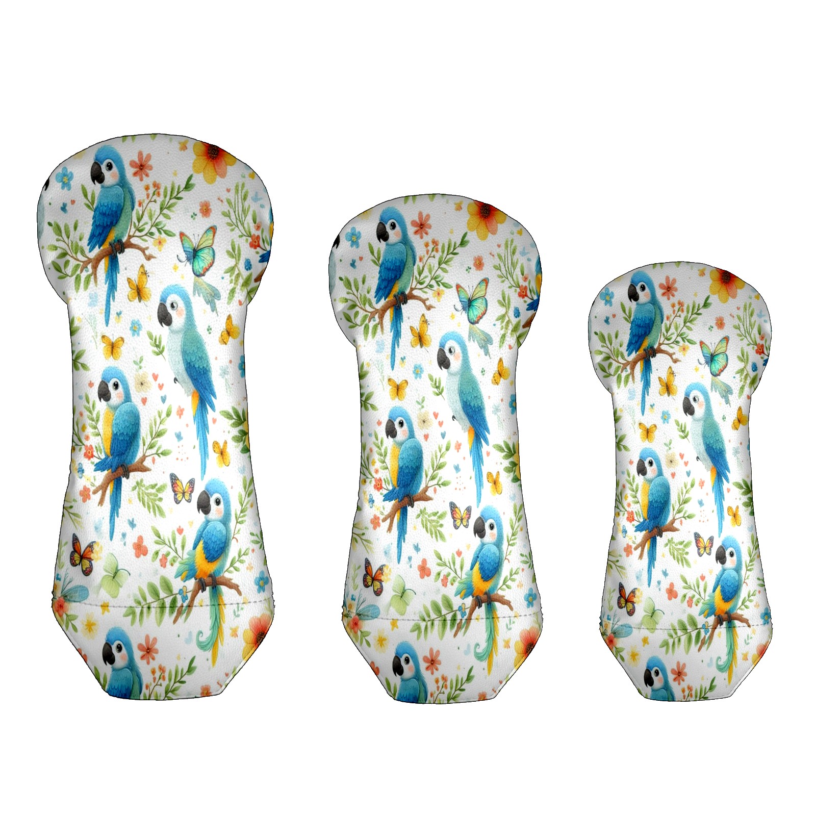 Counullo Golf Club Covers Light Blue Parrots - Driver/Fairway/Hybrid/3 Wood Headcover, Premium PU Leather Soft Velvet Lining, Waterproof Golf Gift for Enthusiasts