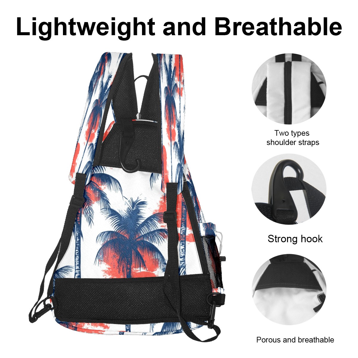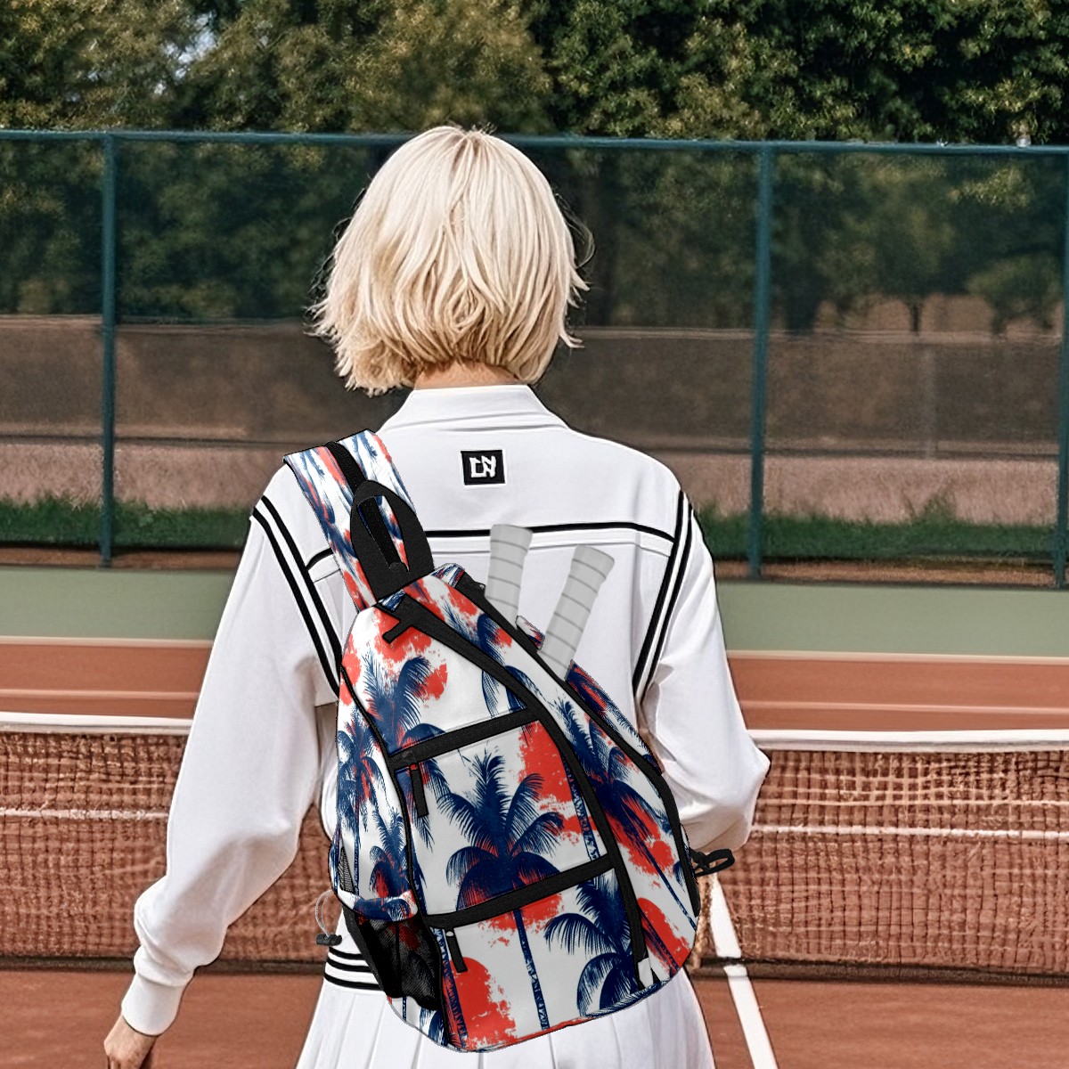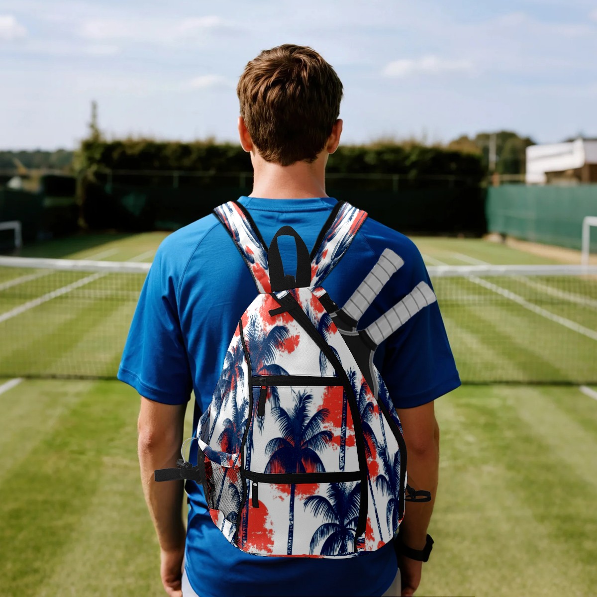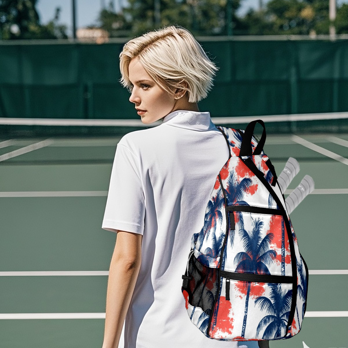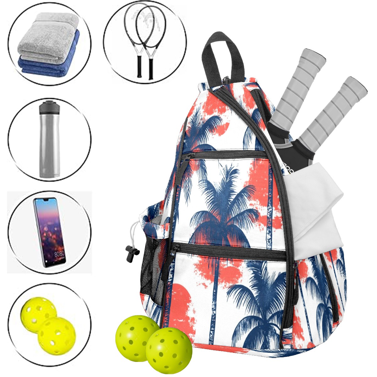 pickleball Bag - Sun Coconut Tree Unisex pickleball Backpack with Fence Hook, Adjustable Shoulder Straps, Security Pocket, Gift for pickle ball enthusiasts