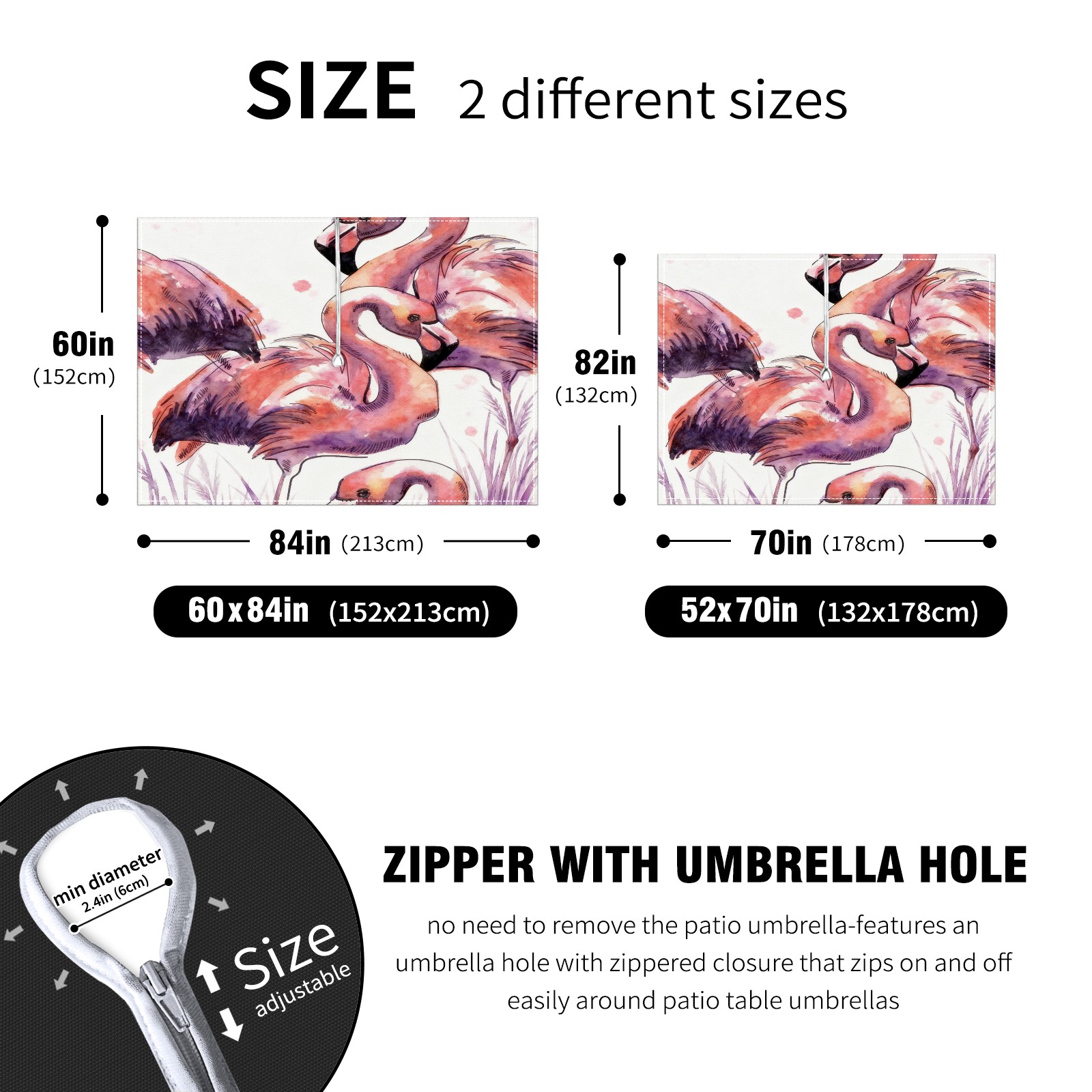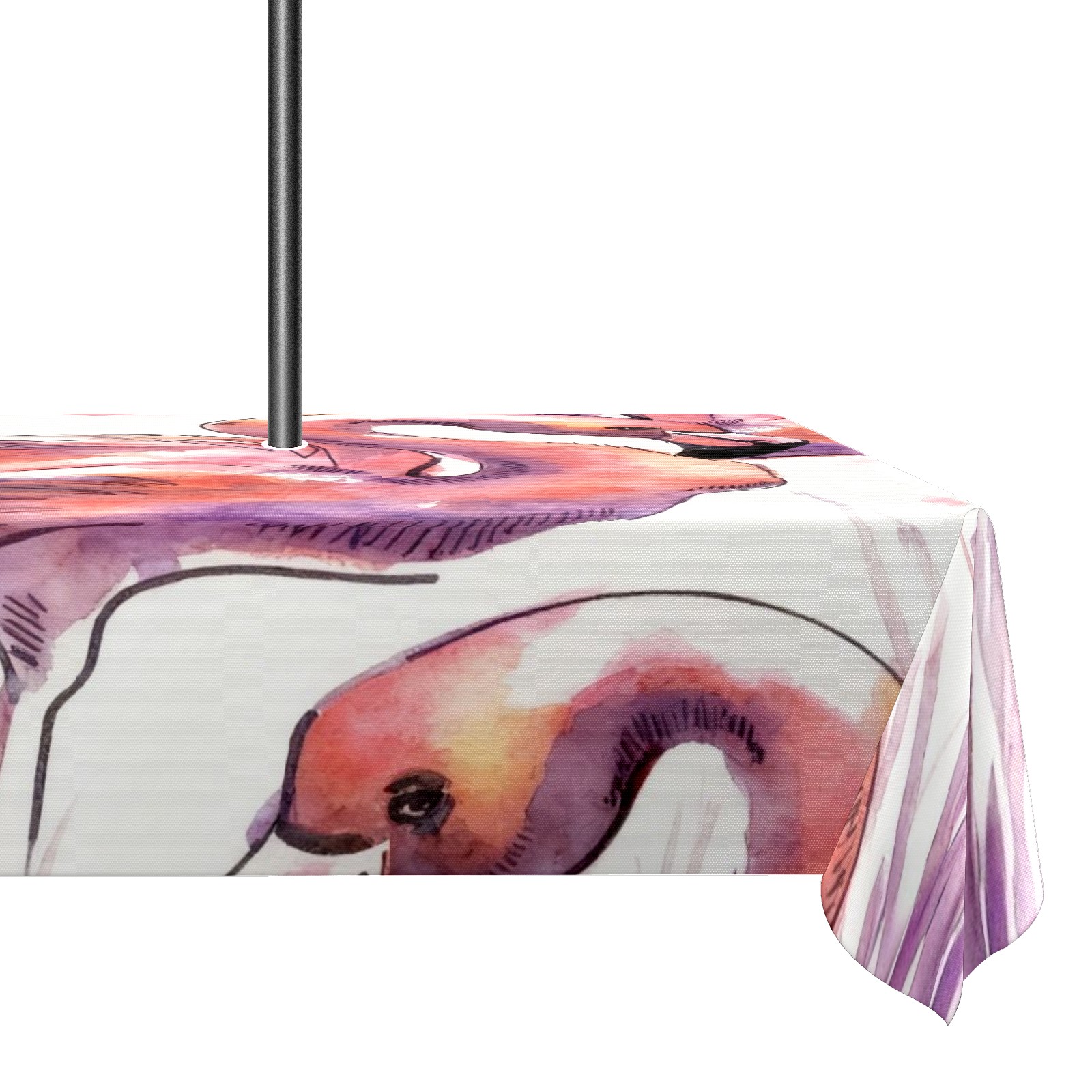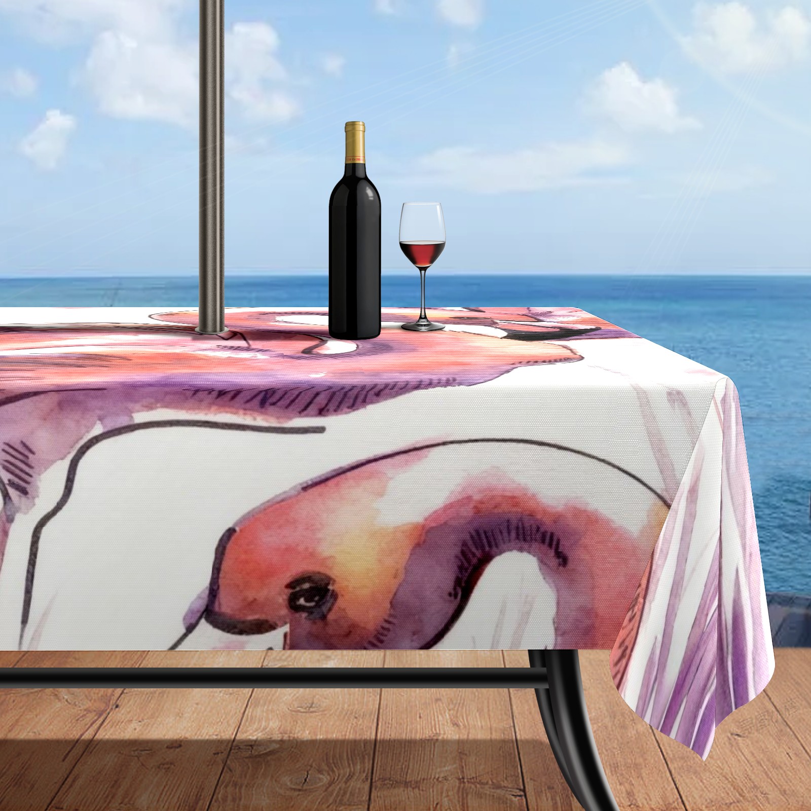Waterproof Umbrella Hole Tablecloth Square, 52x70 Inch Rectangle Polyester Table Cover Zippered Design for Outdoor/Indoor Use Watercolor Flamingoes
