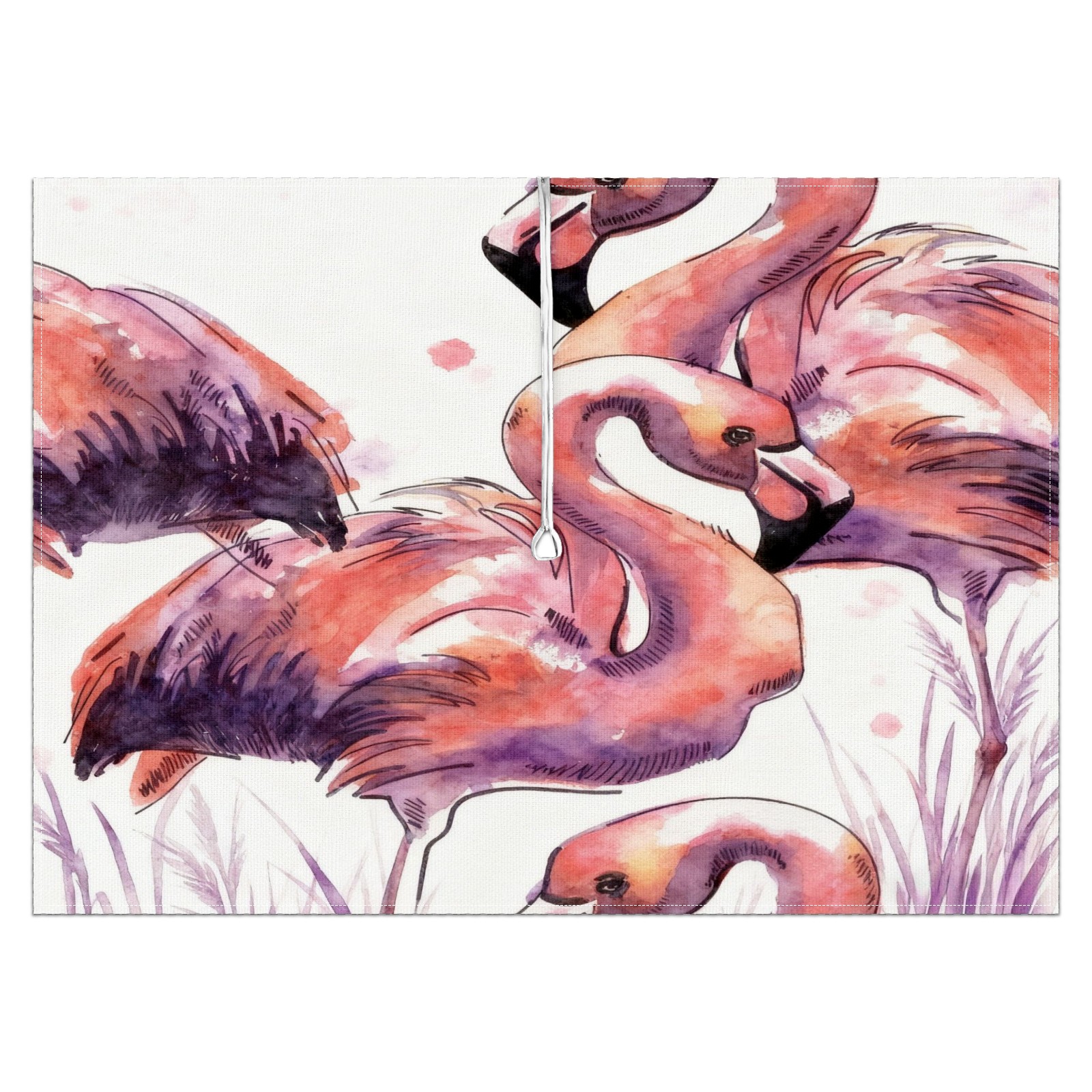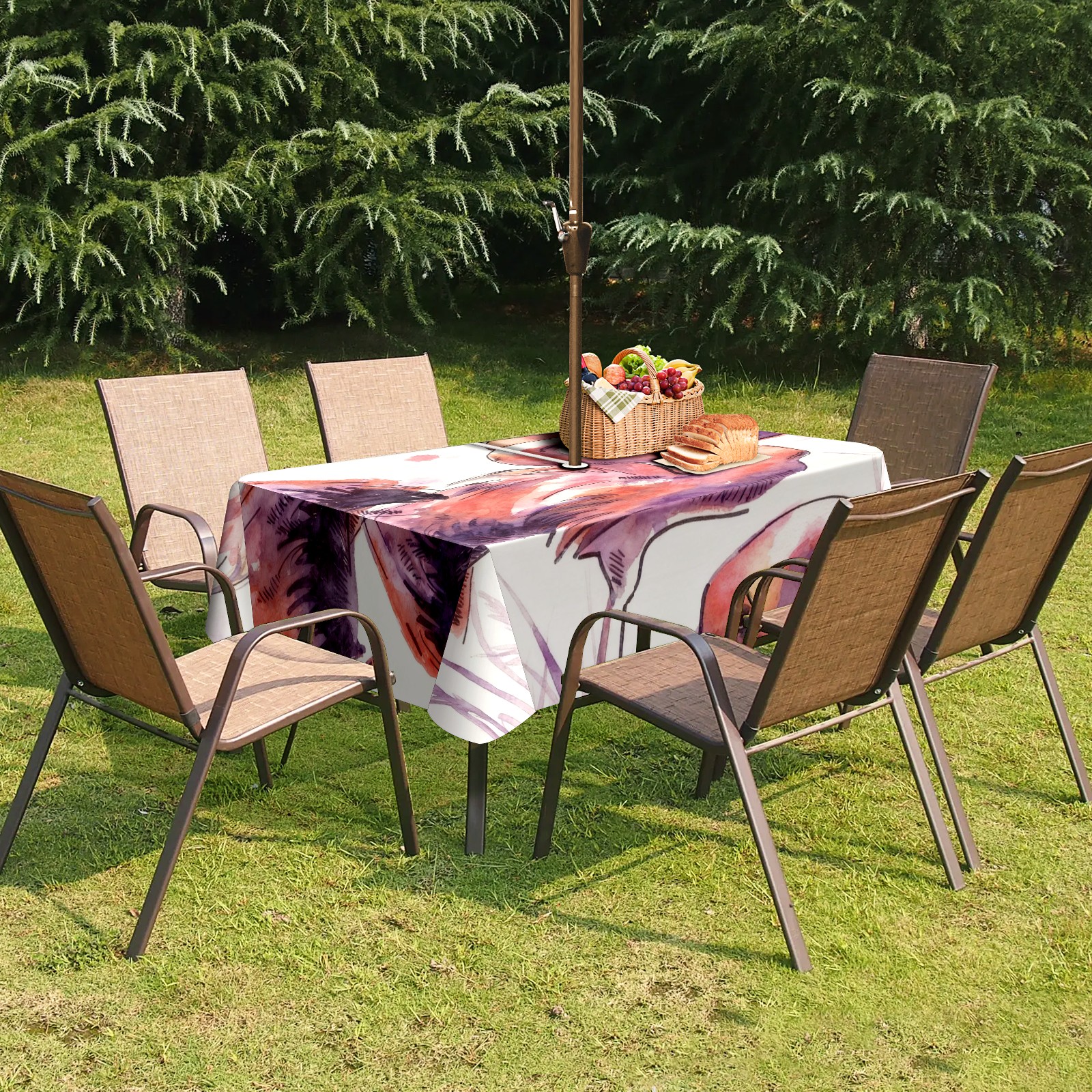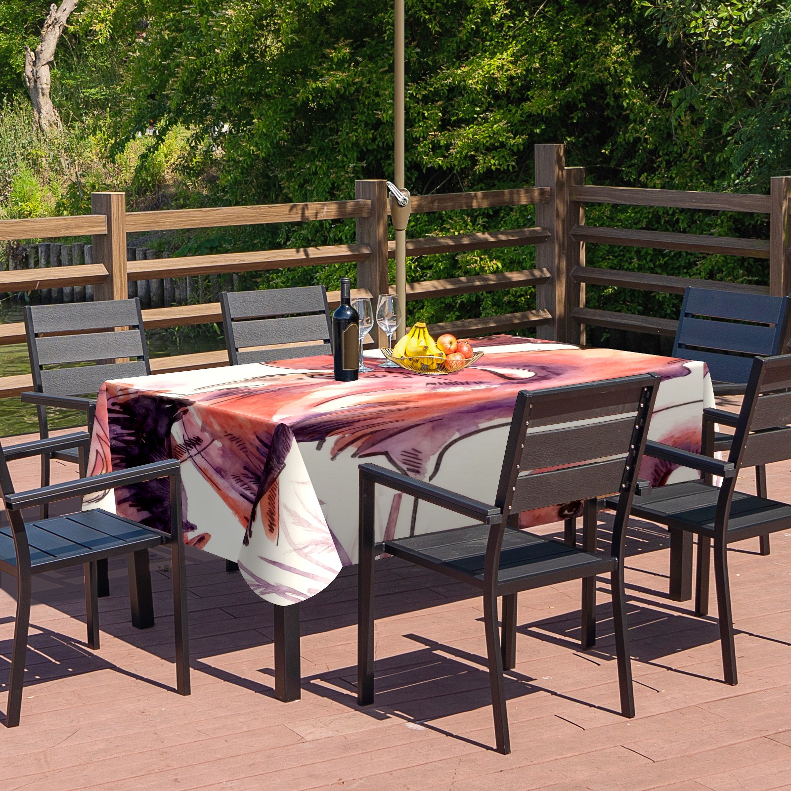 Waterproof Umbrella Hole Tablecloth Square, 52x70 Inch Rectangle Polyester Table Cover Zippered Design for Outdoor/Indoor Use Watercolor Flamingoes