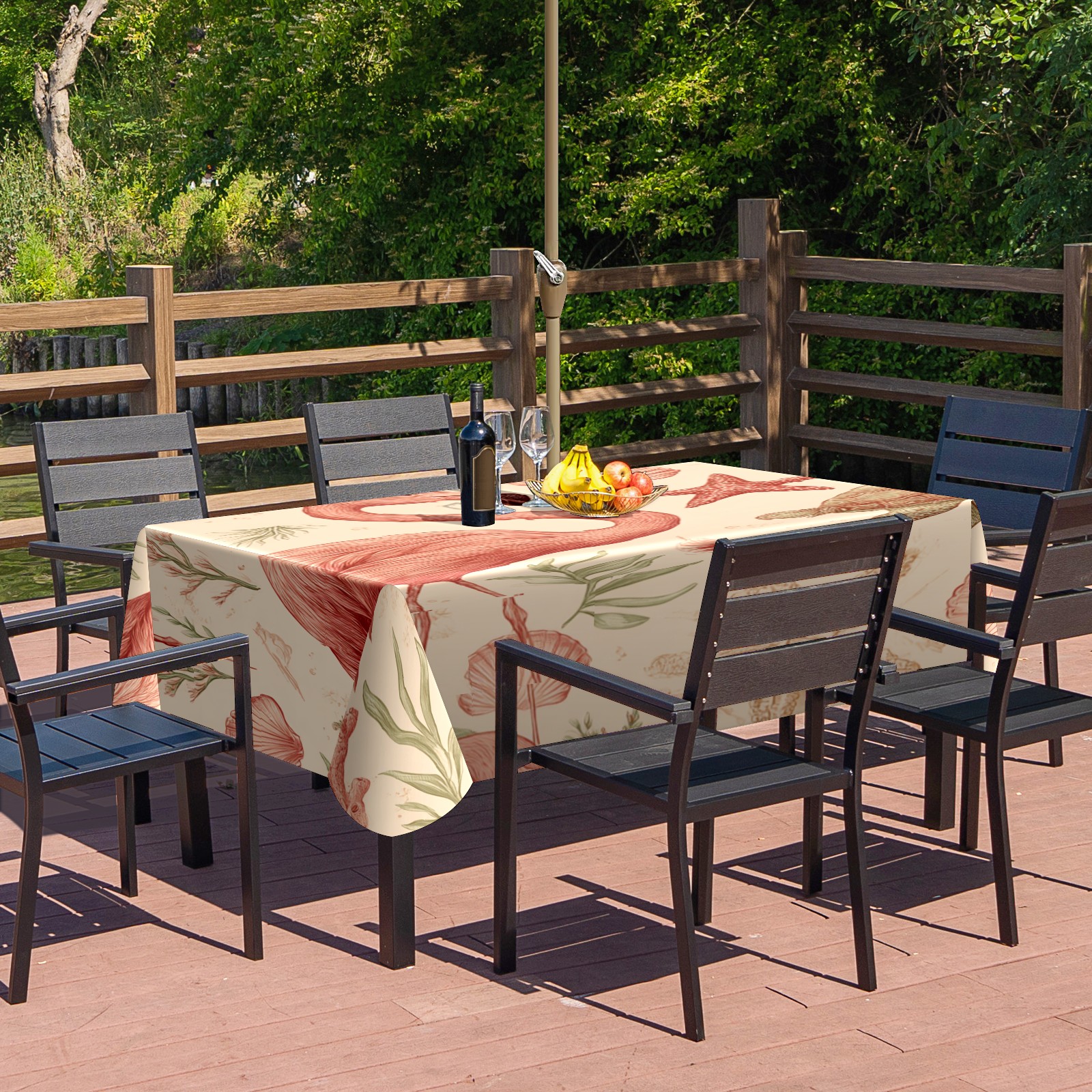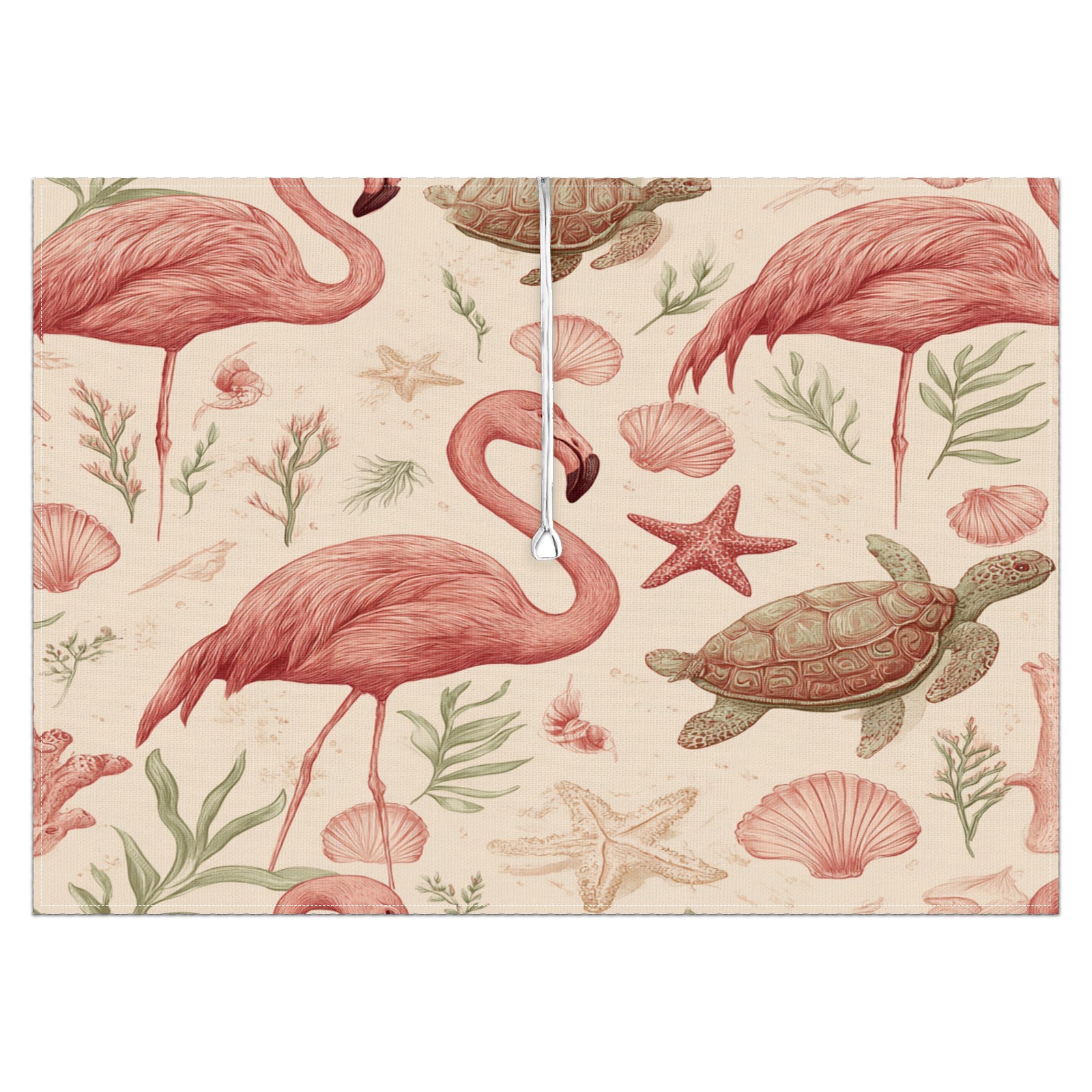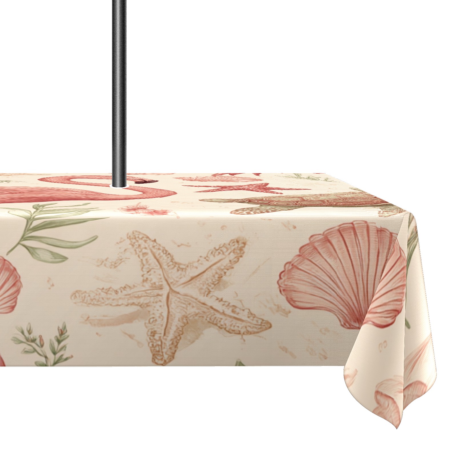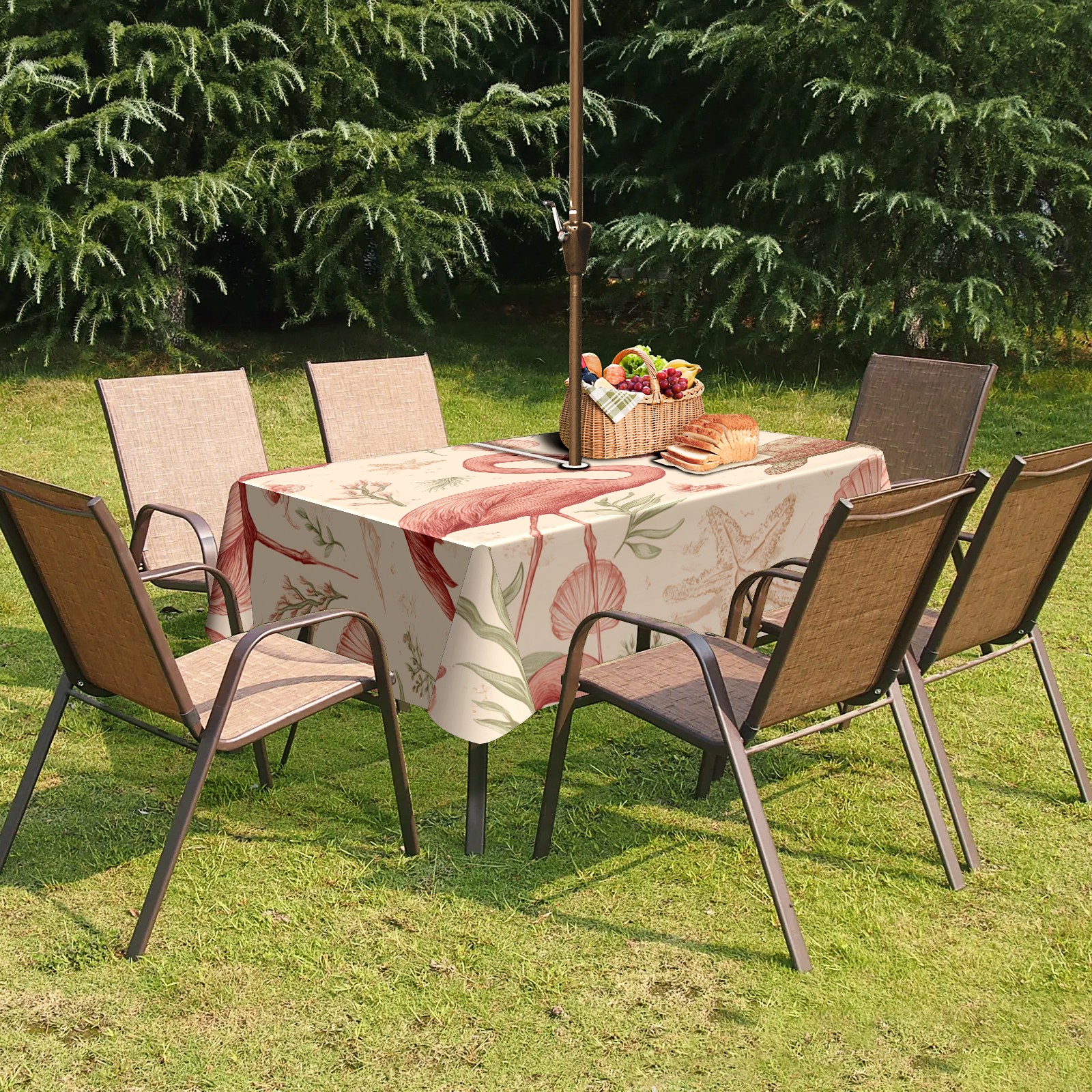 Waterproof Umbrella Hole Tablecloth Square, 52x70 Inch Rectangle Polyester Table Cover Zippered Design for Outdoor/Indoor Use Flamingos Turtles Beige