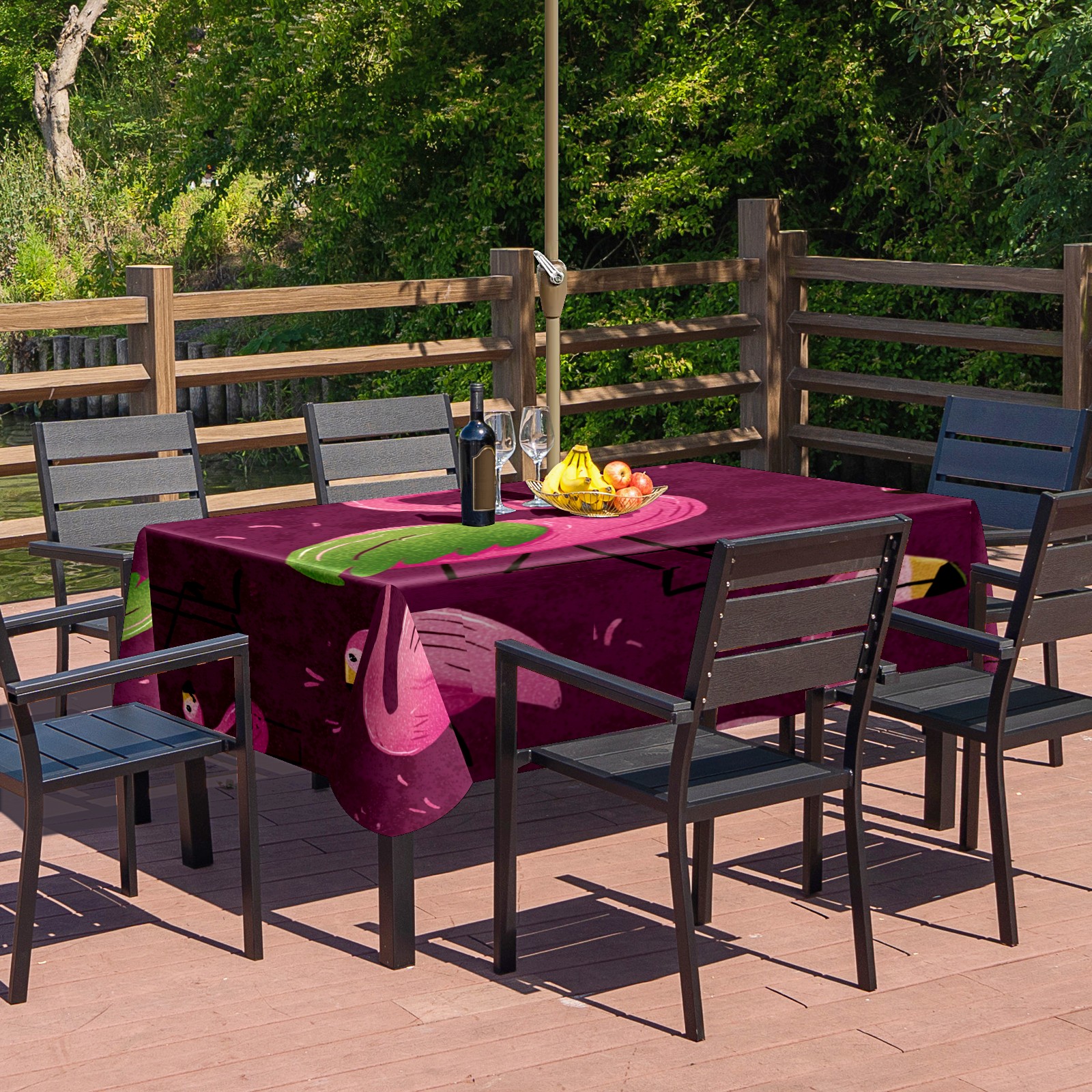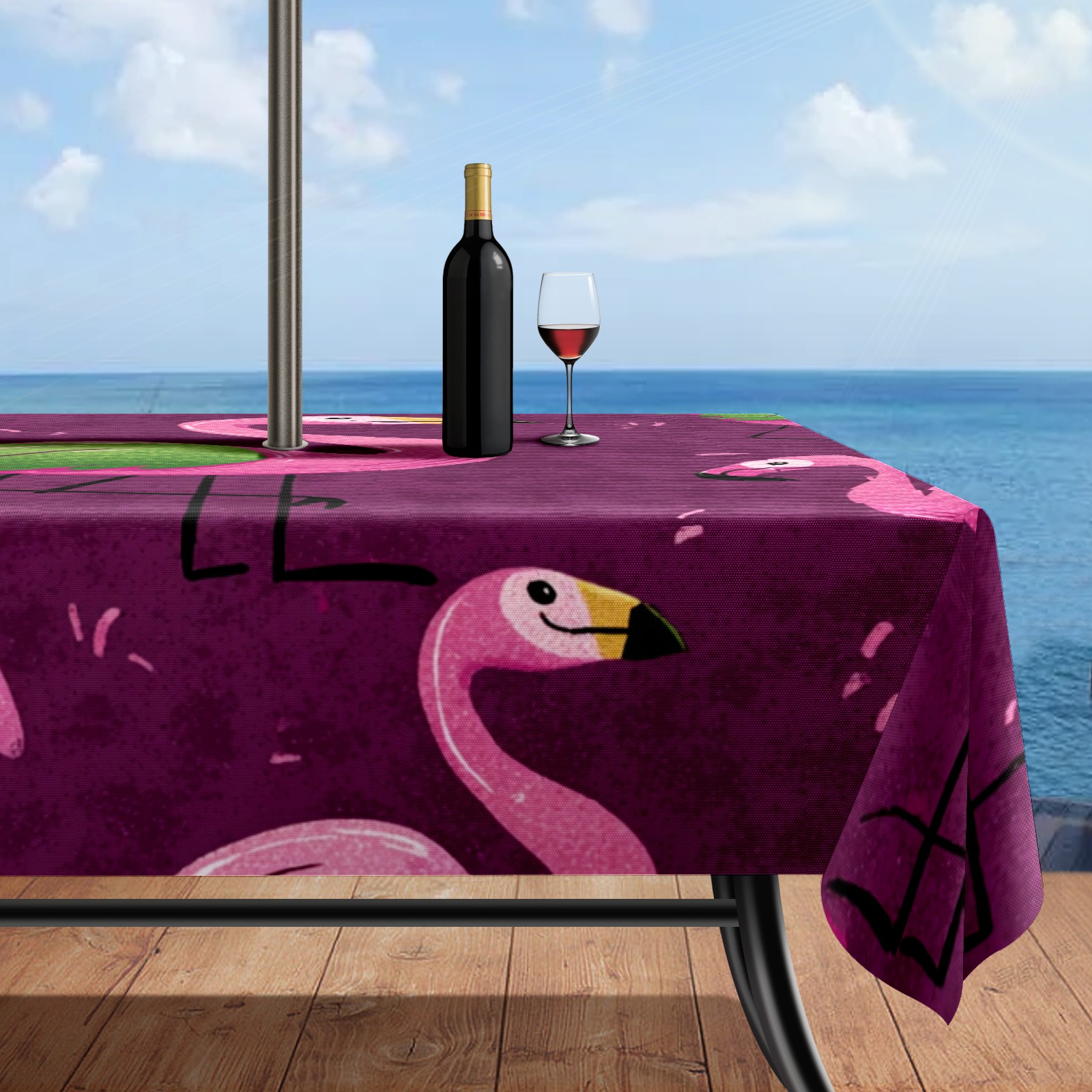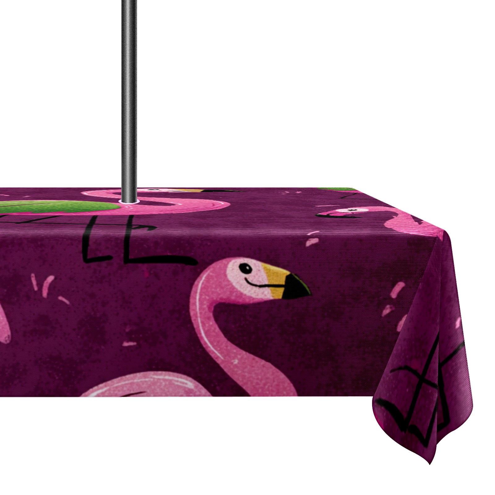 Waterproof Umbrella Hole Tablecloth Square, 52x70 Inch Rectangle Polyester Table Cover Zippered Design for Outdoor/Indoor Use Flamingos Purple