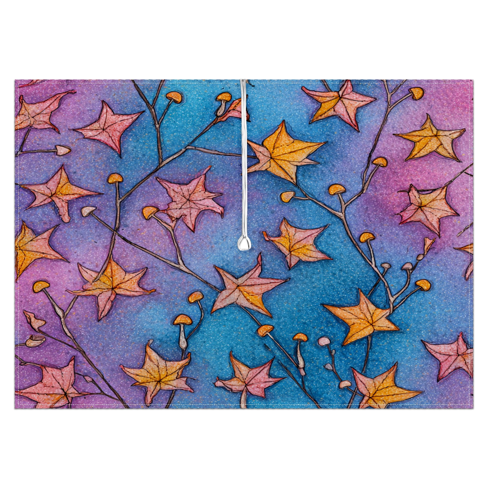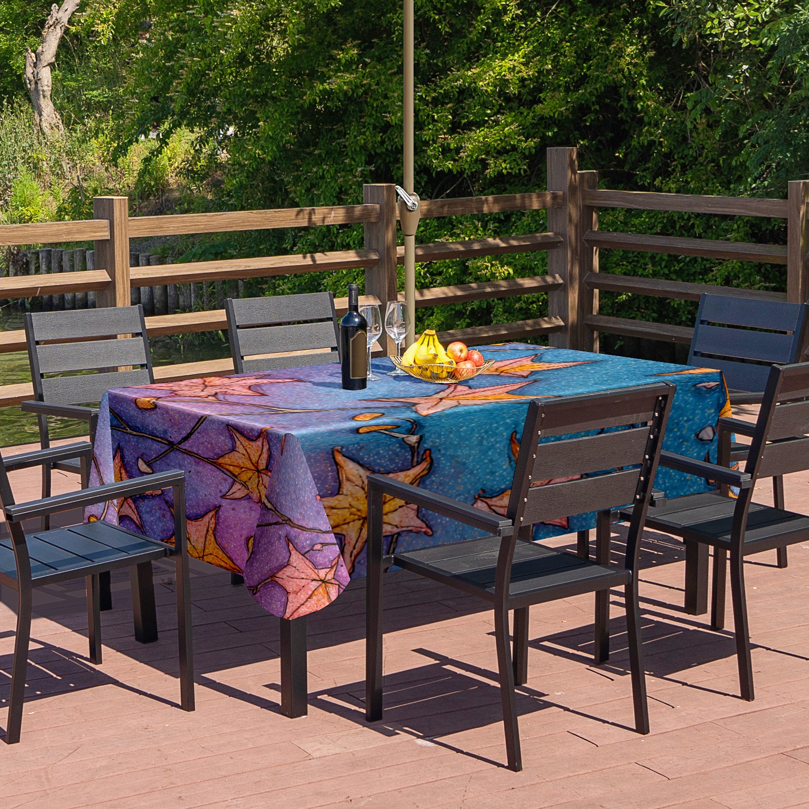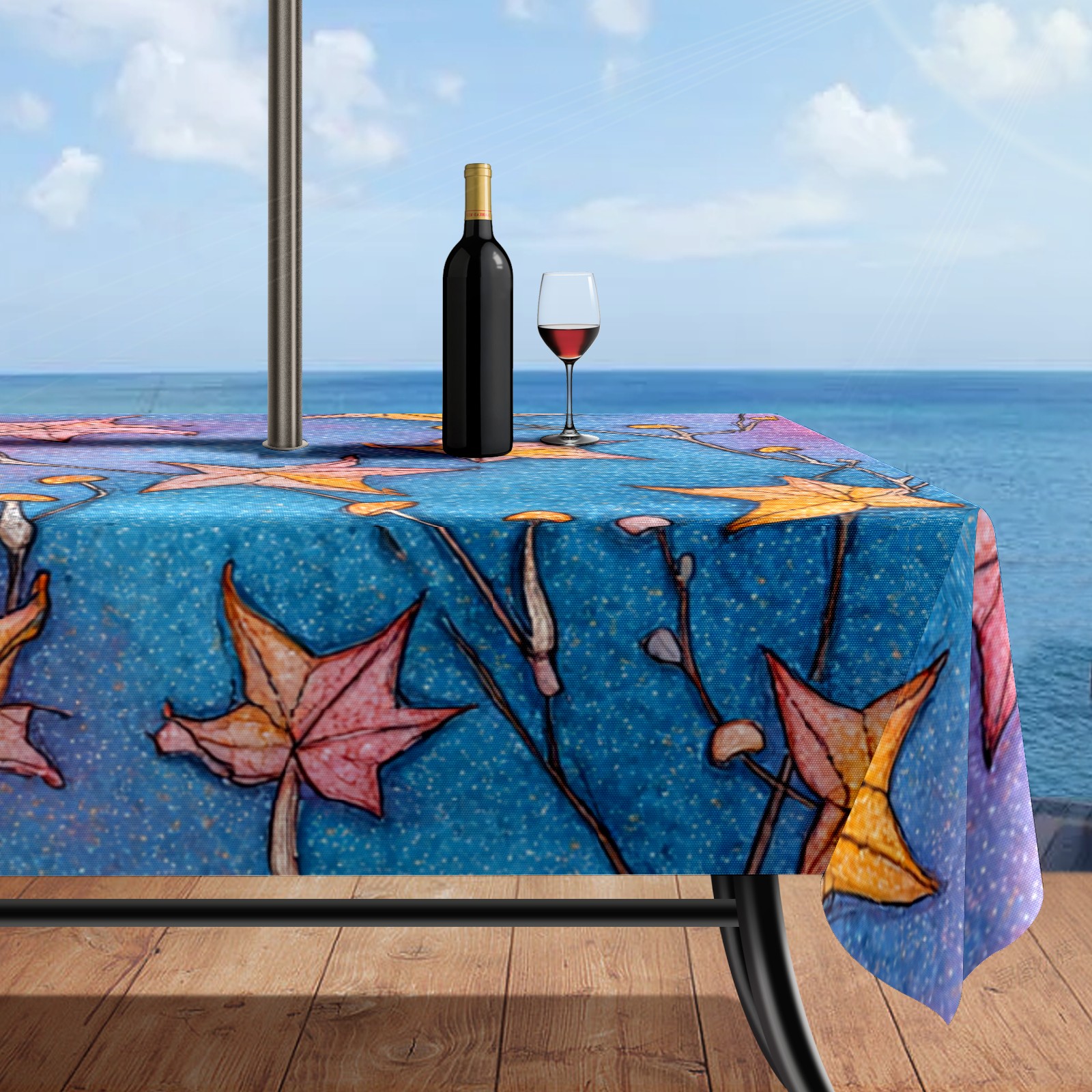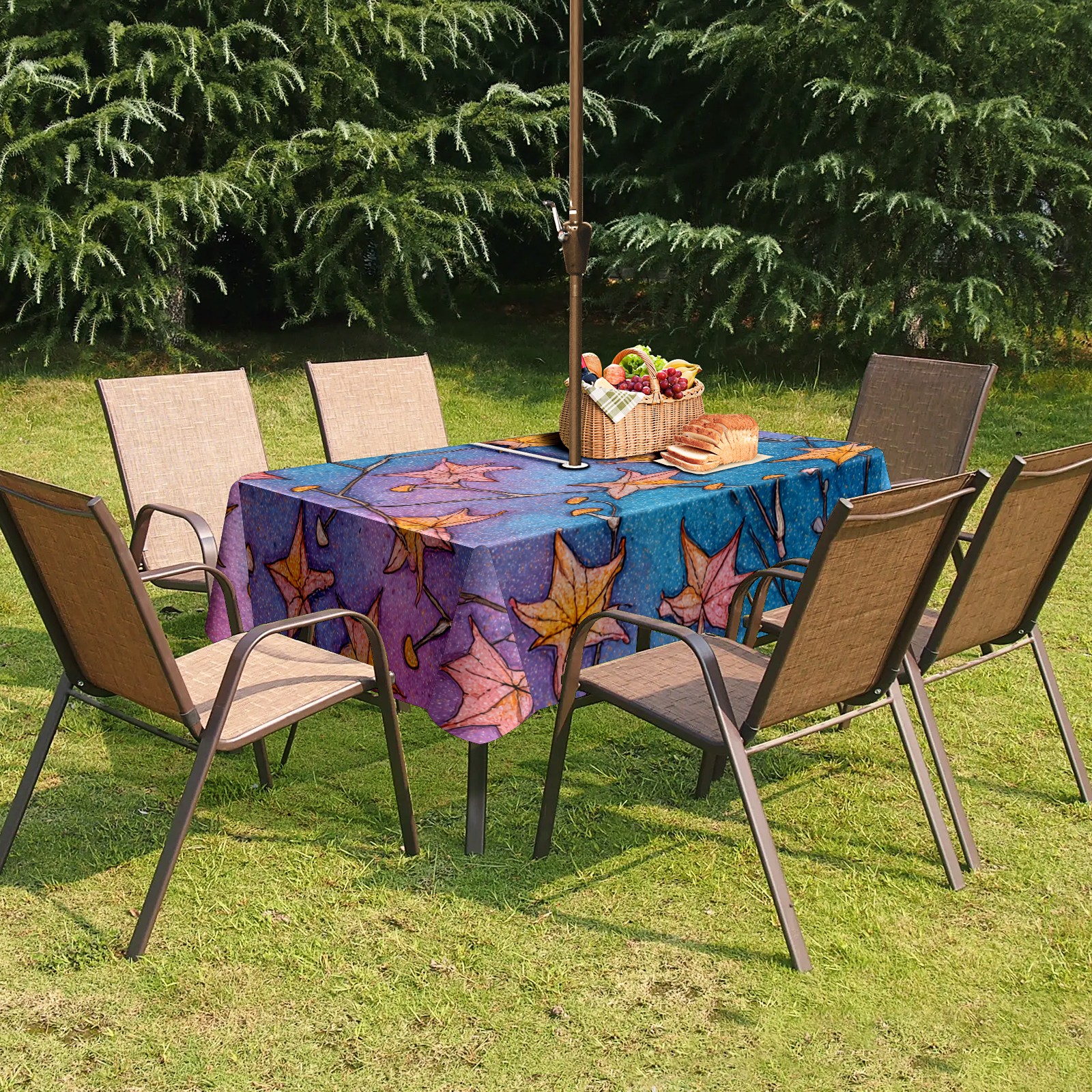 Waterproof Umbrella Hole Tablecloth Square, 52x70 Inch Rectangle Polyester Table Cover Zippered Design for Outdoor/Indoor Use Stars Leaf Blue