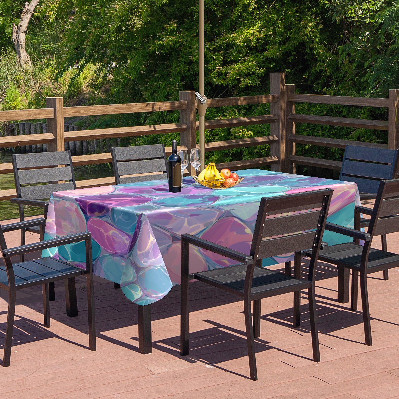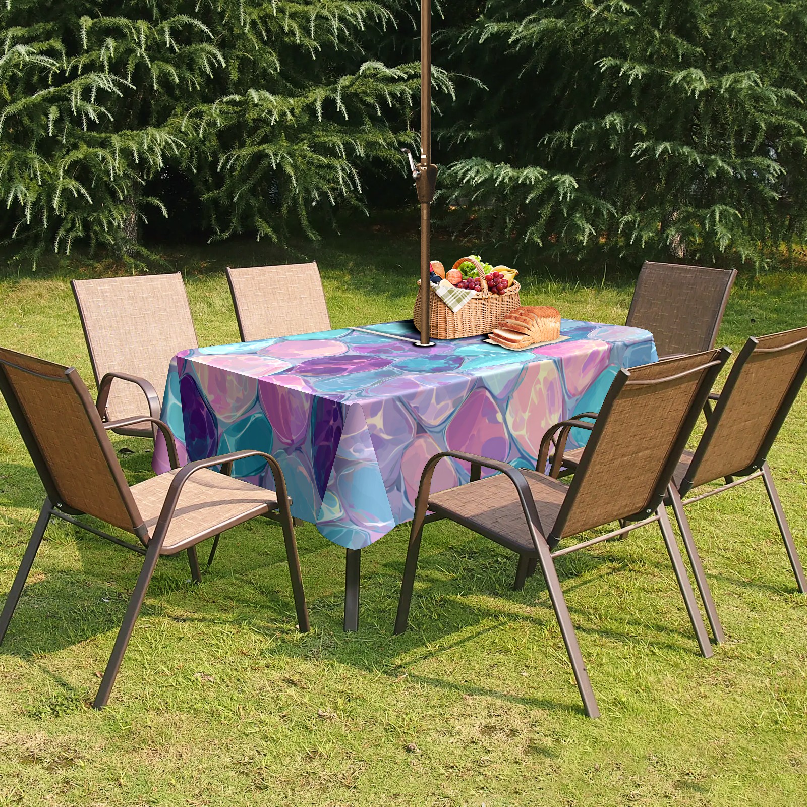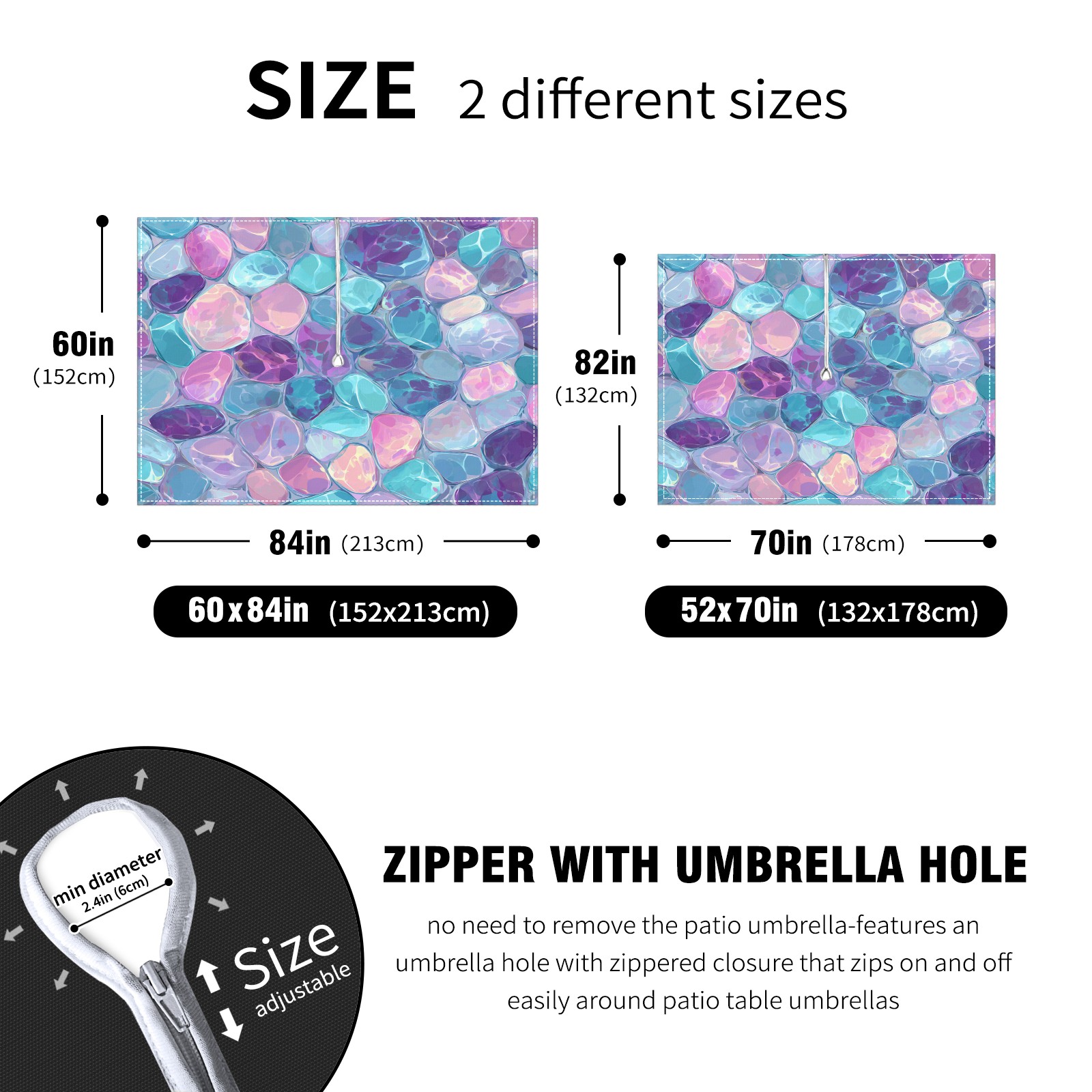 • <p>This premium polyester tablecloth features an innovative umbrella-hole zipper design for easy installation without disassembling a parasol, and offers 2.4-inch adjustable umbrella hole size. Available in 52x70 inch and 60x84 inch sizes, it perfectly fits various dining tables. Its waterproof and stain-resistant properties effectively protect against spills of coffee, juice, rain, and other liquids, keeping your table looking brand new. Daily maintenance is simple; stains wipe away easily. It is machine washable on a gentle cycle; wash in cold water and do not bleach.<br></p>