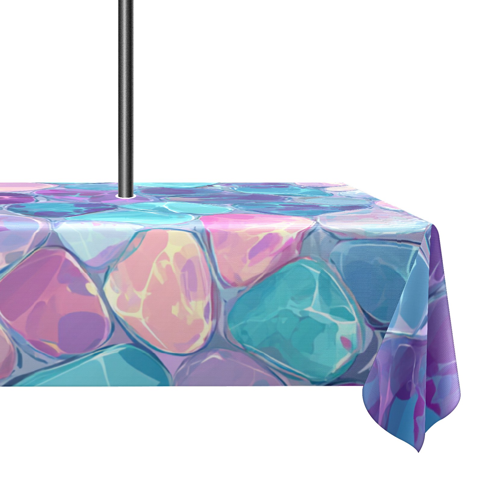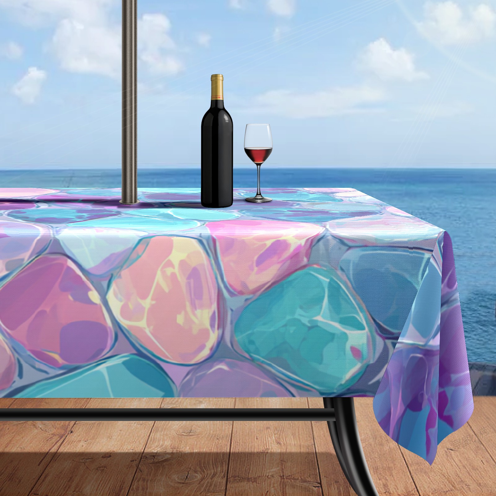 Waterproof Umbrella Hole Tablecloth Square, 52x70 Inch Rectangle Polyester Table Cover Zippered Design for Outdoor/Indoor Use Tortoiseshell Pink